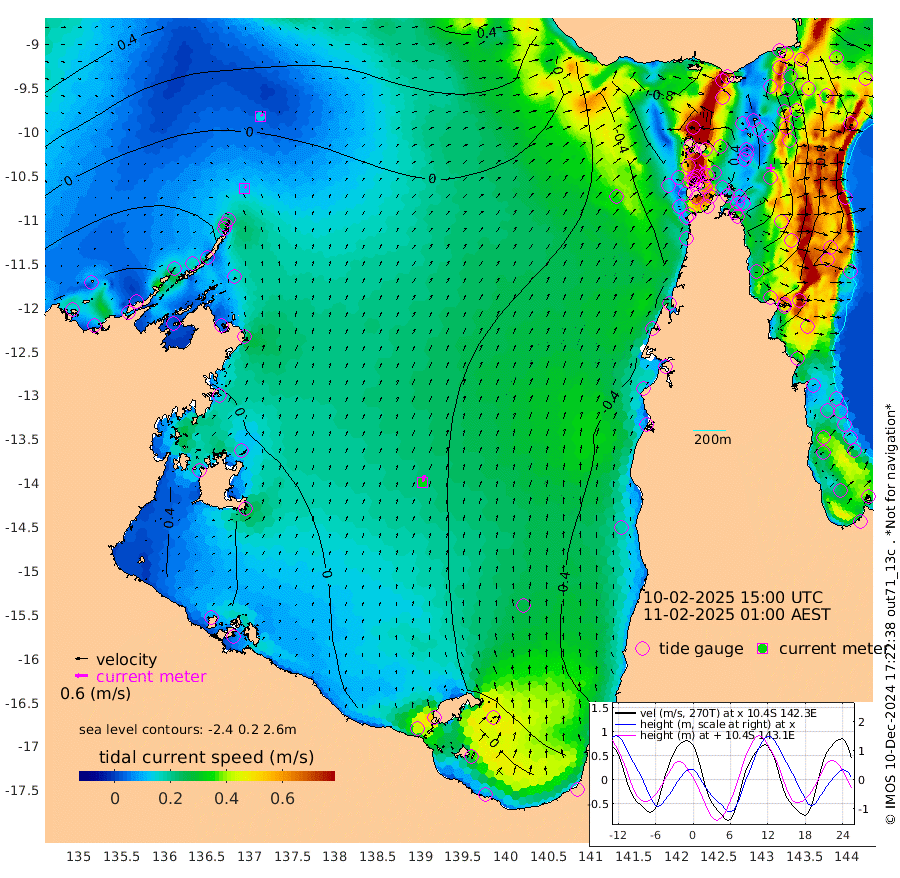 12cm/s 39T +3cm/s rms + 7cm/s -42T. ARA-GOC87 57m 34cm/s 13T +3cm/s rms + 2cm/s -2T. ARA-GOC87 60m 14cm/s 59T +2cm/s rms + 3cm/s 61T. ARA-GOC87 47m -30cm Daru -38cm Bobo Island -89cm Meer Island Barge -86cm Bramble Cay -60cm Unnamed Cay -59cm Pearce Cay -68cm Stephens Island -67cm Merrie England Shoals -37cm Mutacomal Reef -70cm Darnley Island Barge -98cm East Cay -47cm Yorke Island Barge -48cm Rennel Island -41cm Aureed Island -27cm Dungeness Reef 18cm Zagai Island 12cm Yam Island 9cm Dauan Island 15cm Saibai Island -3cm Phipi Reef 5cm Warrior Reef - West 18cm Mabuiag Island Barge -41cm Half Way Island -20cm Coconut Island -32cm Dugong Islet 0cm Poll Island -11cm Kirkcaldie Reef 19cm Suarji Island 3cm Sue Islet -64cm Hawkesbury Island 4cm Alert Patches 9cm Twin Island -45cm Badu Island 27cm St Pauls (Moa Island) -34cm Kubin (Moa Island) 1cm Ince Point -7cm Thursday Island -5cm Nardana Patches -41cm Turtle Head -35cm Round Island -72cm Goods Island -74cm Booby Island -68cm White Rocks Area -39cm Carpentaria 18cm Papou Point -64cm Bampfield Head -59cm Crab Island -68cm Red Wallis Island -57cm Packe Island -20cm Harrington Reef -65cm Herald Camp 20cm Sharp Point -37cm Red Island Point -2cm Possession Island 13cm Alpha Rock -2cm Frederick Point -21cm Wyborn Reef Light -11cm Tetley Island -73cm Triangle Reef -23cm Turtle Head Island -85cm Maclennan Cay -99cm Raine Island -56cm Mcsweeny Reef -67cm Collette Reef -84cm Shadwell Reef -75cm Hannibal Island -90cm Round Point -50cm Vrilya Point -88cm Cape Grenville -89cm Hicks Island -105cm Sir Charles Hardy Island -25cm Harvey Island -104cm Kay Reef -102cm Rocky Island -111cm Chapman Island -104cm Ham Reef -100cm Jubilee Reef -87cm Night Island -106cm Unnamed Reef No. 3 -105cm Morris Island -99cm 1st 3 Mile Opening -103cm Creech Reef -98cm Fife Island -130cm Eden Reef -109cm Stanley Island -114cm Normanby River -28cm Yabooma Island -44cm Hutchison River -29cm Elcho Island -23cm North West Crocodile Island -2cm Cape Wessel -10cm Stevens Island -21cm Guluwuru Island -22cm Hopeful Bay -4cm Auster Point 0cm Two Island Bay -30cm Cadell Strait -58cm Mallison Island -10cm Melville Bay (Gove Harbour) -7cm Truant Island -1cm Cape Arnhem 15cm Cape Grey 18cm Hawk Island 57cm Milner Bay (Groote Eylandt) 40cm Cape Beatrice 68cm West Island 68cm Centre Island 2cm Mornington Island 0cm West Wellesley Islands -13cm Bountiful Island 4cm Albert River Mouth 36cm Sweers Island -3cm Karumba -51cm Nassau River Offshore -81cm Christmas Creek -88cm Archer River -73cm Boyd Point -92cm Weipa (Humbug Point) -49cm Pennefather River -57cm Cullen Point