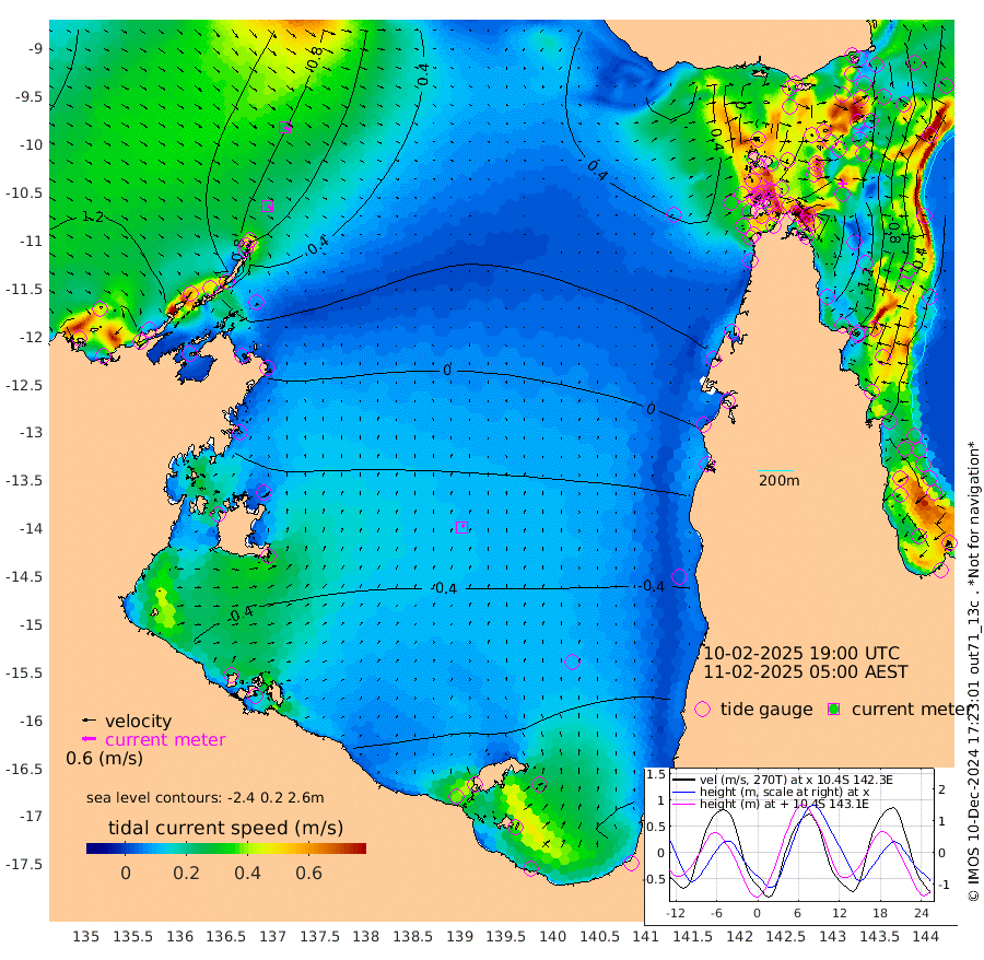 22cm/s 128T +3cm/s rms + 7cm/s -42T. ARA-GOC87 57m 13cm/s 32T +3cm/s rms + 2cm/s -2T. ARA-GOC87 60m 26cm/s 126T +2cm/s rms + 3cm/s 61T. ARA-GOC87 47m -147cm Daru -139cm Bobo Island -54cm Meer Island Barge -87cm Bramble Cay -123cm Unnamed Cay -131cm Pearce Cay -116cm Stephens Island -121cm Merrie England Shoals -145cm Mutacomal Reef -101cm Darnley Island Barge -66cm East Cay -121cm Yorke Island Barge -135cm Rennel Island -135cm Aureed Island -143cm Dungeness Reef -128cm Zagai Island -131cm Yam Island -94cm Dauan Island -80cm Saibai Island -122cm Phipi Reef -143cm Warrior Reef - West -53cm Mabuiag Island Barge -132cm Half Way Island -139cm Coconut Island -144cm Dugong Islet -138cm Poll Island -142cm Kirkcaldie Reef -140cm Suarji Island -126cm Sue Islet 30cm Hawkesbury Island -112cm Alert Patches -118cm Twin Island 10cm Badu Island -119cm St Pauls (Moa Island) -18cm Kubin (Moa Island) -79cm Ince Point -56cm Thursday Island -62cm Nardana Patches -32cm Turtle Head 3cm Round Island 27cm Goods Island 65cm Booby Island 44cm White Rocks Area 84cm Carpentaria -95cm Papou Point 71cm Bampfield Head 54cm Crab Island 47cm Red Wallis Island -7cm Packe Island -158cm Harrington Reef 28cm Herald Camp -43cm Sharp Point -27cm Red Island Point -66cm Possession Island -110cm Alpha Rock -133cm Frederick Point -137cm Wyborn Reef Light -136cm Tetley Island -57cm Triangle Reef -131cm Turtle Head Island -60cm Maclennan Cay -26cm Raine Island -116cm Mcsweeny Reef -101cm Collette Reef -56cm Shadwell Reef -108cm Hannibal Island -89cm Round Point 65cm Vrilya Point -78cm Cape Grenville -71cm Hicks Island -64cm Sir Charles Hardy Island -26cm Harvey Island -54cm Kay Reef -40cm Rocky Island -29cm Chapman Island -25cm Ham Reef -35cm Jubilee Reef -43cm Night Island -30cm Unnamed Reef No. 3 -42cm Morris Island -30cm 1st 3 Mile Opening -38cm Creech Reef -52cm Fife Island -34cm Eden Reef -40cm Stanley Island -51cm Normanby River 121cm Yabooma Island 124cm Hutchison River 122cm Elcho Island 112cm North West Crocodile Island 80cm Cape Wessel 104cm Stevens Island 48cm Guluwuru Island 103cm Hopeful Bay 88cm Auster Point 94cm Two Island Bay 93cm Cadell Strait 38cm Mallison Island 45cm Melville Bay (Gove Harbour) 52cm Truant Island 24cm Cape Arnhem 2cm Cape Grey -13cm Hawk Island -22cm Milner Bay (Groote Eylandt) -41cm Cape Beatrice -68cm West Island -64cm Centre Island -120cm Mornington Island -123cm West Wellesley Islands -128cm Bountiful Island -132cm Albert River Mouth -126cm Sweers Island -139cm Karumba -107cm Nassau River Offshore -77cm Christmas Creek -10cm Archer River 11cm Boyd Point 15cm Weipa (Humbug Point) 31cm Pennefather River 51cm Cullen Point