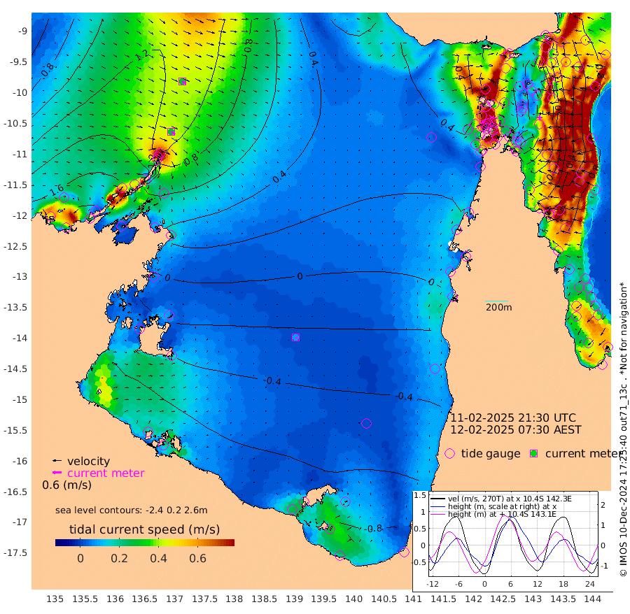 30cm/s 126T +3cm/s rms + 7cm/s -42T. ARA-GOC87 57m 8cm/s 144T +3cm/s rms + 2cm/s -2T. ARA-GOC87 60m 29cm/s 123T +2cm/s rms + 3cm/s 61T. ARA-GOC87 47m -29cm Daru -13cm Bobo Island 58cm Meer Island Barge 51cm Bramble Cay 18cm Unnamed Cay 11cm Pearce Cay 23cm Stephens Island 28cm Merrie England Shoals -11cm Mutacomal Reef 27cm Darnley Island Barge 62cm East Cay 0cm Yorke Island Barge -3cm Rennel Island -13cm Aureed Island -36cm Dungeness Reef -80cm Zagai Island -75cm Yam Island -96cm Dauan Island -87cm Saibai Island -105cm Phipi Reef -91cm Warrior Reef - West -53cm Mabuiag Island Barge -5cm Half Way Island -32cm Coconut Island -20cm Dugong Islet -53cm Poll Island -51cm Kirkcaldie Reef -82cm Suarji Island -54cm Sue Islet 63cm Hawkesbury Island -53cm Alert Patches -55cm Twin Island 25cm Badu Island -76cm St Pauls (Moa Island) 15cm Kubin (Moa Island) -40cm Ince Point -23cm Thursday Island -29cm Nardana Patches 4cm Turtle Head 29cm Round Island 59cm Goods Island 80cm Booby Island 75cm White Rocks Area 74cm Carpentaria -54cm Papou Point 95cm Bampfield Head 56cm Crab Island 69cm Red Wallis Island 34cm Packe Island -31cm Harrington Reef 53cm Herald Camp -42cm Sharp Point 3cm Red Island Point -25cm Possession Island -46cm Alpha Rock -45cm Frederick Point -14cm Wyborn Reef Light -24cm Tetley Island 42cm Triangle Reef -2cm Turtle Head Island 51cm Maclennan Cay 71cm Raine Island 13cm Mcsweeny Reef 25cm Collette Reef 51cm Shadwell Reef 34cm Hannibal Island 56cm Round Point 59cm Vrilya Point 54cm Cape Grenville 53cm Hicks Island 64cm Sir Charles Hardy Island 13cm Harvey Island 76cm Kay Reef 71cm Rocky Island 83cm Chapman Island 78cm Ham Reef 72cm Jubilee Reef 57cm Night Island 78cm Unnamed Reef No. 3 76cm Morris Island 72cm 1st 3 Mile Opening 71cm Creech Reef 63cm Fife Island 100cm Eden Reef 81cm Stanley Island 87cm Normanby River 180cm Yabooma Island 198cm Hutchison River 173cm Elcho Island 158cm North West Crocodile Island 125cm Cape Wessel 158cm Stevens Island 102cm Guluwuru Island 155cm Hopeful Bay 134cm Auster Point 136cm Two Island Bay 157cm Cadell Strait 122cm Mallison Island 89cm Melville Bay (Gove Harbour) 100cm Truant Island 50cm Cape Arnhem 10cm Cape Grey -8cm Hawk Island -50cm Milner Bay (Groote Eylandt) -62cm Cape Beatrice -113cm West Island -113cm Centre Island -137cm Mornington Island -132cm West Wellesley Islands -141cm Bountiful Island -168cm Albert River Mouth -174cm Sweers Island -172cm Karumba -96cm Nassau River Offshore -51cm Christmas Creek 15cm Archer River 29cm Boyd Point 38cm Weipa (Humbug Point) 33cm Pennefather River 50cm Cullen Point