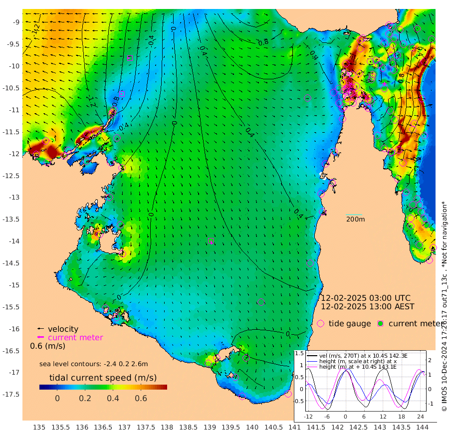 14cm/s -96T +3cm/s rms + 7cm/s -42T. ARA-GOC87 57m 35cm/s 169T +3cm/s rms + 2cm/s -2T. ARA-GOC87 60m 25cm/s -93T +2cm/s rms + 3cm/s 61T. ARA-GOC87 47m 141cm Daru 126cm Bobo Island 36cm Meer Island Barge 57cm Bramble Cay 99cm Unnamed Cay 114cm Pearce Cay 93cm Stephens Island 88cm Merrie England Shoals 129cm Mutacomal Reef 83cm Darnley Island Barge 42cm East Cay 112cm Yorke Island Barge 123cm Rennel Island 124cm Aureed Island 148cm Dungeness Reef 168cm Zagai Island 174cm Yam Island 186cm Dauan Island 170cm Saibai Island 179cm Phipi Reef 188cm Warrior Reef - West 149cm Mabuiag Island Barge 121cm Half Way Island 145cm Coconut Island 143cm Dugong Islet 162cm Poll Island 163cm Kirkcaldie Reef 181cm Suarji Island 159cm Sue Islet 117cm Hawkesbury Island 173cm Alert Patches 174cm Twin Island 120cm Badu Island 188cm St Pauls (Moa Island) 134cm Kubin (Moa Island) 161cm Ince Point 150cm Thursday Island 153cm Nardana Patches 135cm Turtle Head 112cm Round Island 101cm Goods Island 83cm Booby Island 83cm White Rocks Area 65cm Carpentaria 158cm Papou Point 84cm Bampfield Head 70cm Crab Island 91cm Red Wallis Island 123cm Packe Island 155cm Harrington Reef 113cm Herald Camp 59cm Sharp Point 120cm Red Island Point 142cm Possession Island 154cm Alpha Rock 167cm Frederick Point 137cm Wyborn Reef Light 147cm Tetley Island 54cm Triangle Reef 142cm Turtle Head Island 48cm Maclennan Cay 12cm Raine Island 100cm Mcsweeny Reef 81cm Collette Reef 40cm Shadwell Reef 79cm Hannibal Island 60cm Round Point 61cm Vrilya Point 51cm Cape Grenville 49cm Hicks Island 52cm Sir Charles Hardy Island 19cm Harvey Island 26cm Kay Reef 21cm Rocky Island 11cm Chapman Island 14cm Ham Reef 20cm Jubilee Reef 25cm Night Island 15cm Unnamed Reef No. 3 19cm Morris Island 17cm 1st 3 Mile Opening 22cm Creech Reef 29cm Fife Island 4cm Eden Reef 15cm Stanley Island 16cm Normanby River -149cm Yabooma Island -156cm Hutchison River -155cm Elcho Island -146cm North West Crocodile Island -83cm Cape Wessel -136cm Stevens Island -51cm Guluwuru Island -136cm Hopeful Bay -101cm Auster Point -97cm Two Island Bay -108cm Cadell Strait -39cm Mallison Island -56cm Melville Bay (Gove Harbour) -54cm Truant Island -32cm Cape Arnhem -34cm Cape Grey -34cm Hawk Island -56cm Milner Bay (Groote Eylandt) -41cm Cape Beatrice -31cm West Island -37cm Centre Island -16cm Mornington Island -16cm West Wellesley Islands -41cm Bountiful Island -89cm Albert River Mouth -110cm Sweers Island -65cm Karumba 18cm Nassau River Offshore 49cm Christmas Creek 41cm Archer River 58cm Boyd Point 48cm Weipa (Humbug Point) 44cm Pennefather River 61cm Cullen Point