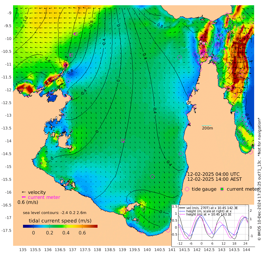 28cm/s -88T +3cm/s rms + 7cm/s -42T. ARA-GOC87 57m 31cm/s 173T +3cm/s rms + 2cm/s -2T. ARA-GOC87 60m 38cm/s -92T +2cm/s rms + 3cm/s 61T. ARA-GOC87 47m 76cm Daru 55cm Bobo Island -13cm Meer Island Barge -7cm Bramble Cay 30cm Unnamed Cay 39cm Pearce Cay 24cm Stephens Island 16cm Merrie England Shoals 59cm Mutacomal Reef 20cm Darnley Island Barge -14cm East Cay 48cm Yorke Island Barge 55cm Rennel Island 57cm Aureed Island 90cm Dungeness Reef 131cm Zagai Island 138cm Yam Island 182cm Dauan Island 167cm Saibai Island 171cm Phipi Reef 154cm Warrior Reef - West 144cm Mabuiag Island Barge 55cm Half Way Island 82cm Coconut Island 77cm Dugong Islet 110cm Poll Island 114cm Kirkcaldie Reef 142cm Suarji Island 114cm Sue Islet 116cm Hawkesbury Island 139cm Alert Patches 135cm Twin Island 123cm Badu Island 156cm St Pauls (Moa Island) 124cm Kubin (Moa Island) 139cm Ince Point 135cm Thursday Island 137cm Nardana Patches 127cm Turtle Head 110cm Round Island 102cm Goods Island 96cm Booby Island 85cm White Rocks Area 80cm Carpentaria 129cm Papou Point 87cm Bampfield Head 87cm Crab Island 99cm Red Wallis Island 115cm Packe Island 84cm Harrington Reef 121cm Herald Camp 55cm Sharp Point 114cm Red Island Point 120cm Possession Island 114cm Alpha Rock 114cm Frederick Point 67cm Wyborn Reef Light 81cm Tetley Island 8cm Triangle Reef 67cm Turtle Head Island 0cm Maclennan Cay -25cm Raine Island 34cm Mcsweeny Reef 20cm Collette Reef -5cm Shadwell Reef 11cm Hannibal Island -8cm Round Point 80cm Vrilya Point -7cm Cape Grenville -6cm Hicks Island -2cm Sir Charles Hardy Island 1cm Harvey Island -28cm Kay Reef -24cm Rocky Island -33cm Chapman Island -26cm Ham Reef -23cm Jubilee Reef -16cm Night Island -27cm Unnamed Reef No. 3 -28cm Morris Island -22cm 1st 3 Mile Opening -22cm Creech Reef -21cm Fife Island -48cm Eden Reef -32cm Stanley Island -41cm Normanby River -194cm Yabooma Island -214cm Hutchison River -198cm Elcho Island -185cm North West Crocodile Island -135cm Cape Wessel -188cm Stevens Island -106cm Guluwuru Island -180cm Hopeful Bay -149cm Auster Point -145cm Two Island Bay -170cm Cadell Strait -119cm Mallison Island -104cm Melville Bay (Gove Harbour) -108cm Truant Island -65cm Cape Arnhem -51cm Cape Grey -44cm Hawk Island -47cm Milner Bay (Groote Eylandt) -29cm Cape Beatrice -2cm West Island -5cm Centre Island 16cm Mornington Island 12cm West Wellesley Islands -4cm Bountiful Island -38cm Albert River Mouth -61cm Sweers Island -14cm Karumba 42cm Nassau River Offshore 66cm Christmas Creek 54cm Archer River 68cm Boyd Point 62cm Weipa (Humbug Point) 58cm Pennefather River 79cm Cullen Point