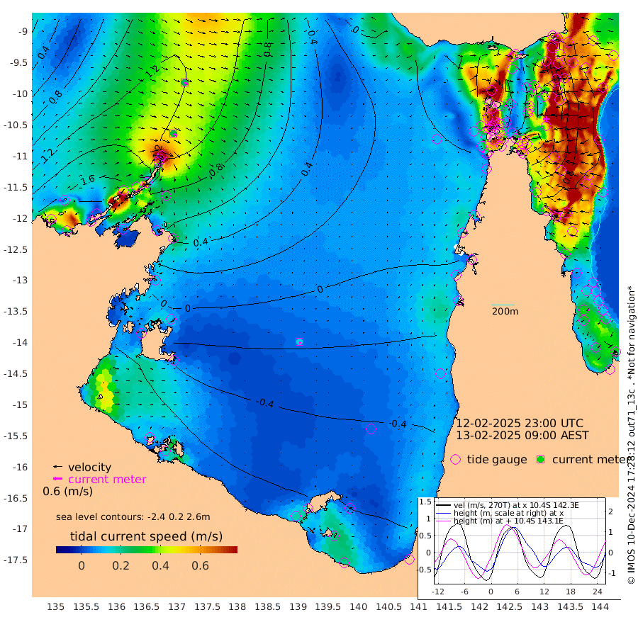 29cm/s 123T +3cm/s rms + 7cm/s -42T. ARA-GOC87 57m 14cm/s 167T +3cm/s rms + 2cm/s -2T. ARA-GOC87 60m 26cm/s 118T +2cm/s rms + 3cm/s 61T. ARA-GOC87 47m 53cm Daru 65cm Bobo Island 94cm Meer Island Barge 106cm Bramble Cay 90cm Unnamed Cay 87cm Pearce Cay 90cm Stephens Island 99cm Merrie England Shoals 73cm Mutacomal Reef 85cm Darnley Island Barge 104cm East Cay 67cm Yorke Island Barge 74cm Rennel Island 61cm Aureed Island 42cm Dungeness Reef -11cm Zagai Island -3cm Yam Island -41cm Dauan Island -40cm Saibai Island -45cm Phipi Reef -16cm Warrior Reef - West -13cm Mabuiag Island Barge 68cm Half Way Island 47cm Coconut Island 59cm Dugong Islet 24cm Poll Island 24cm Kirkcaldie Reef -5cm Suarji Island 15cm Sue Islet 82cm Hawkesbury Island 13cm Alert Patches 14cm Twin Island 47cm Badu Island -8cm St Pauls (Moa Island) 50cm Kubin (Moa Island) 13cm Ince Point 21cm Thursday Island 17cm Nardana Patches 40cm Turtle Head 54cm Round Island 74cm Goods Island 76cm Booby Island 84cm White Rocks Area 51cm Carpentaria 4cm Papou Point 97cm Bampfield Head 48cm Crab Island 72cm Red Wallis Island 62cm Packe Island 56cm Harrington Reef 66cm Herald Camp -23cm Sharp Point 31cm Red Island Point 22cm Possession Island 21cm Alpha Rock 31cm Frederick Point 70cm Wyborn Reef Light 59cm Tetley Island 81cm Triangle Reef 78cm Turtle Head Island 89cm Maclennan Cay 93cm Raine Island 81cm Mcsweeny Reef 85cm Collette Reef 87cm Shadwell Reef 97cm Hannibal Island 115cm Round Point 40cm Vrilya Point 103cm Cape Grenville 98cm Hicks Island 107cm Sir Charles Hardy Island 28cm Harvey Island 114cm Kay Reef 101cm Rocky Island 109cm Chapman Island 100cm Ham Reef 98cm Jubilee Reef 86cm Night Island 102cm Unnamed Reef No. 3 106cm Morris Island 96cm 1st 3 Mile Opening 99cm Creech Reef 99cm Fife Island 128cm Eden Reef 110cm Stanley Island 123cm Normanby River 194cm Yabooma Island 218cm Hutchison River 182cm Elcho Island 168cm North West Crocodile Island 139cm Cape Wessel 175cm Stevens Island 121cm Guluwuru Island 164cm Hopeful Bay 147cm Auster Point 146cm Two Island Bay 179cm Cadell Strait 146cm Mallison Island 108cm Melville Bay (Gove Harbour) 119cm Truant Island 63cm Cape Arnhem 18cm Cape Grey 1cm Hawk Island -54cm Milner Bay (Groote Eylandt) -61cm Cape Beatrice -119cm West Island -123cm Centre Island -127cm Mornington Island -119cm West Wellesley Islands -127cm Bountiful Island -161cm Albert River Mouth -171cm Sweers Island -163cm Karumba -81cm Nassau River Offshore -37cm Christmas Creek 14cm Archer River 27cm Boyd Point 35cm Weipa (Humbug Point) 20cm Pennefather River 37cm Cullen Point