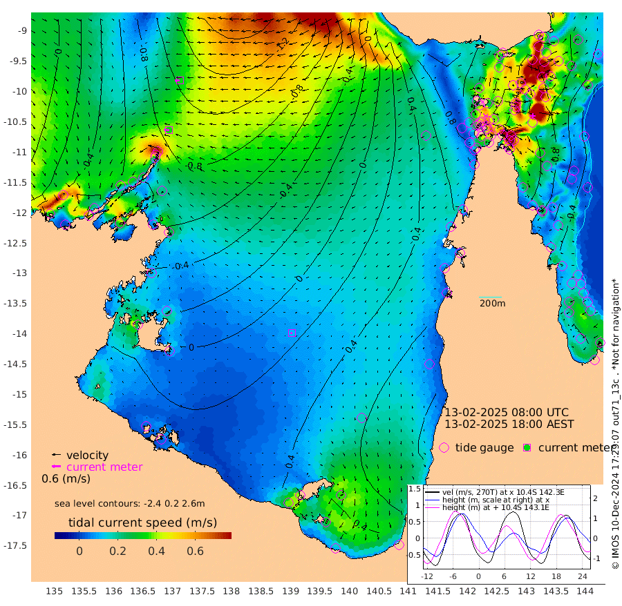 35cm/s -88T +3cm/s rms + 7cm/s -42T. ARA-GOC87 57m 12cm/s -117T +3cm/s rms + 2cm/s -2T. ARA-GOC87 60m 34cm/s -96T +2cm/s rms + 3cm/s 61T. ARA-GOC87 47m -103cm Daru -114cm Bobo Island -55cm Meer Island Barge -78cm Bramble Cay -97cm Unnamed Cay -108cm Pearce Cay -95cm Stephens Island -95cm Merrie England Shoals -105cm Mutacomal Reef -86cm Darnley Island Barge -60cm East Cay -96cm Yorke Island Barge -98cm Rennel Island -106cm Aureed Island -90cm Dungeness Reef -81cm Zagai Island -70cm Yam Island -20cm Dauan Island -25cm Saibai Island -11cm Phipi Reef -71cm Warrior Reef - West -17cm Mabuiag Island Barge -96cm Half Way Island -103cm Coconut Island -100cm Dugong Islet -91cm Poll Island -77cm Kirkcaldie Reef -80cm Suarji Island -82cm Sue Islet 43cm Hawkesbury Island -57cm Alert Patches -70cm Twin Island 33cm Badu Island -67cm St Pauls (Moa Island) 5cm Kubin (Moa Island) -35cm Ince Point -17cm Thursday Island -21cm Nardana Patches 10cm Turtle Head 21cm Round Island 44cm Goods Island 67cm Booby Island 46cm White Rocks Area 45cm Carpentaria -57cm Papou Point 38cm Bampfield Head 72cm Crab Island 55cm Red Wallis Island 23cm Packe Island -116cm Harrington Reef 56cm Herald Camp -14cm Sharp Point 22cm Red Island Point -31cm Possession Island -78cm Alpha Rock -91cm Frederick Point -117cm Wyborn Reef Light -114cm Tetley Island -56cm Triangle Reef -118cm Turtle Head Island -52cm Maclennan Cay -28cm Raine Island -95cm Mcsweeny Reef -81cm Collette Reef -48cm Shadwell Reef -90cm Hannibal Island -82cm Round Point 74cm Vrilya Point -66cm Cape Grenville -60cm Hicks Island -58cm Sir Charles Hardy Island -20cm Harvey Island -53cm Kay Reef -40cm Rocky Island -35cm Chapman Island -32cm Ham Reef -38cm Jubilee Reef -39cm Night Island -34cm Unnamed Reef No. 3 -43cm Morris Island -33cm 1st 3 Mile Opening -37cm Creech Reef -53cm Fife Island -42cm Eden Reef -39cm Stanley Island -53cm Normanby River -78cm Yabooma Island -102cm Hutchison River -78cm Elcho Island -66cm North West Crocodile Island -119cm Cape Wessel -106cm Stevens Island -127cm Guluwuru Island -83cm Hopeful Bay -104cm Auster Point -104cm Two Island Bay -120cm Cadell Strait -184cm Mallison Island -112cm Melville Bay (Gove Harbour) -127cm Truant Island -86cm Cape Arnhem -52cm Cape Grey -34cm Hawk Island -8cm Milner Bay (Groote Eylandt) 9cm Cape Beatrice 36cm West Island 44cm Centre Island 75cm Mornington Island 68cm West Wellesley Islands 90cm Bountiful Island 114cm Albert River Mouth 97cm Sweers Island 127cm Karumba 88cm Nassau River Offshore 82cm Christmas Creek 76cm Archer River 56cm Boyd Point 73cm Weipa (Humbug Point) 63cm Pennefather River 69cm Cullen Point