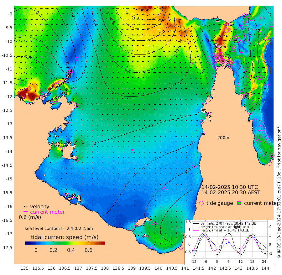 6cm/s -120T +3cm/s rms + 7cm/s -42T. ARA-GOC87 57m 15cm/s -63T +3cm/s rms + 2cm/s -2T. ARA-GOC87 60m 2cm/s 179T +2cm/s rms + 3cm/s 61T. ARA-GOC87 47m -45cm Daru -44cm Bobo Island 2cm Meer Island Barge 1cm Bramble Cay -22cm Unnamed Cay -27cm Pearce Cay -21cm Stephens Island -10cm Merrie England Shoals -35cm Mutacomal Reef -22cm Darnley Island Barge 7cm East Cay -39cm Yorke Island Barge -33cm Rennel Island -46cm Aureed Island -46cm Dungeness Reef -79cm Zagai Island -72cm Yam Island -72cm Dauan Island -79cm Saibai Island -41cm Phipi Reef -77cm Warrior Reef - West -59cm Mabuiag Island Barge -35cm Half Way Island -52cm Coconut Island -49cm Dugong Islet -63cm Poll Island -52cm Kirkcaldie Reef -78cm Suarji Island -68cm Sue Islet 0cm Hawkesbury Island -60cm Alert Patches -68cm Twin Island -8cm Badu Island -80cm St Pauls (Moa Island) -30cm Kubin (Moa Island) -56cm Ince Point -46cm Thursday Island -49cm Nardana Patches -23cm Turtle Head -17cm Round Island 3cm Goods Island 6cm Booby Island 7cm White Rocks Area -37cm Carpentaria -65cm Papou Point -17cm Bampfield Head 16cm Crab Island 0cm Red Wallis Island -14cm Packe Island -57cm Harrington Reef -10cm Herald Camp -26cm Sharp Point -7cm Red Island Point -46cm Possession Island -70cm Alpha Rock -64cm Frederick Point -52cm Wyborn Reef Light -59cm Tetley Island -9cm Triangle Reef -48cm Turtle Head Island -3cm Maclennan Cay 20cm Raine Island -27cm Mcsweeny Reef -15cm Collette Reef 5cm Shadwell Reef -11cm Hannibal Island 4cm Round Point 11cm Vrilya Point 3cm Cape Grenville 4cm Hicks Island -5cm Sir Charles Hardy Island -1cm Harvey Island 16cm Kay Reef 16cm Rocky Island 23cm Chapman Island 15cm Ham Reef 14cm Jubilee Reef 10cm Night Island 17cm Unnamed Reef No. 3 18cm Morris Island 15cm 1st 3 Mile Opening 14cm Creech Reef 10cm Fife Island 28cm Eden Reef 21cm Stanley Island 23cm Normanby River 87cm Yabooma Island 88cm Hutchison River 82cm Elcho Island 86cm North West Crocodile Island -3cm Cape Wessel 58cm Stevens Island -22cm Guluwuru Island 64cm Hopeful Bay 26cm Auster Point 19cm Two Island Bay 48cm Cadell Strait -68cm Mallison Island -8cm Melville Bay (Gove Harbour) -19cm Truant Island -19cm Cape Arnhem -3cm Cape Grey 7cm Hawk Island 14cm Milner Bay (Groote Eylandt) 22cm Cape Beatrice 17cm West Island 22cm Centre Island 67cm Mornington Island 63cm West Wellesley Islands 97cm Bountiful Island 135cm Albert River Mouth 134cm Sweers Island 139cm Karumba 74cm Nassau River Offshore 54cm Christmas Creek 46cm Archer River 10cm Boyd Point 32cm Weipa (Humbug Point) 24cm Pennefather River 4cm Cullen Point