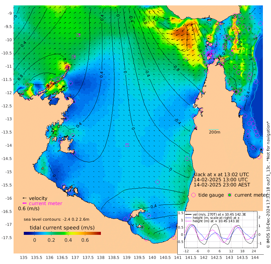 26cm/s 87T +3cm/s rms + 7cm/s -42T. ARA-GOC87 57m 16cm/s -34T +3cm/s rms + 2cm/s -2T. ARA-GOC87 60m 32cm/s 75T +2cm/s rms + 3cm/s 61T. ARA-GOC87 47m 52cm Daru 63cm Bobo Island 36cm Meer Island Barge 58cm Bramble Cay 55cm Unnamed Cay 67cm Pearce Cay 54cm Stephens Island 63cm Merrie England Shoals 55cm Mutacomal Reef 47cm Darnley Island Barge 46cm East Cay 45cm Yorke Island Barge 49cm Rennel Island 52cm Aureed Island 38cm Dungeness Reef 13cm Zagai Island 1cm Yam Island -27cm Dauan Island -29cm Saibai Island 3cm Phipi Reef 13cm Warrior Reef - West -42cm Mabuiag Island Barge 42cm Half Way Island 45cm Coconut Island 33cm Dugong Islet 23cm Poll Island 18cm Kirkcaldie Reef 4cm Suarji Island 11cm Sue Islet -93cm Hawkesbury Island -12cm Alert Patches -7cm Twin Island -65cm Badu Island -17cm St Pauls (Moa Island) -69cm Kubin (Moa Island) -35cm Ince Point -50cm Thursday Island -46cm Nardana Patches -58cm Turtle Head -77cm Round Island -84cm Goods Island -114cm Booby Island -93cm White Rocks Area -141cm Carpentaria -16cm Papou Point -123cm Bampfield Head -94cm Crab Island -106cm Red Wallis Island -74cm Packe Island 44cm Harrington Reef -119cm Herald Camp -6cm Sharp Point -46cm Red Island Point -35cm Possession Island -5cm Alpha Rock 16cm Frederick Point 49cm Wyborn Reef Light 41cm Tetley Island 30cm Triangle Reef 43cm Turtle Head Island 27cm Maclennan Cay 30cm Raine Island 51cm Mcsweeny Reef 51cm Collette Reef 36cm Shadwell Reef 60cm Hannibal Island 62cm Round Point -103cm Vrilya Point 44cm Cape Grenville 42cm Hicks Island 29cm Sir Charles Hardy Island 12cm Harvey Island 43cm Kay Reef 35cm Rocky Island 38cm Chapman Island 26cm Ham Reef 30cm Jubilee Reef 30cm Night Island 31cm Unnamed Reef No. 3 37cm Morris Island 23cm 1st 3 Mile Opening 29cm Creech Reef 45cm Fife Island 43cm Eden Reef 34cm Stanley Island 46cm Normanby River 114cm Yabooma Island 143cm Hutchison River 119cm Elcho Island 114cm North West Crocodile Island 81cm Cape Wessel 126cm Stevens Island 89cm Guluwuru Island 111cm Hopeful Bay 93cm Auster Point 79cm Two Island Bay 140cm Cadell Strait 127cm Mallison Island 90cm Melville Bay (Gove Harbour) 88cm Truant Island 62cm Cape Arnhem 56cm Cape Grey 55cm Hawk Island 46cm Milner Bay (Groote Eylandt) 41cm Cape Beatrice 19cm West Island 18cm Centre Island 67cm Mornington Island 64cm West Wellesley Islands 93cm Bountiful Island 130cm Albert River Mouth 148cm Sweers Island 121cm Karumba 48cm Nassau River Offshore 9cm Christmas Creek -24cm Archer River -58cm Boyd Point -53cm Weipa (Humbug Point) -57cm Pennefather River -99cm Cullen Point