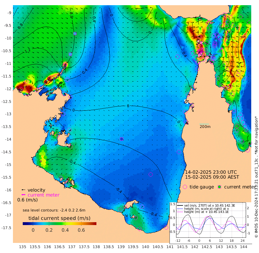 13cm/s 152T +3cm/s rms + 7cm/s -42T. ARA-GOC87 57m 2cm/s -163T +3cm/s rms + 2cm/s -2T. ARA-GOC87 60m 15cm/s 147T +2cm/s rms + 3cm/s 61T. ARA-GOC87 47m 1cm Daru 2cm Bobo Island 42cm Meer Island Barge 47cm Bramble Cay 35cm Unnamed Cay 20cm Pearce Cay 30cm Stephens Island 41cm Merrie England Shoals 21cm Mutacomal Reef 25cm Darnley Island Barge 46cm East Cay 11cm Yorke Island Barge 21cm Rennel Island 1cm Aureed Island -1cm Dungeness Reef -37cm Zagai Island -24cm Yam Island -42cm Dauan Island -47cm Saibai Island -48cm Phipi Reef -43cm Warrior Reef - West -7cm Mabuiag Island Barge 17cm Half Way Island -2cm Coconut Island 11cm Dugong Islet -10cm Poll Island -9cm Kirkcaldie Reef -22cm Suarji Island -17cm Sue Islet 86cm Hawkesbury Island -2cm Alert Patches -7cm Twin Island 57cm Badu Island -20cm St Pauls (Moa Island) 51cm Kubin (Moa Island) 8cm Ince Point 21cm Thursday Island 17cm Nardana Patches 44cm Turtle Head 62cm Round Island 84cm Goods Island 95cm Booby Island 101cm White Rocks Area 67cm Carpentaria -10cm Papou Point 111cm Bampfield Head 64cm Crab Island 85cm Red Wallis Island 63cm Packe Island 3cm Harrington Reef 78cm Herald Camp -23cm Sharp Point 27cm Red Island Point 14cm Possession Island -1cm Alpha Rock -4cm Frederick Point 17cm Wyborn Reef Light 11cm Tetley Island 33cm Triangle Reef 24cm Turtle Head Island 41cm Maclennan Cay 51cm Raine Island 25cm Mcsweeny Reef 30cm Collette Reef 41cm Shadwell Reef 37cm Hannibal Island 51cm Round Point 55cm Vrilya Point 48cm Cape Grenville 44cm Hicks Island 52cm Sir Charles Hardy Island 11cm Harvey Island 59cm Kay Reef 52cm Rocky Island 56cm Chapman Island 52cm Ham Reef 51cm Jubilee Reef 41cm Night Island 52cm Unnamed Reef No. 3 56cm Morris Island 56cm 1st 3 Mile Opening 51cm Creech Reef 43cm Fife Island 69cm Eden Reef 60cm Stanley Island 64cm Normanby River 180cm Yabooma Island 191cm Hutchison River 166cm Elcho Island 157cm North West Crocodile Island 96cm Cape Wessel 145cm Stevens Island 65cm Guluwuru Island 136cm Hopeful Bay 114cm Auster Point 111cm Two Island Bay 123cm Cadell Strait 14cm Mallison Island 64cm Melville Bay (Gove Harbour) 69cm Truant Island 30cm Cape Arnhem 8cm Cape Grey -5cm Hawk Island -29cm Milner Bay (Groote Eylandt) -34cm Cape Beatrice -70cm West Island -75cm Centre Island -92cm Mornington Island -81cm West Wellesley Islands -77cm Bountiful Island -89cm Albert River Mouth -103cm Sweers Island -101cm Karumba -62cm Nassau River Offshore -32cm Christmas Creek 14cm Archer River 27cm Boyd Point 41cm Weipa (Humbug Point) 25cm Pennefather River 49cm Cullen Point