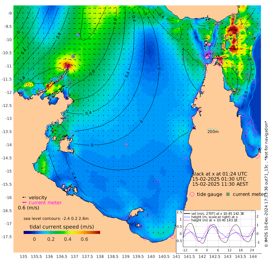 21cm/s 110T +3cm/s rms + 7cm/s -42T. ARA-GOC87 57m 19cm/s 178T +3cm/s rms + 2cm/s -2T. ARA-GOC87 60m 16cm/s 95T +2cm/s rms + 3cm/s 61T. ARA-GOC87 47m 118cm Daru 119cm Bobo Island 79cm Meer Island Barge 107cm Bramble Cay 119cm Unnamed Cay 122cm Pearce Cay 111cm Stephens Island 119cm Merrie England Shoals 127cm Mutacomal Reef 100cm Darnley Island Barge 91cm East Cay 105cm Yorke Island Barge 118cm Rennel Island 109cm Aureed Island 105cm Dungeness Reef 88cm Zagai Island 91cm Yam Island 74cm Dauan Island 65cm Saibai Island 63cm Phipi Reef 97cm Warrior Reef - West 57cm Mabuiag Island Barge 106cm Half Way Island 111cm Coconut Island 111cm Dugong Islet 102cm Poll Island 93cm Kirkcaldie Reef 89cm Suarji Island 91cm Sue Islet 67cm Hawkesbury Island 83cm Alert Patches 89cm Twin Island 58cm Badu Island 82cm St Pauls (Moa Island) 72cm Kubin (Moa Island) 72cm Ince Point 63cm Thursday Island 66cm Nardana Patches 64cm Turtle Head 61cm Round Island 54cm Goods Island 30cm Booby Island 47cm White Rocks Area -4cm Carpentaria 73cm Papou Point 53cm Bampfield Head 10cm Crab Island 39cm Red Wallis Island 67cm Packe Island 116cm Harrington Reef 52cm Herald Camp 12cm Sharp Point 45cm Red Island Point 65cm Possession Island 93cm Alpha Rock 103cm Frederick Point 130cm Wyborn Reef Light 127cm Tetley Island 83cm Triangle Reef 122cm Turtle Head Island 79cm Maclennan Cay 64cm Raine Island 111cm Mcsweeny Reef 102cm Collette Reef 78cm Shadwell Reef 111cm Hannibal Island 114cm Round Point -11cm Vrilya Point 94cm Cape Grenville 90cm Hicks Island 98cm Sir Charles Hardy Island 27cm Harvey Island 88cm Kay Reef 76cm Rocky Island 77cm Chapman Island 69cm Ham Reef 72cm Jubilee Reef 67cm Night Island 71cm Unnamed Reef No. 3 78cm Morris Island 65cm 1st 3 Mile Opening 70cm Creech Reef 84cm Fife Island 84cm Eden Reef 75cm Stanley Island 89cm Normanby River 145cm Yabooma Island 174cm Hutchison River 136cm Elcho Island 126cm North West Crocodile Island 123cm Cape Wessel 144cm Stevens Island 126cm Guluwuru Island 126cm Hopeful Bay 119cm Auster Point 120cm Two Island Bay 160cm Cadell Strait 183cm Mallison Island 113cm Melville Bay (Gove Harbour) 124cm Truant Island 75cm Cape Arnhem 30cm Cape Grey 17cm Hawk Island -40cm Milner Bay (Groote Eylandt) -43cm Cape Beatrice -95cm West Island -105cm Centre Island -79cm Mornington Island -74cm West Wellesley Islands -77cm Bountiful Island -100cm Albert River Mouth -117cm Sweers Island -102cm Karumba -46cm Nassau River Offshore -18cm Christmas Creek -4cm Archer River 8cm Boyd Point 10cm Weipa (Humbug Point) -16cm Pennefather River 1cm Cullen Point