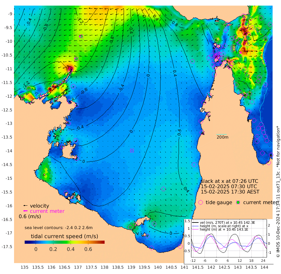 34cm/s -82T +3cm/s rms + 7cm/s -42T. ARA-GOC87 57m 9cm/s -174T +3cm/s rms + 2cm/s -2T. ARA-GOC87 60m 36cm/s -91T +2cm/s rms + 3cm/s 61T. ARA-GOC87 47m -66cm Daru -75cm Bobo Island -49cm Meer Island Barge -69cm Bramble Cay -73cm Unnamed Cay -78cm Pearce Cay -68cm Stephens Island -75cm Merrie England Shoals -72cm Mutacomal Reef -61cm Darnley Island Barge -54cm East Cay -62cm Yorke Island Barge -66cm Rennel Island -67cm Aureed Island -53cm Dungeness Reef -37cm Zagai Island -25cm Yam Island 2cm Dauan Island 1cm Saibai Island 1cm Phipi Reef -30cm Warrior Reef - West 4cm Mabuiag Island Barge -58cm Half Way Island -64cm Coconut Island -55cm Dugong Islet -46cm Poll Island -33cm Kirkcaldie Reef -36cm Suarji Island -37cm Sue Islet 41cm Hawkesbury Island -21cm Alert Patches -25cm Twin Island 19cm Badu Island -18cm St Pauls (Moa Island) 20cm Kubin (Moa Island) -3cm Ince Point 8cm Thursday Island 5cm Nardana Patches 16cm Turtle Head 29cm Round Island 32cm Goods Island 54cm Booby Island 33cm White Rocks Area 65cm Carpentaria -15cm Papou Point 38cm Bampfield Head 60cm Crab Island 51cm Red Wallis Island 30cm Packe Island -65cm Harrington Reef 66cm Herald Camp 4cm Sharp Point 27cm Red Island Point 1cm Possession Island -33cm Alpha Rock -44cm Frederick Point -78cm Wyborn Reef Light -71cm Tetley Island -46cm Triangle Reef -72cm Turtle Head Island -42cm Maclennan Cay -39cm Raine Island -69cm Mcsweeny Reef -64cm Collette Reef -47cm Shadwell Reef -73cm Hannibal Island -73cm Round Point 72cm Vrilya Point -56cm Cape Grenville -52cm Hicks Island -51cm Sir Charles Hardy Island -15cm Harvey Island -55cm Kay Reef -45cm Rocky Island -47cm Chapman Island -38cm Ham Reef -43cm Jubilee Reef -38cm Night Island -41cm Unnamed Reef No. 3 -48cm Morris Island -40cm 1st 3 Mile Opening -40cm Creech Reef -52cm Fife Island -54cm Eden Reef -44cm Stanley Island -55cm Normanby River -160cm Yabooma Island -197cm Hutchison River -163cm Elcho Island -148cm North West Crocodile Island -139cm Cape Wessel -172cm Stevens Island -144cm Guluwuru Island -147cm Hopeful Bay -142cm Auster Point -130cm Two Island Bay -177cm Cadell Strait -179cm Mallison Island -134cm Melville Bay (Gove Harbour) -143cm Truant Island -94cm Cape Arnhem -66cm Cape Grey -47cm Hawk Island -22cm Milner Bay (Groote Eylandt) -7cm Cape Beatrice 33cm West Island 41cm Centre Island 38cm Mornington Island 31cm West Wellesley Islands 20cm Bountiful Island 16cm Albert River Mouth 5cm Sweers Island 38cm Karumba 47cm Nassau River Offshore 52cm Christmas Creek 47cm Archer River 46cm Boyd Point 47cm Weipa (Humbug Point) 55cm Pennefather River 69cm Cullen Point