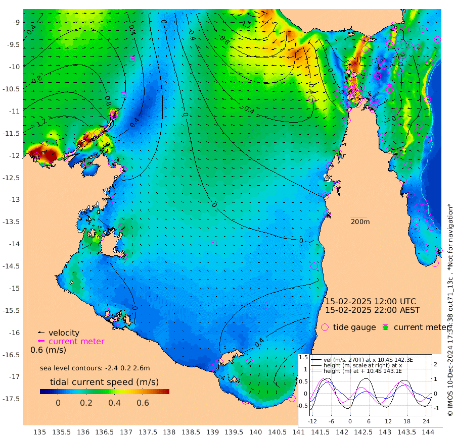 14cm/s 111T +3cm/s rms + 7cm/s -42T. ARA-GOC87 57m 15cm/s -48T +3cm/s rms + 2cm/s -2T. ARA-GOC87 60m 19cm/s 92T +2cm/s rms + 3cm/s 61T. ARA-GOC87 47m 6cm Daru 9cm Bobo Island 19cm Meer Island Barge 31cm Bramble Cay 20cm Unnamed Cay 21cm Pearce Cay 17cm Stephens Island 30cm Merrie England Shoals 13cm Mutacomal Reef 11cm Darnley Island Barge 27cm East Cay 2cm Yorke Island Barge 11cm Rennel Island 0cm Aureed Island -1cm Dungeness Reef -32cm Zagai Island -31cm Yam Island -42cm Dauan Island -51cm Saibai Island -9cm Phipi Reef -31cm Warrior Reef - West -37cm Mabuiag Island Barge 6cm Half Way Island -2cm Coconut Island -5cm Dugong Islet -16cm Poll Island -12cm Kirkcaldie Reef -33cm Suarji Island -25cm Sue Islet -10cm Hawkesbury Island -24cm Alert Patches -28cm Twin Island -6cm Badu Island -38cm St Pauls (Moa Island) -24cm Kubin (Moa Island) -31cm Ince Point -30cm Thursday Island -31cm Nardana Patches -18cm Turtle Head -18cm Round Island -10cm Goods Island -22cm Booby Island -12cm White Rocks Area -71cm Carpentaria -31cm Papou Point -36cm Bampfield Head -11cm Crab Island -24cm Red Wallis Island -18cm Packe Island -4cm Harrington Reef -33cm Herald Camp -16cm Sharp Point -5cm Red Island Point -23cm Possession Island -31cm Alpha Rock -18cm Frederick Point 4cm Wyborn Reef Light -4cm Tetley Island 11cm Triangle Reef 8cm Turtle Head Island 12cm Maclennan Cay 26cm Raine Island 13cm Mcsweeny Reef 19cm Collette Reef 21cm Shadwell Reef 25cm Hannibal Island 36cm Round Point -20cm Vrilya Point 24cm Cape Grenville 24cm Hicks Island 10cm Sir Charles Hardy Island 6cm Harvey Island 30cm Kay Reef 26cm Rocky Island 30cm Chapman Island 20cm Ham Reef 22cm Jubilee Reef 20cm Night Island 23cm Unnamed Reef No. 3 28cm Morris Island 21cm 1st 3 Mile Opening 21cm Creech Reef 26cm Fife Island 35cm Eden Reef 28cm Stanley Island 35cm Normanby River 140cm Yabooma Island 156cm Hutchison River 135cm Elcho Island 135cm North West Crocodile Island 52cm Cape Wessel 123cm Stevens Island 38cm Guluwuru Island 115cm Hopeful Bay 82cm Auster Point 72cm Two Island Bay 123cm Cadell Strait 12cm Mallison Island 49cm Melville Bay (Gove Harbour) 43cm Truant Island 23cm Cape Arnhem 25cm Cape Grey 29cm Hawk Island 21cm Milner Bay (Groote Eylandt) 20cm Cape Beatrice -1cm West Island 1cm Centre Island 46cm Mornington Island 41cm West Wellesley Islands 74cm Bountiful Island 109cm Albert River Mouth 119cm Sweers Island 112cm Karumba 49cm Nassau River Offshore 27cm Christmas Creek 18cm Archer River -14cm Boyd Point 2cm Weipa (Humbug Point) 1cm Pennefather River -28cm Cullen Point