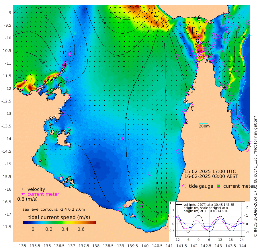 15cm/s 58T +3cm/s rms + 7cm/s -42T. ARA-GOC87 57m 14cm/s 33T +3cm/s rms + 2cm/s -2T. ARA-GOC87 60m 15cm/s 55T +2cm/s rms + 3cm/s 61T. ARA-GOC87 47m -6cm Daru 1cm Bobo Island -28cm Meer Island Barge -34cm Bramble Cay -27cm Unnamed Cay -15cm Pearce Cay -22cm Stephens Island -33cm Merrie England Shoals -21cm Mutacomal Reef -15cm Darnley Island Barge -35cm East Cay -6cm Yorke Island Barge -21cm Rennel Island 4cm Aureed Island -9cm Dungeness Reef 23cm Zagai Island 0cm Yam Island 1cm Dauan Island 17cm Saibai Island -4cm Phipi Reef 15cm Warrior Reef - West -15cm Mabuiag Island Barge -18cm Half Way Island 1cm Coconut Island -15cm Dugong Islet -1cm Poll Island -11cm Kirkcaldie Reef 10cm Suarji Island 7cm Sue Islet -121cm Hawkesbury Island -15cm Alert Patches -9cm Twin Island -82cm Badu Island -1cm St Pauls (Moa Island) -79cm Kubin (Moa Island) -29cm Ince Point -42cm Thursday Island -38cm Nardana Patches -70cm Turtle Head -90cm Round Island -105cm Goods Island -113cm Booby Island -113cm White Rocks Area -60cm Carpentaria -8cm Papou Point -113cm Bampfield Head -93cm Crab Island -108cm Red Wallis Island -94cm Packe Island -5cm Harrington Reef -121cm Herald Camp 10cm Sharp Point -63cm Red Island Point -35cm Possession Island -7cm Alpha Rock -6cm Frederick Point -12cm Wyborn Reef Light -9cm Tetley Island -23cm Triangle Reef -19cm Turtle Head Island -31cm Maclennan Cay -38cm Raine Island -17cm Mcsweeny Reef -21cm Collette Reef -30cm Shadwell Reef -25cm Hannibal Island -40cm Round Point -80cm Vrilya Point -37cm Cape Grenville -36cm Hicks Island -39cm Sir Charles Hardy Island -10cm Harvey Island -43cm Kay Reef -38cm Rocky Island -40cm Chapman Island -37cm Ham Reef -36cm Jubilee Reef -32cm Night Island -37cm Unnamed Reef No. 3 -40cm Morris Island -39cm 1st 3 Mile Opening -37cm Creech Reef -31cm Fife Island -48cm Eden Reef -45cm Stanley Island -48cm Normanby River -118cm Yabooma Island -114cm Hutchison River -99cm Elcho Island -102cm North West Crocodile Island -22cm Cape Wessel -74cm Stevens Island 9cm Guluwuru Island -75cm Hopeful Bay -46cm Auster Point -52cm Two Island Bay -61cm Cadell Strait 75cm Mallison Island 0cm Melville Bay (Gove Harbour) 3cm Truant Island 18cm Cape Arnhem 26cm Cape Grey 21cm Hawk Island 42cm Milner Bay (Groote Eylandt) 33cm Cape Beatrice 56cm West Island 57cm Centre Island 34cm Mornington Island 32cm West Wellesley Islands 22cm Bountiful Island 23cm Albert River Mouth 48cm Sweers Island 12cm Karumba -8cm Nassau River Offshore -31cm Christmas Creek -55cm Archer River -53cm Boyd Point -72cm Weipa (Humbug Point) -53cm Pennefather River -77cm Cullen Point