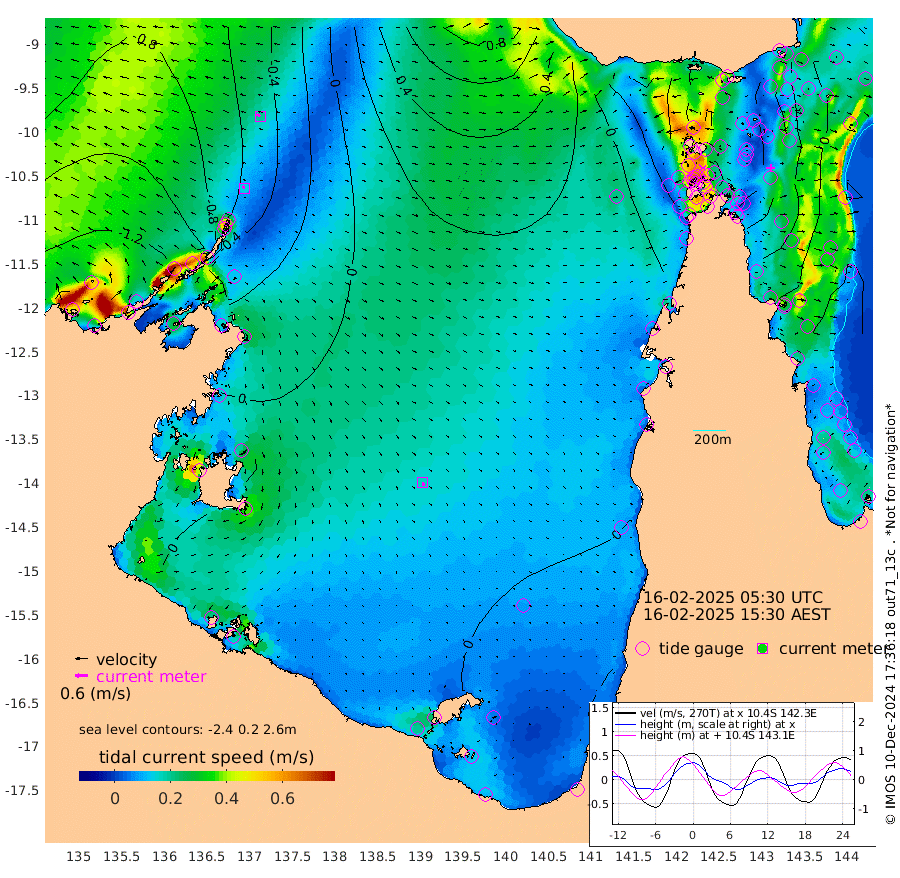 14cm/s -52T +3cm/s rms + 7cm/s -42T. ARA-GOC87 57m 17cm/s 167T +3cm/s rms + 2cm/s -2T. ARA-GOC87 60m 19cm/s -63T +2cm/s rms + 3cm/s 61T. ARA-GOC87 47m 22cm Daru 19cm Bobo Island -12cm Meer Island Barge -13cm Bramble Cay -2cm Unnamed Cay 3cm Pearce Cay 0cm Stephens Island -9cm Merrie England Shoals 12cm Mutacomal Reef 4cm Darnley Island Barge -12cm East Cay 15cm Yorke Island Barge 10cm Rennel Island 20cm Aureed Island 21cm Dungeness Reef 54cm Zagai Island 52cm Yam Island 69cm Dauan Island 74cm Saibai Island 48cm Phipi Reef 64cm Warrior Reef - West 36cm Mabuiag Island Barge 10cm Half Way Island 22cm Coconut Island 19cm Dugong Islet 33cm Poll Island 30cm Kirkcaldie Reef 38cm Suarji Island 40cm Sue Islet -10cm Hawkesbury Island 25cm Alert Patches 34cm Twin Island -11cm Badu Island 43cm St Pauls (Moa Island) 10cm Kubin (Moa Island) 27cm Ince Point 17cm Thursday Island 21cm Nardana Patches 3cm Turtle Head 1cm Round Island -21cm Goods Island -27cm Booby Island -34cm White Rocks Area 2cm Carpentaria 34cm Papou Point -21cm Bampfield Head -18cm Crab Island -13cm Red Wallis Island 5cm Packe Island 20cm Harrington Reef 11cm Herald Camp 23cm Sharp Point 3cm Red Island Point 18cm Possession Island 37cm Alpha Rock 31cm Frederick Point 17cm Wyborn Reef Light 24cm Tetley Island 0cm Triangle Reef 2cm Turtle Head Island -7cm Maclennan Cay -22cm Raine Island 3cm Mcsweeny Reef -2cm Collette Reef -11cm Shadwell Reef -7cm Hannibal Island -16cm Round Point -15cm Vrilya Point -12cm Cape Grenville -12cm Hicks Island -2cm Sir Charles Hardy Island -1cm Harvey Island -21cm Kay Reef -18cm Rocky Island -21cm Chapman Island -14cm Ham Reef -17cm Jubilee Reef -12cm Night Island -16cm Unnamed Reef No. 3 -22cm Morris Island -26cm 1st 3 Mile Opening -18cm Creech Reef -11cm Fife Island -30cm Eden Reef -24cm Stanley Island -26cm Normanby River -139cm Yabooma Island -151cm Hutchison River -134cm Elcho Island -129cm North West Crocodile Island -55cm Cape Wessel -113cm Stevens Island -31cm Guluwuru Island -104cm Hopeful Bay -84cm Auster Point -70cm Two Island Bay -95cm Cadell Strait 61cm Mallison Island -41cm Melville Bay (Gove Harbour) -38cm Truant Island -17cm Cape Arnhem -26cm Cape Grey -15cm Hawk Island -22cm Milner Bay (Groote Eylandt) -15cm Cape Beatrice -1cm West Island -1cm Centre Island 7cm Mornington Island 2cm West Wellesley Islands -22cm Bountiful Island -37cm Albert River Mouth -51cm Sweers Island -26cm Karumba 9cm Nassau River Offshore 17cm Christmas Creek -4cm Archer River 7cm Boyd Point -7cm Weipa (Humbug Point) -13cm Pennefather River 3cm Cullen Point