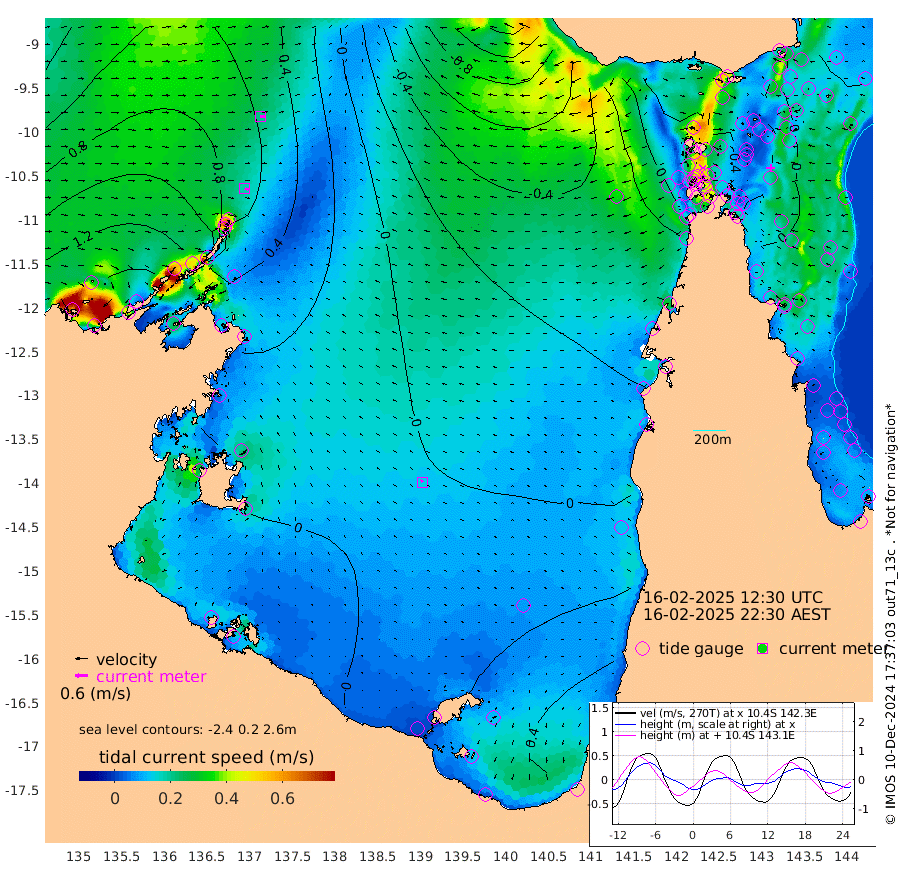 18cm/s 114T +3cm/s rms + 7cm/s -42T. ARA-GOC87 57m 13cm/s -40T +3cm/s rms + 2cm/s -2T. ARA-GOC87 60m 22cm/s 97T +2cm/s rms + 3cm/s 61T. ARA-GOC87 47m 11cm Daru 11cm Bobo Island 13cm Meer Island Barge 25cm Bramble Cay 19cm Unnamed Cay 21cm Pearce Cay 15cm Stephens Island 26cm Merrie England Shoals 15cm Mutacomal Reef 8cm Darnley Island Barge 18cm East Cay 4cm Yorke Island Barge 12cm Rennel Island 1cm Aureed Island 6cm Dungeness Reef -19cm Zagai Island -17cm Yam Island -24cm Dauan Island -36cm Saibai Island 6cm Phipi Reef -18cm Warrior Reef - West -19cm Mabuiag Island Barge 9cm Half Way Island 5cm Coconut Island 0cm Dugong Islet -5cm Poll Island -2cm Kirkcaldie Reef -19cm Suarji Island -15cm Sue Islet 10cm Hawkesbury Island -9cm Alert Patches -13cm Twin Island 11cm Badu Island -19cm St Pauls (Moa Island) -4cm Kubin (Moa Island) -14cm Ince Point -12cm Thursday Island -13cm Nardana Patches -2cm Turtle Head 2cm Round Island 4cm Goods Island -6cm Booby Island 1cm White Rocks Area -58cm Carpentaria -14cm Papou Point -14cm Bampfield Head 3cm Crab Island -10cm Red Wallis Island -3cm Packe Island 2cm Harrington Reef -13cm Herald Camp -11cm Sharp Point 8cm Red Island Point -4cm Possession Island -19cm Alpha Rock -6cm Frederick Point 10cm Wyborn Reef Light 5cm Tetley Island 7cm Triangle Reef 19cm Turtle Head Island 6cm Maclennan Cay 18cm Raine Island 12cm Mcsweeny Reef 16cm Collette Reef 15cm Shadwell Reef 21cm Hannibal Island 30cm Round Point -8cm Vrilya Point 17cm Cape Grenville 18cm Hicks Island 2cm Sir Charles Hardy Island 4cm Harvey Island 19cm Kay Reef 16cm Rocky Island 19cm Chapman Island 10cm Ham Reef 13cm Jubilee Reef 12cm Night Island 12cm Unnamed Reef No. 3 18cm Morris Island 13cm 1st 3 Mile Opening 12cm Creech Reef 17cm Fife Island 22cm Eden Reef 18cm Stanley Island 23cm Normanby River 149cm Yabooma Island 164cm Hutchison River 142cm Elcho Island 141cm North West Crocodile Island 59cm Cape Wessel 131cm Stevens Island 43cm Guluwuru Island 120cm Hopeful Bay 91cm Auster Point 84cm Two Island Bay 133cm Cadell Strait 6cm Mallison Island 55cm Melville Bay (Gove Harbour) 51cm Truant Island 27cm Cape Arnhem 25cm Cape Grey 27cm Hawk Island 16cm Milner Bay (Groote Eylandt) 12cm Cape Beatrice -13cm West Island -11cm Centre Island 24cm Mornington Island 18cm West Wellesley Islands 47cm Bountiful Island 76cm Albert River Mouth 90cm Sweers Island 82cm Karumba 29cm Nassau River Offshore 13cm Christmas Creek 13cm Archer River -13cm Boyd Point 1cm Weipa (Humbug Point) 7cm Pennefather River -18cm Cullen Point