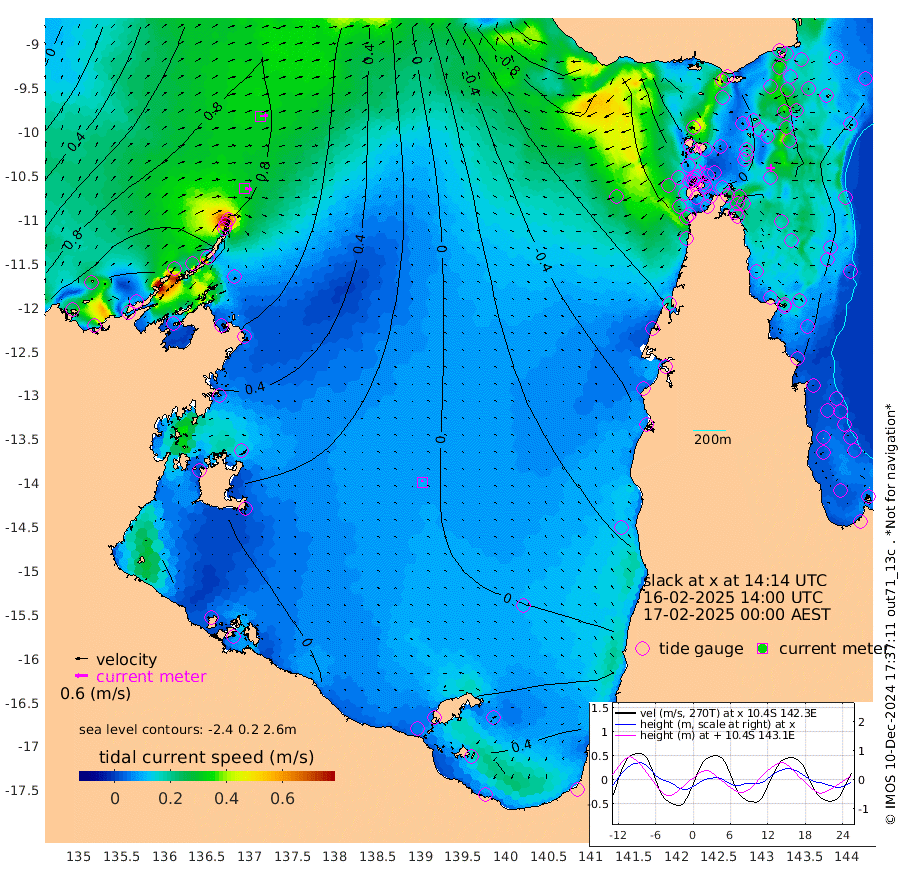 32cm/s 99T +3cm/s rms + 7cm/s -42T. ARA-GOC87 57m 10cm/s -29T +3cm/s rms + 2cm/s -2T. ARA-GOC87 60m 34cm/s 85T +2cm/s rms + 3cm/s 61T. ARA-GOC87 47m 43cm Daru 47cm Bobo Island 17cm Meer Island Barge 35cm Bramble Cay 36cm Unnamed Cay 46cm Pearce Cay 32cm Stephens Island 40cm Merrie England Shoals 40cm Mutacomal Reef 27cm Darnley Island Barge 22cm East Cay 31cm Yorke Island Barge 33cm Rennel Island 34cm Aureed Island 31cm Dungeness Reef 26cm Zagai Island 13cm Yam Island 11cm Dauan Island 7cm Saibai Island 34cm Phipi Reef 27cm Warrior Reef - West -5cm Mabuiag Island Barge 26cm Half Way Island 38cm Coconut Island 20cm Dugong Islet 24cm Poll Island 18cm Kirkcaldie Reef 14cm Suarji Island 19cm Sue Islet -42cm Hawkesbury Island 7cm Alert Patches 7cm Twin Island -16cm Badu Island 6cm St Pauls (Moa Island) -30cm Kubin (Moa Island) -9cm Ince Point -19cm Thursday Island -16cm Nardana Patches -25cm Turtle Head -33cm Round Island -44cm Goods Island -68cm Booby Island -57cm White Rocks Area -101cm Carpentaria 3cm Papou Point -70cm Bampfield Head -52cm Crab Island -66cm Red Wallis Island -40cm Packe Island 29cm Harrington Reef -70cm Herald Camp 0cm Sharp Point -16cm Red Island Point -7cm Possession Island 5cm Alpha Rock 20cm Frederick Point 42cm Wyborn Reef Light 38cm Tetley Island 18cm Triangle Reef 40cm Turtle Head Island 8cm Maclennan Cay 13cm Raine Island 33cm Mcsweeny Reef 33cm Collette Reef 20cm Shadwell Reef 37cm Hannibal Island 38cm Round Point -63cm Vrilya Point 20cm Cape Grenville 22cm Hicks Island 8cm Sir Charles Hardy Island 5cm Harvey Island 18cm Kay Reef 15cm Rocky Island 18cm Chapman Island 8cm Ham Reef 12cm Jubilee Reef 11cm Night Island 10cm Unnamed Reef No. 3 15cm Morris Island 7cm 1st 3 Mile Opening 9cm Creech Reef 22cm Fife Island 16cm Eden Reef 10cm Stanley Island 17cm Normanby River 124cm Yabooma Island 153cm Hutchison River 127cm Elcho Island 121cm North West Crocodile Island 85cm Cape Wessel 135cm Stevens Island 95cm Guluwuru Island 118cm Hopeful Bay 102cm Auster Point 91cm Two Island Bay 153cm Cadell Strait 136cm Mallison Island 96cm Melville Bay (Gove Harbour) 97cm Truant Island 66cm Cape Arnhem 53cm Cape Grey 47cm Hawk Island 27cm Milner Bay (Groote Eylandt) 17cm Cape Beatrice -15cm West Island -16cm Centre Island 24cm Mornington Island 16cm West Wellesley Islands 42cm Bountiful Island 67cm Albert River Mouth 88cm Sweers Island 67cm Karumba 16cm Nassau River Offshore -5cm Christmas Creek -17cm Archer River -41cm Boyd Point -36cm Weipa (Humbug Point) -30cm Pennefather River -65cm Cullen Point