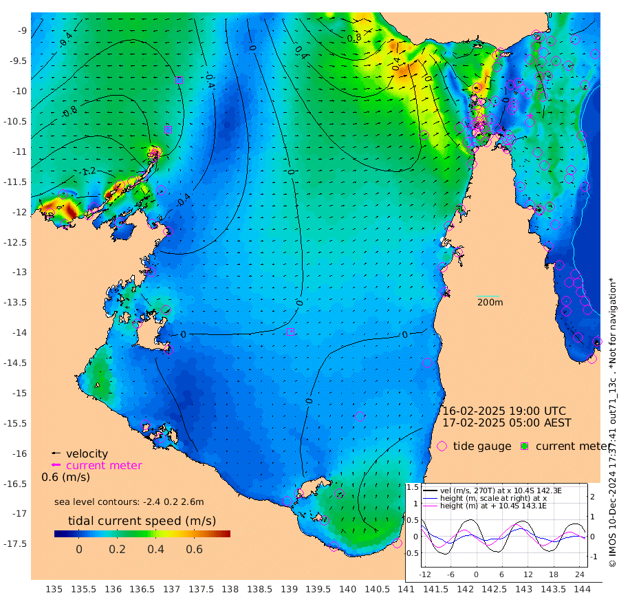 8cm/s -53T +3cm/s rms + 7cm/s -42T. ARA-GOC87 57m 11cm/s 57T +3cm/s rms + 2cm/s -2T. ARA-GOC87 60m 8cm/s -87T +2cm/s rms + 3cm/s 61T. ARA-GOC87 47m -50cm Daru -43cm Bobo Island -27cm Meer Island Barge -46cm Bramble Cay -51cm Unnamed Cay -48cm Pearce Cay -43cm Stephens Island -54cm Merrie England Shoals -57cm Mutacomal Reef -32cm Darnley Island Barge -36cm East Cay -34cm Yorke Island Barge -50cm Rennel Island -32cm Aureed Island -44cm Dungeness Reef -29cm Zagai Island -41cm Yam Island -43cm Dauan Island -23cm Saibai Island -50cm Phipi Reef -41cm Warrior Reef - West -28cm Mabuiag Island Barge -43cm Half Way Island -40cm Coconut Island -42cm Dugong Islet -41cm Poll Island -41cm Kirkcaldie Reef -27cm Suarji Island -28cm Sue Islet -65cm Hawkesbury Island -34cm Alert Patches -34cm Twin Island -52cm Badu Island -32cm St Pauls (Moa Island) -54cm Kubin (Moa Island) -35cm Ince Point -34cm Thursday Island -35cm Nardana Patches -45cm Turtle Head -54cm Round Island -48cm Goods Island -31cm Booby Island -41cm White Rocks Area 29cm Carpentaria -30cm Papou Point -34cm Bampfield Head -28cm Crab Island -35cm Red Wallis Island -54cm Packe Island -40cm Harrington Reef -54cm Herald Camp -3cm Sharp Point -39cm Red Island Point -35cm Possession Island -34cm Alpha Rock -39cm Frederick Point -53cm Wyborn Reef Light -52cm Tetley Island -29cm Triangle Reef -51cm Turtle Head Island -27cm Maclennan Cay -26cm Raine Island -41cm Mcsweeny Reef -40cm Collette Reef -31cm Shadwell Reef -44cm Hannibal Island -52cm Round Point -6cm Vrilya Point -38cm Cape Grenville -38cm Hicks Island -34cm Sir Charles Hardy Island -11cm Harvey Island -34cm Kay Reef -29cm Rocky Island -29cm Chapman Island -23cm Ham Reef -25cm Jubilee Reef -25cm Night Island -24cm Unnamed Reef No. 3 -30cm Morris Island -22cm 1st 3 Mile Opening -23cm Creech Reef -33cm Fife Island -32cm Eden Reef -29cm Stanley Island -37cm Normanby River -159cm Yabooma Island -173cm Hutchison River -145cm Elcho Island -146cm North West Crocodile Island -73cm Cape Wessel -136cm Stevens Island -59cm Guluwuru Island -122cm Hopeful Bay -94cm Auster Point -99cm Two Island Bay -141cm Cadell Strait -45cm Mallison Island -63cm Melville Bay (Gove Harbour) -64cm Truant Island -32cm Cape Arnhem -11cm Cape Grey -15cm Hawk Island 18cm Milner Bay (Groote Eylandt) 15cm Cape Beatrice 52cm West Island 56cm Centre Island 10cm Mornington Island 13cm West Wellesley Islands -4cm Bountiful Island -24cm Albert River Mouth -8cm Sweers Island -30cm Karumba -15cm Nassau River Offshore -19cm Christmas Creek -18cm Archer River -8cm Boyd Point -22cm Weipa (Humbug Point) -5cm Pennefather River -11cm Cullen Point