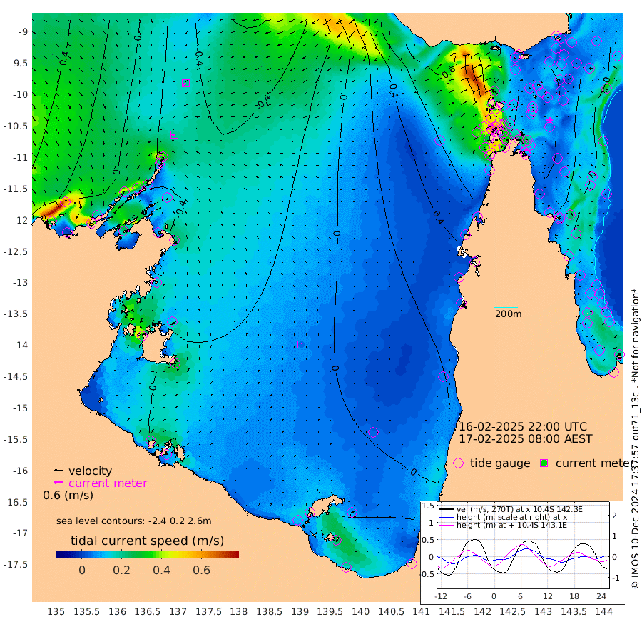 19cm/s -103T +3cm/s rms + 7cm/s -42T. ARA-GOC87 57m 4cm/s 26T +3cm/s rms + 2cm/s -2T. ARA-GOC87 60m 20cm/s -124T +2cm/s rms + 3cm/s 61T. ARA-GOC87 47m -39cm Daru -39cm Bobo Island 4cm Meer Island Barge -8cm Bramble Cay -15cm Unnamed Cay -24cm Pearce Cay -13cm Stephens Island -13cm Merrie England Shoals -29cm Mutacomal Reef -13cm Darnley Island Barge 1cm East Cay -24cm Yorke Island Barge -19cm Rennel Island -29cm Aureed Island -25cm Dungeness Reef -51cm Zagai Island -38cm Yam Island -52cm Dauan Island -55cm Saibai Island -54cm Phipi Reef -60cm Warrior Reef - West -11cm Mabuiag Island Barge -14cm Half Way Island -33cm Coconut Island -15cm Dugong Islet -30cm Poll Island -22cm Kirkcaldie Reef -21cm Suarji Island -32cm Sue Islet 61cm Hawkesbury Island -7cm Alert Patches -15cm Twin Island 39cm Badu Island -21cm St Pauls (Moa Island) 34cm Kubin (Moa Island) 4cm Ince Point 20cm Thursday Island 15cm Nardana Patches 36cm Turtle Head 42cm Round Island 72cm Goods Island 96cm Booby Island 94cm White Rocks Area 97cm Carpentaria -14cm Papou Point 94cm Bampfield Head 70cm Crab Island 82cm Red Wallis Island 45cm Packe Island -21cm Harrington Reef 64cm Herald Camp -15cm Sharp Point 26cm Red Island Point 9cm Possession Island -20cm Alpha Rock -23cm Frederick Point -33cm Wyborn Reef Light -36cm Tetley Island -6cm Triangle Reef -15cm Turtle Head Island 9cm Maclennan Cay 14cm Raine Island -16cm Mcsweeny Reef -14cm Collette Reef 0cm Shadwell Reef -13cm Hannibal Island -8cm Round Point 75cm Vrilya Point 3cm Cape Grenville 2cm Hicks Island 6cm Sir Charles Hardy Island 0cm Harvey Island 11cm Kay Reef 10cm Rocky Island 9cm Chapman Island 12cm Ham Reef 12cm Jubilee Reef 7cm Night Island 12cm Unnamed Reef No. 3 14cm Morris Island 25cm 1st 3 Mile Opening 16cm Creech Reef -2cm Fife Island 19cm Eden Reef 18cm Stanley Island 16cm Normanby River 9cm Yabooma Island -5cm Hutchison River 1cm Elcho Island 1cm North West Crocodile Island -29cm Cape Wessel -26cm Stevens Island -56cm Guluwuru Island -20cm Hopeful Bay -18cm Auster Point -23cm Two Island Bay -54cm Cadell Strait -188cm Mallison Island -49cm Melville Bay (Gove Harbour) -51cm Truant Island -42cm Cape Arnhem -23cm Cape Grey -31cm Hawk Island -9cm Milner Bay (Groote Eylandt) -6cm Cape Beatrice 10cm West Island 10cm Centre Island -32cm Mornington Island -19cm West Wellesley Islands -21cm Bountiful Island -38cm Albert River Mouth -46cm Sweers Island -47cm Karumba -23cm Nassau River Offshore -8cm Christmas Creek 23cm Archer River 36cm Boyd Point 44cm Weipa (Humbug Point) 42cm Pennefather River 60cm Cullen Point