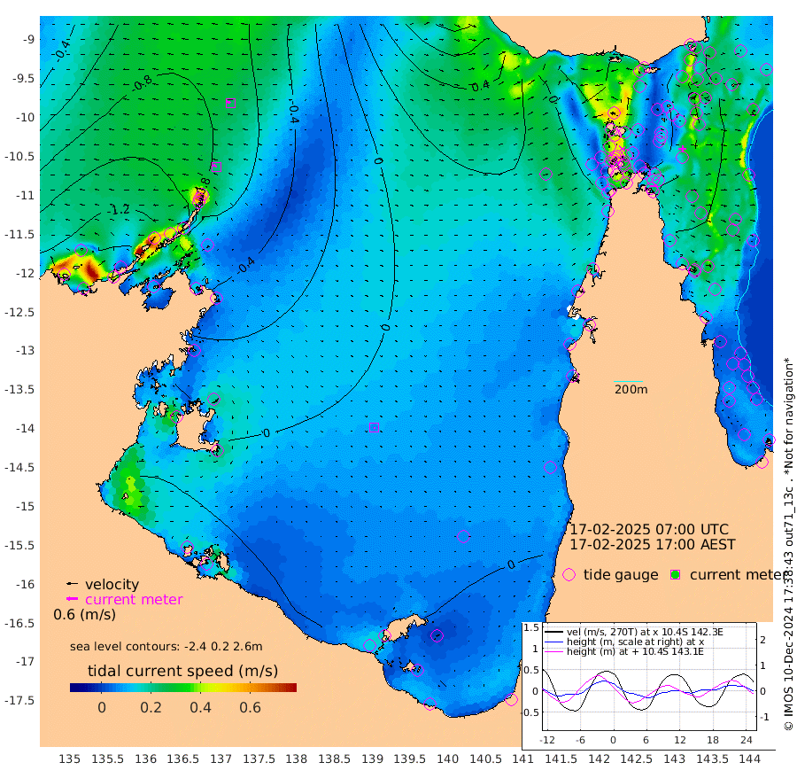 22cm/s -61T +3cm/s rms + 7cm/s -42T. ARA-GOC87 57m 7cm/s 160T +3cm/s rms + 2cm/s -2T. ARA-GOC87 60m 24cm/s -71T +2cm/s rms + 3cm/s 61T. ARA-GOC87 47m -34cm Daru -35cm Bobo Island -30cm Meer Island Barge -41cm Bramble Cay -43cm Unnamed Cay -44cm Pearce Cay -38cm Stephens Island -44cm Merrie England Shoals -37cm Mutacomal Reef -31cm Darnley Island Barge -32cm East Cay -30cm Yorke Island Barge -37cm Rennel Island -29cm Aureed Island -34cm Dungeness Reef -14cm Zagai Island -11cm Yam Island -6cm Dauan Island 4cm Saibai Island -21cm Phipi Reef -10cm Warrior Reef - West -16cm Mabuiag Island Barge -32cm Half Way Island -33cm Coconut Island -29cm Dugong Islet -25cm Poll Island -23cm Kirkcaldie Reef -26cm Suarji Island -18cm Sue Islet -35cm Hawkesbury Island -30cm Alert Patches -22cm Twin Island -46cm Badu Island -19cm St Pauls (Moa Island) -26cm Kubin (Moa Island) -22cm Ince Point -23cm Thursday Island -23cm Nardana Patches -32cm Turtle Head -27cm Round Island -39cm Goods Island -31cm Booby Island -41cm White Rocks Area 10cm Carpentaria -18cm Papou Point -34cm Bampfield Head -18cm Crab Island -19cm Red Wallis Island -20cm Packe Island -34cm Harrington Reef -6cm Herald Camp 5cm Sharp Point -24cm Red Island Point -24cm Possession Island -15cm Alpha Rock -27cm Frederick Point -40cm Wyborn Reef Light -35cm Tetley Island -24cm Triangle Reef -52cm Turtle Head Island -25cm Maclennan Cay -30cm Raine Island -38cm Mcsweeny Reef -36cm Collette Reef -30cm Shadwell Reef -41cm Hannibal Island -44cm Round Point -5cm Vrilya Point -32cm Cape Grenville -33cm Hicks Island -26cm Sir Charles Hardy Island -8cm Harvey Island -34cm Kay Reef -31cm Rocky Island -31cm Chapman Island -23cm Ham Reef -29cm Jubilee Reef -23cm Night Island -24cm Unnamed Reef No. 3 -33cm Morris Island -35cm 1st 3 Mile Opening -28cm Creech Reef -27cm Fife Island -37cm Eden Reef -31cm Stanley Island -34cm Normanby River -155cm Yabooma Island -181cm Hutchison River -150cm Elcho Island -142cm North West Crocodile Island -83cm Cape Wessel -137cm Stevens Island -76cm Guluwuru Island -119cm Hopeful Bay -107cm Auster Point -93cm Two Island Bay -137cm Cadell Strait -11cm Mallison Island -80cm Melville Bay (Gove Harbour) -81cm Truant Island -48cm Cape Arnhem -42cm Cape Grey -24cm Hawk Island -9cm Milner Bay (Groote Eylandt) 0cm Cape Beatrice 29cm West Island 34cm Centre Island 26cm Mornington Island 23cm West Wellesley Islands -4cm Bountiful Island -6cm Albert River Mouth -17cm Sweers Island 3cm Karumba 20cm Nassau River Offshore 19cm Christmas Creek -1cm Archer River 4cm Boyd Point -7cm Weipa (Humbug Point) -5cm Pennefather River 8cm Cullen Point