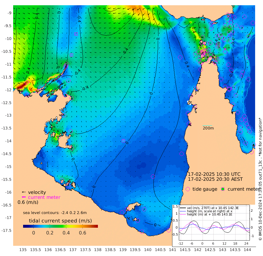 14cm/s -102T +3cm/s rms + 7cm/s -42T. ARA-GOC87 57m 11cm/s -27T +3cm/s rms + 2cm/s -2T. ARA-GOC87 60m 11cm/s -119T +2cm/s rms + 3cm/s 61T. ARA-GOC87 47m -51cm Daru -53cm Bobo Island -19cm Meer Island Barge -27cm Bramble Cay -38cm Unnamed Cay -40cm Pearce Cay -33cm Stephens Island -30cm Merrie England Shoals -45cm Mutacomal Reef -37cm Darnley Island Barge -18cm East Cay -46cm Yorke Island Barge -38cm Rennel Island -51cm Aureed Island -43cm Dungeness Reef -70cm Zagai Island -53cm Yam Island -66cm Dauan Island -77cm Saibai Island -48cm Phipi Reef -72cm Warrior Reef - West -39cm Mabuiag Island Barge -31cm Half Way Island -52cm Coconut Island -38cm Dugong Islet -48cm Poll Island -36cm Kirkcaldie Reef -56cm Suarji Island -56cm Sue Islet 37cm Hawkesbury Island -35cm Alert Patches -39cm Twin Island 7cm Badu Island -45cm St Pauls (Moa Island) 10cm Kubin (Moa Island) -24cm Ince Point -10cm Thursday Island -15cm Nardana Patches 4cm Turtle Head 23cm Round Island 31cm Goods Island 49cm Booby Island 44cm White Rocks Area 28cm Carpentaria -34cm Papou Point 37cm Bampfield Head 52cm Crab Island 44cm Red Wallis Island 24cm Packe Island -43cm Harrington Reef 47cm Herald Camp -15cm Sharp Point 15cm Red Island Point -8cm Possession Island -46cm Alpha Rock -45cm Frederick Point -53cm Wyborn Reef Light -55cm Tetley Island -27cm Triangle Reef -34cm Turtle Head Island -18cm Maclennan Cay -8cm Raine Island -39cm Mcsweeny Reef -35cm Collette Reef -21cm Shadwell Reef -35cm Hannibal Island -23cm Round Point 57cm Vrilya Point -18cm Cape Grenville -17cm Hicks Island -29cm Sir Charles Hardy Island -5cm Harvey Island -15cm Kay Reef -14cm Rocky Island -14cm Chapman Island -14cm Ham Reef -15cm Jubilee Reef -9cm Night Island -13cm Unnamed Reef No. 3 -12cm Morris Island -9cm 1st 3 Mile Opening -11cm Creech Reef -17cm Fife Island -10cm Eden Reef -6cm Stanley Island -7cm Normanby River 25cm Yabooma Island 3cm Hutchison River 12cm Elcho Island 22cm North West Crocodile Island -41cm Cape Wessel -8cm Stevens Island -80cm Guluwuru Island 1cm Hopeful Bay -17cm Auster Point -10cm Two Island Bay -26cm Cadell Strait -185cm Mallison Island -61cm Melville Bay (Gove Harbour) -67cm Truant Island -54cm Cape Arnhem -36cm Cape Grey -20cm Hawk Island -1cm Milner Bay (Groote Eylandt) 4cm Cape Beatrice 19cm West Island 26cm Centre Island 20cm Mornington Island 16cm West Wellesley Islands 16cm Bountiful Island 34cm Albert River Mouth 36cm Sweers Island 49cm Karumba 27cm Nassau River Offshore 21cm Christmas Creek 29cm Archer River 18cm Boyd Point 29cm Weipa (Humbug Point) 44cm Pennefather River 44cm Cullen Point