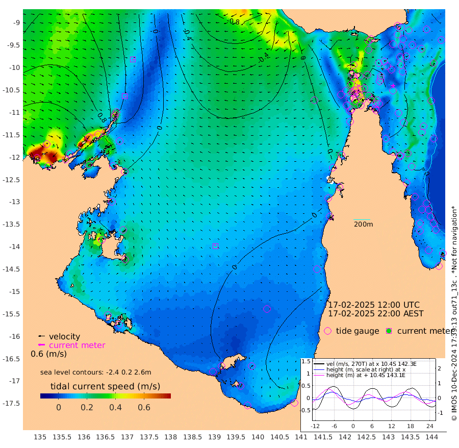 10cm/s 141T +3cm/s rms + 7cm/s -42T. ARA-GOC87 57m 14cm/s -31T +3cm/s rms + 2cm/s -2T. ARA-GOC87 60m 13cm/s 118T +2cm/s rms + 3cm/s 61T. ARA-GOC87 47m -14cm Daru -16cm Bobo Island -3cm Meer Island Barge 2cm Bramble Cay -4cm Unnamed Cay -4cm Pearce Cay -5cm Stephens Island 2cm Merrie England Shoals -9cm Mutacomal Reef -13cm Darnley Island Barge 0cm East Cay -18cm Yorke Island Barge -7cm Rennel Island -22cm Aureed Island -11cm Dungeness Reef -38cm Zagai Island -28cm Yam Island -36cm Dauan Island -53cm Saibai Island -11cm Phipi Reef -39cm Warrior Reef - West -20cm Mabuiag Island Barge -5cm Half Way Island -18cm Coconut Island -13cm Dugong Islet -19cm Poll Island -12cm Kirkcaldie Reef -29cm Suarji Island -30cm Sue Islet 39cm Hawkesbury Island -12cm Alert Patches -17cm Twin Island 24cm Badu Island -22cm St Pauls (Moa Island) 17cm Kubin (Moa Island) -8cm Ince Point 0cm Thursday Island -3cm Nardana Patches 13cm Turtle Head 28cm Round Island 31cm Goods Island 33cm Booby Island 35cm White Rocks Area -13cm Carpentaria -15cm Papou Point 26cm Bampfield Head 37cm Crab Island 27cm Red Wallis Island 22cm Packe Island -14cm Harrington Reef 29cm Herald Camp -12cm Sharp Point 20cm Red Island Point 5cm Possession Island -26cm Alpha Rock -17cm Frederick Point -14cm Wyborn Reef Light -17cm Tetley Island -9cm Triangle Reef 4cm Turtle Head Island -5cm Maclennan Cay 5cm Raine Island -9cm Mcsweeny Reef -7cm Collette Reef -2cm Shadwell Reef -4cm Hannibal Island 6cm Round Point 31cm Vrilya Point 0cm Cape Grenville 3cm Hicks Island -15cm Sir Charles Hardy Island 0cm Harvey Island 1cm Kay Reef 1cm Rocky Island 0cm Chapman Island -5cm Ham Reef -2cm Jubilee Reef 1cm Night Island -3cm Unnamed Reef No. 3 3cm Morris Island 3cm 1st 3 Mile Opening 0cm Creech Reef -1cm Fife Island 4cm Eden Reef 4cm Stanley Island 7cm Normanby River 125cm Yabooma Island 125cm Hutchison River 112cm Elcho Island 115cm North West Crocodile Island 28cm Cape Wessel 94cm Stevens Island -3cm Guluwuru Island 88cm Hopeful Bay 63cm Auster Point 64cm Two Island Bay 87cm Cadell Strait -95cm Mallison Island 14cm Melville Bay (Gove Harbour) 10cm Truant Island -4cm Cape Arnhem 1cm Cape Grey 7cm Hawk Island 6cm Milner Bay (Groote Eylandt) 4cm Cape Beatrice -9cm West Island -4cm Centre Island 9cm Mornington Island 3cm West Wellesley Islands 20cm Bountiful Island 45cm Albert River Mouth 55cm Sweers Island 56cm Karumba 18cm Nassau River Offshore 9cm Christmas Creek 18cm Archer River 2cm Boyd Point 16cm Weipa (Humbug Point) 29cm Pennefather River 16cm Cullen Point