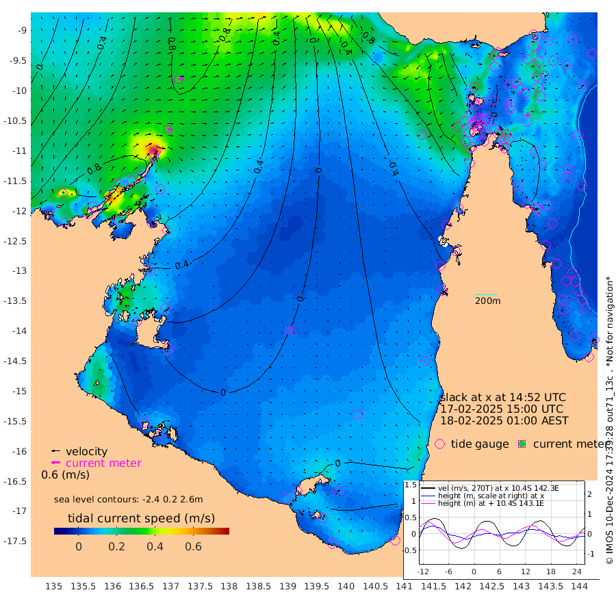 35cm/s 99T +3cm/s rms + 7cm/s -42T. ARA-GOC87 57m 6cm/s -9T +3cm/s rms + 2cm/s -2T. ARA-GOC87 60m 35cm/s 86T +2cm/s rms + 3cm/s 61T. ARA-GOC87 47m 35cm Daru 37cm Bobo Island 7cm Meer Island Barge 20cm Bramble Cay 23cm Unnamed Cay 31cm Pearce Cay 19cm Stephens Island 23cm Merrie England Shoals 28cm Mutacomal Reef 18cm Darnley Island Barge 8cm East Cay 23cm Yorke Island Barge 20cm Rennel Island 25cm Aureed Island 23cm Dungeness Reef 33cm Zagai Island 16cm Yam Island 28cm Dauan Island 26cm Saibai Island 42cm Phipi Reef 34cm Warrior Reef - West 7cm Mabuiag Island Barge 14cm Half Way Island 31cm Coconut Island 10cm Dugong Islet 21cm Poll Island 13cm Kirkcaldie Reef 15cm Suarji Island 21cm Sue Islet -39cm Hawkesbury Island 8cm Alert Patches 8cm Twin Island -11cm Badu Island 11cm St Pauls (Moa Island) -26cm Kubin (Moa Island) -5cm Ince Point -15cm Thursday Island -12cm Nardana Patches -23cm Turtle Head -28cm Round Island -44cm Goods Island -65cm Booby Island -61cm White Rocks Area -86cm Carpentaria 7cm Papou Point -59cm Bampfield Head -49cm Crab Island -65cm Red Wallis Island -40cm Packe Island 19cm Harrington Reef -63cm Herald Camp 4cm Sharp Point -17cm Red Island Point -3cm Possession Island 8cm Alpha Rock 17cm Frederick Point 35cm Wyborn Reef Light 33cm Tetley Island 10cm Triangle Reef 31cm Turtle Head Island -2cm Maclennan Cay 2cm Raine Island 22cm Mcsweeny Reef 22cm Collette Reef 11cm Shadwell Reef 24cm Hannibal Island 21cm Round Point -57cm Vrilya Point 6cm Cape Grenville 8cm Hicks Island -3cm Sir Charles Hardy Island 1cm Harvey Island 3cm Kay Reef 3cm Rocky Island 5cm Chapman Island -2cm Ham Reef 1cm Jubilee Reef 1cm Night Island -2cm Unnamed Reef No. 3 2cm Morris Island -3cm 1st 3 Mile Opening -3cm Creech Reef 9cm Fife Island 0cm Eden Reef -4cm Stanley Island -2cm Normanby River 95cm Yabooma Island 124cm Hutchison River 101cm Elcho Island 93cm North West Crocodile Island 80cm Cape Wessel 115cm Stevens Island 100cm Guluwuru Island 100cm Hopeful Bay 91cm Auster Point 83cm Two Island Bay 138cm Cadell Strait 171cm Mallison Island 97cm Melville Bay (Gove Harbour) 100cm Truant Island 70cm Cape Arnhem 52cm Cape Grey 44cm Hawk Island 20cm Milner Bay (Groote Eylandt) 7cm Cape Beatrice -26cm West Island -26cm Centre Island 3cm Mornington Island -8cm West Wellesley Islands 12cm Bountiful Island 27cm Albert River Mouth 51cm Sweers Island 29cm Karumba -5cm Nassau River Offshore -18cm Christmas Creek -24cm Archer River -38cm Boyd Point -38cm Weipa (Humbug Point) -28cm Pennefather River -58cm Cullen Point