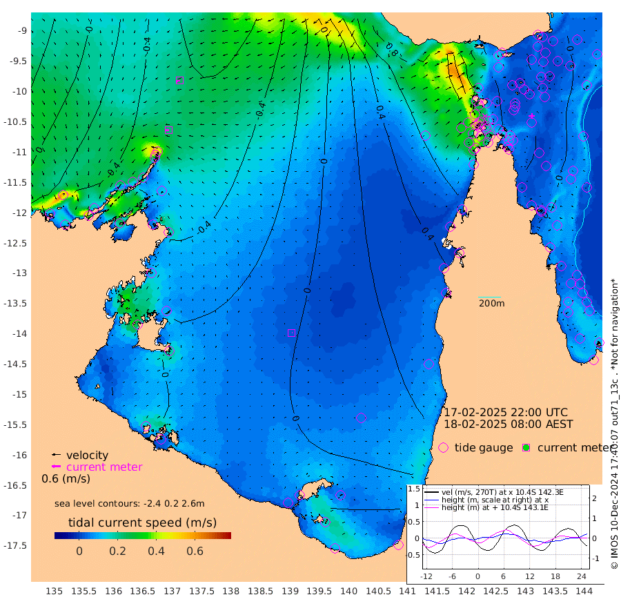 23cm/s -97T +3cm/s rms + 7cm/s -42T. ARA-GOC87 57m 3cm/s 100T +3cm/s rms + 2cm/s -2T. ARA-GOC87 60m 24cm/s -115T +2cm/s rms + 3cm/s 61T. ARA-GOC87 47m -23cm Daru -21cm Bobo Island 11cm Meer Island Barge 1cm Bramble Cay -4cm Unnamed Cay -6cm Pearce Cay 1cm Stephens Island -3cm Merrie England Shoals -16cm Mutacomal Reef 0cm Darnley Island Barge 10cm East Cay -8cm Yorke Island Barge -4cm Rennel Island -9cm Aureed Island -8cm Dungeness Reef -34cm Zagai Island -23cm Yam Island -41cm Dauan Island -41cm Saibai Island -38cm Phipi Reef -41cm Warrior Reef - West -3cm Mabuiag Island Barge 1cm Half Way Island -15cm Coconut Island 2cm Dugong Islet -13cm Poll Island -5cm Kirkcaldie Reef -1cm Suarji Island -15cm Sue Islet 57cm Hawkesbury Island 9cm Alert Patches 2cm Twin Island 38cm Badu Island -4cm St Pauls (Moa Island) 35cm Kubin (Moa Island) 15cm Ince Point 29cm Thursday Island 24cm Nardana Patches 41cm Turtle Head 40cm Round Island 69cm Goods Island 91cm Booby Island 89cm White Rocks Area 97cm Carpentaria 0cm Papou Point 86cm Bampfield Head 66cm Crab Island 79cm Red Wallis Island 47cm Packe Island 0cm Harrington Reef 61cm Herald Camp -9cm Sharp Point 35cm Red Island Point 19cm Possession Island -7cm Alpha Rock -5cm Frederick Point -20cm Wyborn Reef Light -22cm Tetley Island 3cm Triangle Reef -1cm Turtle Head Island 18cm Maclennan Cay 18cm Raine Island -3cm Mcsweeny Reef -3cm Collette Reef 6cm Shadwell Reef -2cm Hannibal Island 1cm Round Point 73cm Vrilya Point 12cm Cape Grenville 10cm Hicks Island 15cm Sir Charles Hardy Island 3cm Harvey Island 17cm Kay Reef 16cm Rocky Island 15cm Chapman Island 18cm Ham Reef 17cm Jubilee Reef 13cm Night Island 19cm Unnamed Reef No. 3 19cm Morris Island 28cm 1st 3 Mile Opening 22cm Creech Reef 6cm Fife Island 24cm Eden Reef 23cm Stanley Island 22cm Normanby River -40cm Yabooma Island -57cm Hutchison River -47cm Elcho Island -44cm North West Crocodile Island -55cm Cape Wessel -69cm Stevens Island -77cm Guluwuru Island -59cm Hopeful Bay -49cm Auster Point -57cm Two Island Bay -92cm Cadell Strait -207cm Mallison Island -70cm Melville Bay (Gove Harbour) -73cm Truant Island -54cm Cape Arnhem -29cm Cape Grey -35cm Hawk Island -11cm Milner Bay (Groote Eylandt) -5cm Cape Beatrice 20cm West Island 20cm Centre Island -17cm Mornington Island -4cm West Wellesley Islands -8cm Bountiful Island -36cm Albert River Mouth -39cm Sweers Island -38cm Karumba -8cm Nassau River Offshore 6cm Christmas Creek 30cm Archer River 41cm Boyd Point 46cm Weipa (Humbug Point) 43cm Pennefather River 59cm Cullen Point