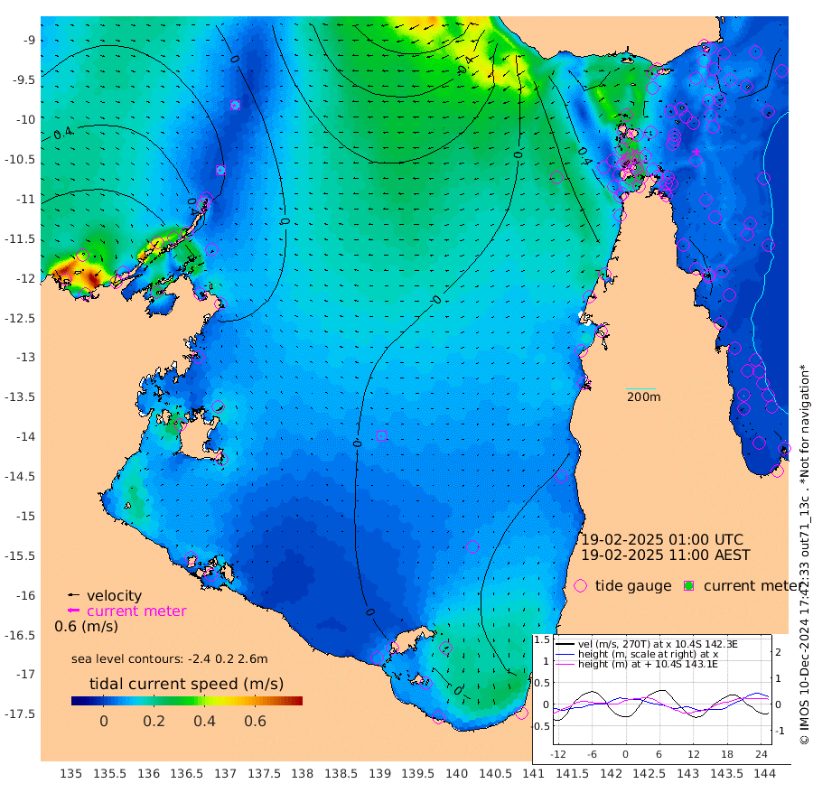 13cm/s -111T +3cm/s rms + 7cm/s -42T. ARA-GOC87 57m 9cm/s -139T +3cm/s rms + 2cm/s -2T. ARA-GOC87 60m 12cm/s -120T +2cm/s rms + 3cm/s 61T. ARA-GOC87 47m 45cm Daru 37cm Bobo Island 24cm Meer Island Barge 32cm Bramble Cay 43cm Unnamed Cay 46cm Pearce Cay 40cm Stephens Island 37cm Merrie England Shoals 44cm Mutacomal Reef 30cm Darnley Island Barge 27cm East Cay 35cm Yorke Island Barge 50cm Rennel Island 38cm Aureed Island 57cm Dungeness Reef 44cm Zagai Island 56cm Yam Island 65cm Dauan Island 43cm Saibai Island 66cm Phipi Reef 53cm Warrior Reef - West 61cm Mabuiag Island Barge 46cm Half Way Island 45cm Coconut Island 54cm Dugong Islet 54cm Poll Island 56cm Kirkcaldie Reef 69cm Suarji Island 44cm Sue Islet 95cm Hawkesbury Island 68cm Alert Patches 62cm Twin Island 91cm Badu Island 66cm St Pauls (Moa Island) 85cm Kubin (Moa Island) 70cm Ince Point 73cm Thursday Island 73cm Nardana Patches 86cm Turtle Head 78cm Round Island 95cm Goods Island 88cm Booby Island 96cm White Rocks Area 37cm Carpentaria 58cm Papou Point 84cm Bampfield Head 62cm Crab Island 79cm Red Wallis Island 79cm Packe Island 53cm Harrington Reef 82cm Herald Camp 9cm Sharp Point 70cm Red Island Point 64cm Possession Island 48cm Alpha Rock 56cm Frederick Point 45cm Wyborn Reef Light 45cm Tetley Island 24cm Triangle Reef 57cm Turtle Head Island 31cm Maclennan Cay 23cm Raine Island 39cm Mcsweeny Reef 31cm Collette Reef 23cm Shadwell Reef 32cm Hannibal Island 33cm Round Point 41cm Vrilya Point 27cm Cape Grenville 32cm Hicks Island 33cm Sir Charles Hardy Island 9cm Harvey Island 23cm Kay Reef 24cm Rocky Island 19cm Chapman Island 17cm Ham Reef 22cm Jubilee Reef 18cm Night Island 17cm Unnamed Reef No. 3 26cm Morris Island 31cm 1st 3 Mile Opening 24cm Creech Reef 20cm Fife Island 24cm Eden Reef 23cm Stanley Island 27cm Normanby River 97cm Yabooma Island 109cm Hutchison River 85cm Elcho Island 87cm North West Crocodile Island 24cm Cape Wessel 56cm Stevens Island 12cm Guluwuru Island 46cm Hopeful Bay 42cm Auster Point 38cm Two Island Bay 57cm Cadell Strait -136cm Mallison Island 18cm Melville Bay (Gove Harbour) 15cm Truant Island 3cm Cape Arnhem 7cm Cape Grey -5cm Hawk Island -14cm Milner Bay (Groote Eylandt) -7cm Cape Beatrice -19cm West Island -28cm Centre Island -10cm Mornington Island -2cm West Wellesley Islands 23cm Bountiful Island 16cm Albert River Mouth -2cm Sweers Island 12cm Karumba 8cm Nassau River Offshore 18cm Christmas Creek 26cm Archer River 32cm Boyd Point 45cm Weipa (Humbug Point) 19cm Pennefather River 37cm Cullen Point