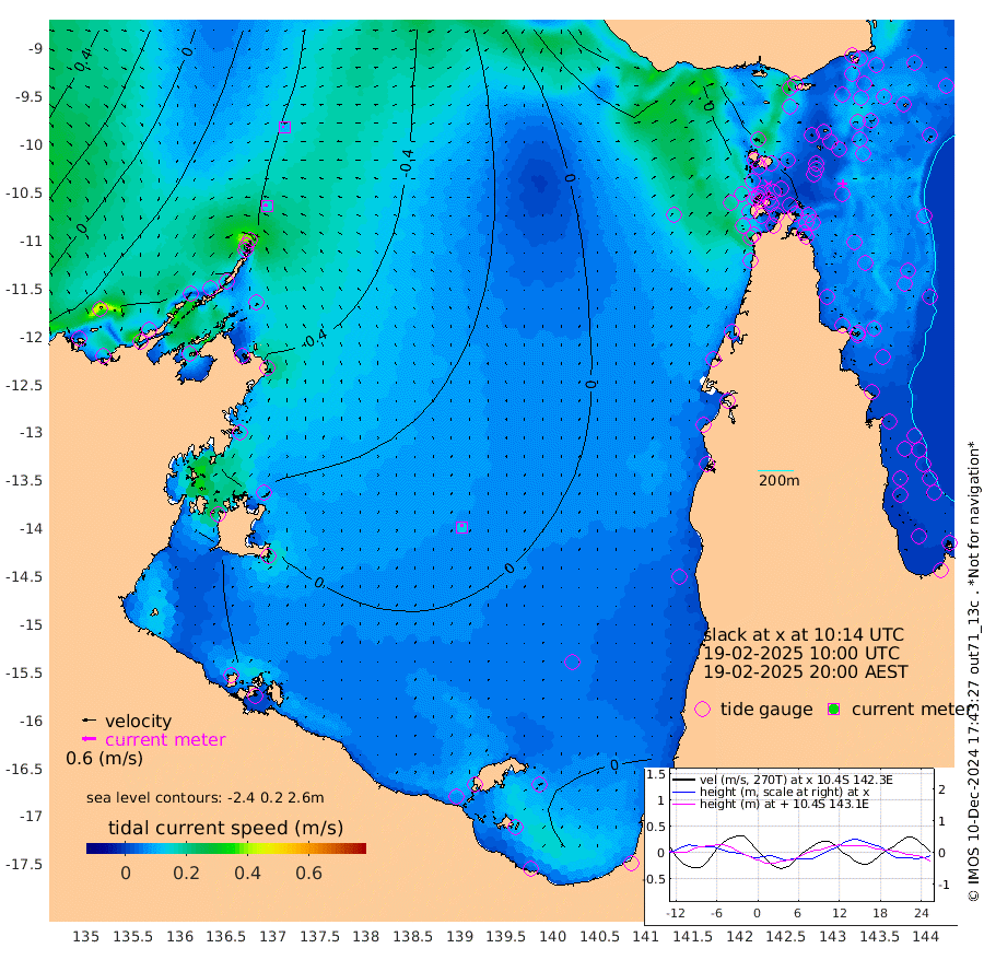 15cm/s -70T +3cm/s rms + 7cm/s -42T. ARA-GOC87 57m 14cm/s -2T +3cm/s rms + 2cm/s -2T. ARA-GOC87 60m 11cm/s -87T +2cm/s rms + 3cm/s 61T. ARA-GOC87 47m -51cm Daru -46cm Bobo Island -26cm Meer Island Barge -31cm Bramble Cay -40cm Unnamed Cay -40cm Pearce Cay -33cm Stephens Island -32cm Merrie England Shoals -41cm Mutacomal Reef -36cm Darnley Island Barge -23cm East Cay -43cm Yorke Island Barge -38cm Rennel Island -41cm Aureed Island -47cm Dungeness Reef -64cm Zagai Island -52cm Yam Island -86cm Dauan Island -83cm Saibai Island -83cm Phipi Reef -72cm Warrior Reef - West -58cm Mabuiag Island Barge -29cm Half Way Island -47cm Coconut Island -35cm Dugong Islet -45cm Poll Island -40cm Kirkcaldie Reef -55cm Suarji Island -54cm Sue Islet -27cm Hawkesbury Island -49cm Alert Patches -43cm Twin Island -49cm Badu Island -52cm St Pauls (Moa Island) -31cm Kubin (Moa Island) -41cm Ince Point -34cm Thursday Island -38cm Nardana Patches -35cm Turtle Head -27cm Round Island -25cm Goods Island -9cm Booby Island -6cm White Rocks Area 12cm Carpentaria -41cm Papou Point -19cm Bampfield Head 0cm Crab Island 0cm Red Wallis Island -14cm Packe Island -35cm Harrington Reef -10cm Herald Camp -12cm Sharp Point -25cm Red Island Point -35cm Possession Island -39cm Alpha Rock -43cm Frederick Point -48cm Wyborn Reef Light -49cm Tetley Island -28cm Triangle Reef -45cm Turtle Head Island -21cm Maclennan Cay -20cm Raine Island -38cm Mcsweeny Reef -36cm Collette Reef -29cm Shadwell Reef -36cm Hannibal Island -28cm Round Point 13cm Vrilya Point -20cm Cape Grenville -25cm Hicks Island -31cm Sir Charles Hardy Island -6cm Harvey Island -20cm Kay Reef -23cm Rocky Island -21cm Chapman Island -19cm Ham Reef -23cm Jubilee Reef -14cm Night Island -16cm Unnamed Reef No. 3 -21cm Morris Island -23cm 1st 3 Mile Opening -19cm Creech Reef -19cm Fife Island -20cm Eden Reef -15cm Stanley Island -13cm Normanby River -44cm Yabooma Island -72cm Hutchison River -49cm Elcho Island -41cm North West Crocodile Island -45cm Cape Wessel -52cm Stevens Island -83cm Guluwuru Island -43cm Hopeful Bay -47cm Auster Point -40cm Two Island Bay -77cm Cadell Strait -127cm Mallison Island -71cm Melville Bay (Gove Harbour) -73cm Truant Island -53cm Cape Arnhem -39cm Cape Grey -21cm Hawk Island 10cm Milner Bay (Groote Eylandt) 15cm Cape Beatrice 44cm West Island 51cm Centre Island 21cm Mornington Island 24cm West Wellesley Islands 0cm Bountiful Island 18cm Albert River Mouth 15cm Sweers Island 21cm Karumba 13cm Nassau River Offshore 1cm Christmas Creek -5cm Archer River -9cm Boyd Point -10cm Weipa (Humbug Point) 6cm Pennefather River 9cm Cullen Point
