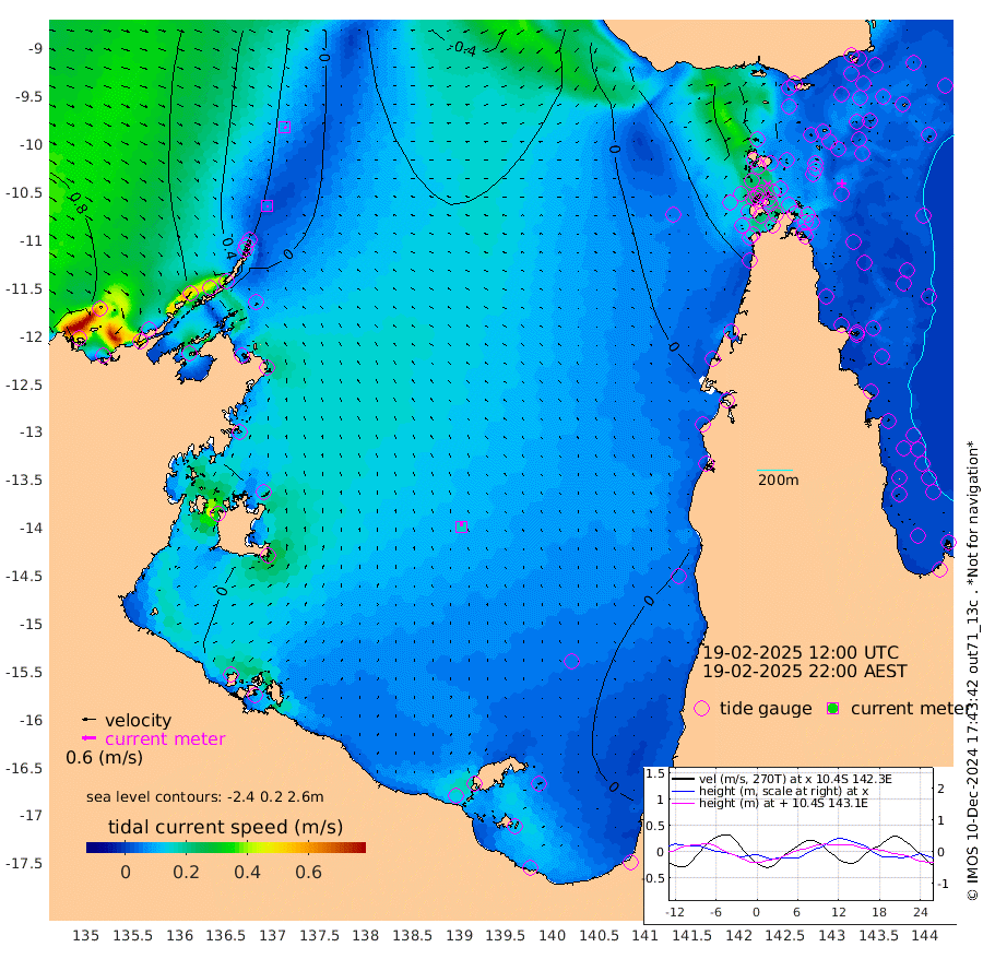 6cm/s 159T +3cm/s rms + 7cm/s -42T. ARA-GOC87 57m 18cm/s -9T +3cm/s rms + 2cm/s -2T. ARA-GOC87 60m 9cm/s 133T +2cm/s rms + 3cm/s 61T. ARA-GOC87 47m -29cm Daru -28cm Bobo Island -21cm Meer Island Barge -22cm Bramble Cay -25cm Unnamed Cay -18cm Pearce Cay -20cm Stephens Island -21cm Merrie England Shoals -26cm Mutacomal Reef -29cm Darnley Island Barge -19cm East Cay -31cm Yorke Island Barge -20cm Rennel Island -28cm Aureed Island -20cm Dungeness Reef -40cm Zagai Island -28cm Yam Island -47cm Dauan Island -63cm Saibai Island -36cm Phipi Reef -45cm Warrior Reef - West -25cm Mabuiag Island Barge -13cm Half Way Island -25cm Coconut Island -18cm Dugong Islet -20cm Poll Island -17cm Kirkcaldie Reef -24cm Suarji Island -36cm Sue Islet 24cm Hawkesbury Island -16cm Alert Patches -14cm Twin Island 7cm Badu Island -17cm St Pauls (Moa Island) 15cm Kubin (Moa Island) -7cm Ince Point 2cm Thursday Island -2cm Nardana Patches 7cm Turtle Head 20cm Round Island 22cm Goods Island 31cm Booby Island 35cm White Rocks Area 11cm Carpentaria -11cm Papou Point 25cm Bampfield Head 33cm Crab Island 31cm Red Wallis Island 23cm Packe Island -15cm Harrington Reef 27cm Herald Camp -10cm Sharp Point 9cm Red Island Point 3cm Possession Island -23cm Alpha Rock -18cm Frederick Point -26cm Wyborn Reef Light -26cm Tetley Island -23cm Triangle Reef -8cm Turtle Head Island -18cm Maclennan Cay -16cm Raine Island -24cm Mcsweeny Reef -27cm Collette Reef -25cm Shadwell Reef -27cm Hannibal Island -17cm Round Point 33cm Vrilya Point -19cm Cape Grenville -17cm Hicks Island -33cm Sir Charles Hardy Island -5cm Harvey Island -23cm Kay Reef -21cm Rocky Island -23cm Chapman Island -24cm Ham Reef -22cm Jubilee Reef -13cm Night Island -22cm Unnamed Reef No. 3 -19cm Morris Island -16cm 1st 3 Mile Opening -19cm Creech Reef -17cm Fife Island -21cm Eden Reef -18cm Stanley Island -14cm Normanby River 84cm Yabooma Island 74cm Hutchison River 72cm Elcho Island 77cm North West Crocodile Island 16cm Cape Wessel 56cm Stevens Island -29cm Guluwuru Island 50cm Hopeful Bay 39cm Auster Point 45cm Two Island Bay 42cm Cadell Strait -150cm Mallison Island -11cm Melville Bay (Gove Harbour) -11cm Truant Island -17cm Cape Arnhem -14cm Cape Grey -5cm Hawk Island 8cm Milner Bay (Groote Eylandt) 5cm Cape Beatrice 7cm West Island 12cm Centre Island -7cm Mornington Island -9cm West Wellesley Islands -15cm Bountiful Island 9cm Albert River Mouth 14cm Sweers Island 15cm Karumba -6cm Nassau River Offshore -13cm Christmas Creek -4cm Archer River -7cm Boyd Point 0cm Weipa (Humbug Point) 20cm Pennefather River 20cm Cullen Point