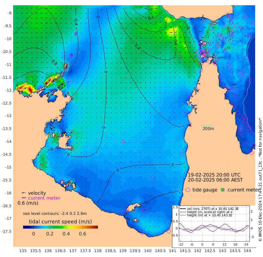 4cm/s -100T +3cm/s rms + 7cm/s -42T. ARA-GOC87 57m 14cm/s 140T +3cm/s rms + 2cm/s -2T. ARA-GOC87 60m 9cm/s -106T +2cm/s rms + 3cm/s 61T. ARA-GOC87 47m 4cm Daru 12cm Bobo Island 27cm Meer Island Barge 23cm Bramble Cay 17cm Unnamed Cay 14cm Pearce Cay 18cm Stephens Island 22cm Merrie England Shoals 11cm Mutacomal Reef 26cm Darnley Island Barge 27cm East Cay 19cm Yorke Island Barge 8cm Rennel Island 18cm Aureed Island 0cm Dungeness Reef -8cm Zagai Island -17cm Yam Island -31cm Dauan Island -9cm Saibai Island -28cm Phipi Reef -16cm Warrior Reef - West -11cm Mabuiag Island Barge 9cm Half Way Island 9cm Coconut Island 6cm Dugong Islet -5cm Poll Island -3cm Kirkcaldie Reef -5cm Suarji Island 7cm Sue Islet -7cm Hawkesbury Island 2cm Alert Patches -3cm Twin Island -13cm Badu Island -12cm St Pauls (Moa Island) -17cm Kubin (Moa Island) -7cm Ince Point -5cm Thursday Island -7cm Nardana Patches -8cm Turtle Head -8cm Round Island -3cm Goods Island 9cm Booby Island 0cm White Rocks Area 48cm Carpentaria -11cm Papou Point 20cm Bampfield Head 3cm Crab Island 5cm Red Wallis Island -6cm Packe Island 9cm Harrington Reef -4cm Herald Camp -2cm Sharp Point -4cm Red Island Point -1cm Possession Island 3cm Alpha Rock 2cm Frederick Point 9cm Wyborn Reef Light 6cm Tetley Island 25cm Triangle Reef 7cm Turtle Head Island 24cm Maclennan Cay 25cm Raine Island 19cm Mcsweeny Reef 25cm Collette Reef 28cm Shadwell Reef 28cm Hannibal Island 24cm Round Point 21cm Vrilya Point 30cm Cape Grenville 22cm Hicks Island 31cm Sir Charles Hardy Island 7cm Harvey Island 37cm Kay Reef 30cm Rocky Island 36cm Chapman Island 36cm Ham Reef 30cm Jubilee Reef 26cm Night Island 37cm Unnamed Reef No. 3 30cm Morris Island 27cm 1st 3 Mile Opening 32cm Creech Reef 25cm Fife Island 37cm Eden Reef 34cm Stanley Island 31cm Normanby River -132cm Yabooma Island -143cm Hutchison River -125cm Elcho Island -128cm North West Crocodile Island -55cm Cape Wessel -105cm Stevens Island -39cm Guluwuru Island -87cm Hopeful Bay -72cm Auster Point -83cm Two Island Bay -114cm Cadell Strait 59cm Mallison Island -44cm Melville Bay (Gove Harbour) -43cm Truant Island -23cm Cape Arnhem -18cm Cape Grey -16cm Hawk Island -16cm Milner Bay (Groote Eylandt) -17cm Cape Beatrice 0cm West Island 5cm Centre Island -18cm Mornington Island -16cm West Wellesley Islands -34cm Bountiful Island -78cm Albert River Mouth -61cm Sweers Island -71cm Karumba -13cm Nassau River Offshore 3cm Christmas Creek 19cm Archer River 23cm Boyd Point 14cm Weipa (Humbug Point) 23cm Pennefather River 19cm Cullen Point