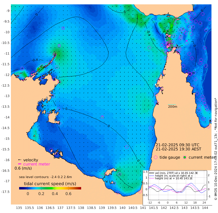 14cm/s -21T +3cm/s rms + 7cm/s -42T. ARA-GOC87 57m 17cm/s 0T +3cm/s rms + 2cm/s -2T. ARA-GOC87 60m 10cm/s -11T +2cm/s rms + 3cm/s 61T. ARA-GOC87 47m -26cm Daru -19cm Bobo Island -14cm Meer Island Barge -7cm Bramble Cay -13cm Unnamed Cay -22cm Pearce Cay -15cm Stephens Island -1cm Merrie England Shoals -10cm Mutacomal Reef -16cm Darnley Island Barge -9cm East Cay -21cm Yorke Island Barge -20cm Rennel Island -21cm Aureed Island -38cm Dungeness Reef -50cm Zagai Island -46cm Yam Island -94cm Dauan Island -73cm Saibai Island -93cm Phipi Reef -60cm Warrior Reef - West -72cm Mabuiag Island Barge -16cm Half Way Island -28cm Coconut Island -23cm Dugong Islet -38cm Poll Island -34cm Kirkcaldie Reef -58cm Suarji Island -37cm Sue Islet -97cm Hawkesbury Island -60cm Alert Patches -51cm Twin Island -101cm Badu Island -63cm St Pauls (Moa Island) -87cm Kubin (Moa Island) -66cm Ince Point -70cm Thursday Island -71cm Nardana Patches -85cm Turtle Head -90cm Round Island -94cm Goods Island -93cm Booby Island -81cm White Rocks Area -53cm Carpentaria -51cm Papou Point -105cm Bampfield Head -72cm Crab Island -77cm Red Wallis Island -78cm Packe Island -21cm Harrington Reef -96cm Herald Camp -10cm Sharp Point -64cm Red Island Point -70cm Possession Island -32cm Alpha Rock -39cm Frederick Point -22cm Wyborn Reef Light -26cm Tetley Island -17cm Triangle Reef -38cm Turtle Head Island -15cm Maclennan Cay -14cm Raine Island -16cm Mcsweeny Reef -12cm Collette Reef -14cm Shadwell Reef -9cm Hannibal Island -7cm Round Point -56cm Vrilya Point -3cm Cape Grenville -14cm Hicks Island -15cm Sir Charles Hardy Island -3cm Harvey Island 1cm Kay Reef -12cm Rocky Island -8cm Chapman Island -8cm Ham Reef -11cm Jubilee Reef -9cm Night Island -4cm Unnamed Reef No. 3 -10cm Morris Island -22cm 1st 3 Mile Opening -12cm Creech Reef -8cm Fife Island -9cm Eden Reef -5cm Stanley Island 1cm Normanby River -59cm Yabooma Island -78cm Hutchison River -55cm Elcho Island -49cm North West Crocodile Island -23cm Cape Wessel -38cm Stevens Island -37cm Guluwuru Island -35cm Hopeful Bay -39cm Auster Point -40cm Two Island Bay -63cm Cadell Strait 30cm Mallison Island -38cm Melville Bay (Gove Harbour) -41cm Truant Island -26cm Cape Arnhem -11cm Cape Grey 0cm Hawk Island 33cm Milner Bay (Groote Eylandt) 36cm Cape Beatrice 63cm West Island 66cm Centre Island 45cm Mornington Island 52cm West Wellesley Islands 33cm Bountiful Island 57cm Albert River Mouth 55cm Sweers Island 46cm Karumba 18cm Nassau River Offshore -9cm Christmas Creek -32cm Archer River -45cm Boyd Point -53cm Weipa (Humbug Point) -39cm Pennefather River -54cm Cullen Point