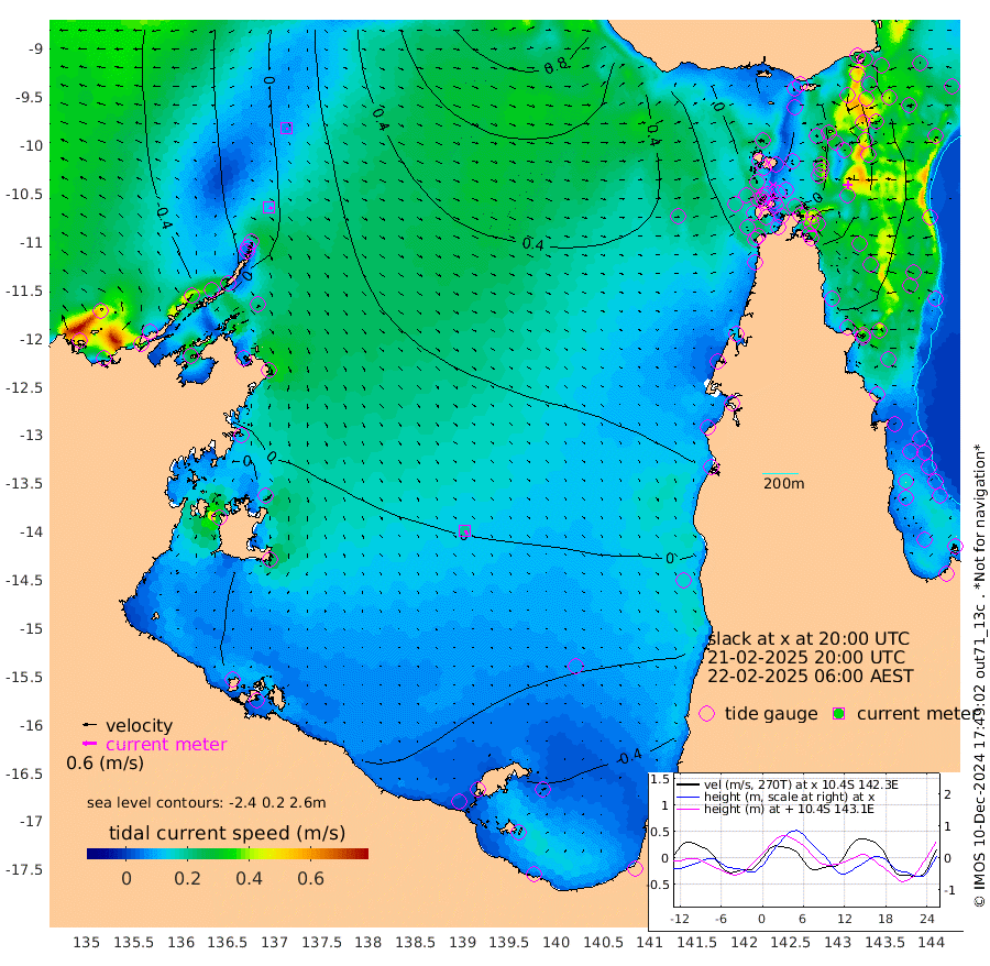 13cm/s 123T +3cm/s rms + 7cm/s -42T. ARA-GOC87 57m 20cm/s 152T +3cm/s rms + 2cm/s -2T. ARA-GOC87 60m 6cm/s 146T +2cm/s rms + 3cm/s 61T. ARA-GOC87 47m 35cm Daru 36cm Bobo Island 58cm Meer Island Barge 61cm Bramble Cay 57cm Unnamed Cay 40cm Pearce Cay 51cm Stephens Island 65cm Merrie England Shoals 47cm Mutacomal Reef 58cm Darnley Island Barge 57cm East Cay 47cm Yorke Island Barge 38cm Rennel Island 36cm Aureed Island 21cm Dungeness Reef 0cm Zagai Island -5cm Yam Island -26cm Dauan Island -12cm Saibai Island -23cm Phipi Reef -7cm Warrior Reef - West -11cm Mabuiag Island Barge 38cm Half Way Island 29cm Coconut Island 32cm Dugong Islet 10cm Poll Island 15cm Kirkcaldie Reef -8cm Suarji Island 20cm Sue Islet 15cm Hawkesbury Island 9cm Alert Patches 4cm Twin Island 2cm Badu Island -7cm St Pauls (Moa Island) 2cm Kubin (Moa Island) 1cm Ince Point 2cm Thursday Island 1cm Nardana Patches 5cm Turtle Head 12cm Round Island 14cm Goods Island 22cm Booby Island 12cm White Rocks Area 45cm Carpentaria -7cm Papou Point 42cm Bampfield Head 14cm Crab Island 17cm Red Wallis Island 13cm Packe Island 29cm Harrington Reef 18cm Herald Camp -5cm Sharp Point -2cm Red Island Point 7cm Possession Island 16cm Alpha Rock 16cm Frederick Point 43cm Wyborn Reef Light 37cm Tetley Island 49cm Triangle Reef 42cm Turtle Head Island 50cm Maclennan Cay 53cm Raine Island 51cm Mcsweeny Reef 58cm Collette Reef 60cm Shadwell Reef 66cm Hannibal Island 64cm Round Point 29cm Vrilya Point 65cm Cape Grenville 54cm Hicks Island 63cm Sir Charles Hardy Island 17cm Harvey Island 72cm Kay Reef 59cm Rocky Island 63cm Chapman Island 62cm Ham Reef 60cm Jubilee Reef 53cm Night Island 62cm Unnamed Reef No. 3 62cm Morris Island 58cm 1st 3 Mile Opening 60cm Creech Reef 54cm Fife Island 74cm Eden Reef 69cm Stanley Island 65cm Normanby River -61cm Yabooma Island -62cm Hutchison River -57cm Elcho Island -67cm North West Crocodile Island -9cm Cape Wessel -33cm Stevens Island 19cm Guluwuru Island -23cm Hopeful Bay -19cm Auster Point -23cm Two Island Bay -36cm Cadell Strait 175cm Mallison Island 6cm Melville Bay (Gove Harbour) 11cm Truant Island 8cm Cape Arnhem -8cm Cape Grey -10cm Hawk Island -32cm Milner Bay (Groote Eylandt) -37cm Cape Beatrice -46cm West Island -43cm Centre Island -54cm Mornington Island -53cm West Wellesley Islands -76cm Bountiful Island -117cm Albert River Mouth -108cm Sweers Island -111cm Karumba -33cm Nassau River Offshore -3cm Christmas Creek 22cm Archer River 28cm Boyd Point 22cm Weipa (Humbug Point) 32cm Pennefather River 27cm Cullen Point