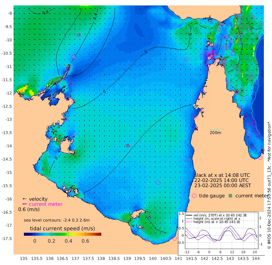 16cm/s 111T +3cm/s rms + 7cm/s -42T. ARA-GOC87 57m 24cm/s 8T +3cm/s rms + 2cm/s -2T. ARA-GOC87 60m 22cm/s 110T +2cm/s rms + 3cm/s 61T. ARA-GOC87 47m -50cm Daru -46cm Bobo Island -62cm Meer Island Barge -68cm Bramble Cay -68cm Unnamed Cay -48cm Pearce Cay -60cm Stephens Island -72cm Merrie England Shoals -58cm Mutacomal Reef -66cm Darnley Island Barge -66cm East Cay -58cm Yorke Island Barge -52cm Rennel Island -46cm Aureed Island -39cm Dungeness Reef -16cm Zagai Island -17cm Yam Island -9cm Dauan Island -18cm Saibai Island -23cm Phipi Reef -23cm Warrior Reef - West 1cm Mabuiag Island Barge -46cm Half Way Island -35cm Coconut Island -45cm Dugong Islet -21cm Poll Island -32cm Kirkcaldie Reef -8cm Suarji Island -34cm Sue Islet -4cm Hawkesbury Island -15cm Alert Patches -8cm Twin Island 6cm Badu Island 0cm St Pauls (Moa Island) 5cm Kubin (Moa Island) -2cm Ince Point 3cm Thursday Island 2cm Nardana Patches -3cm Turtle Head -2cm Round Island 0cm Goods Island 8cm Booby Island 14cm White Rocks Area 9cm Carpentaria 2cm Papou Point -2cm Bampfield Head 11cm Crab Island 12cm Red Wallis Island 3cm Packe Island -37cm Harrington Reef -11cm Herald Camp -2cm Sharp Point -3cm Red Island Point -5cm Possession Island -18cm Alpha Rock -21cm Frederick Point -45cm Wyborn Reef Light -38cm Tetley Island -52cm Triangle Reef -38cm Turtle Head Island -57cm Maclennan Cay -56cm Raine Island -58cm Mcsweeny Reef -66cm Collette Reef -66cm Shadwell Reef -73cm Hannibal Island -67cm Round Point 9cm Vrilya Point -71cm Cape Grenville -63cm Hicks Island -76cm Sir Charles Hardy Island -20cm Harvey Island -77cm Kay Reef -67cm Rocky Island -66cm Chapman Island -66cm Ham Reef -64cm Jubilee Reef -55cm Night Island -64cm Unnamed Reef No. 3 -67cm Morris Island -61cm 1st 3 Mile Opening -64cm Creech Reef -58cm Fife Island -78cm Eden Reef -73cm Stanley Island -72cm Normanby River 84cm Yabooma Island 85cm Hutchison River 82cm Elcho Island 83cm North West Crocodile Island 52cm Cape Wessel 72cm Stevens Island 12cm Guluwuru Island 55cm Hopeful Bay 59cm Auster Point 63cm Two Island Bay 68cm Cadell Strait -100cm Mallison Island 22cm Melville Bay (Gove Harbour) 28cm Truant Island 14cm Cape Arnhem 6cm Cape Grey 1cm Hawk Island 18cm Milner Bay (Groote Eylandt) 6cm Cape Beatrice 3cm West Island 4cm Centre Island -38cm Mornington Island -39cm West Wellesley Islands -51cm Bountiful Island -24cm Albert River Mouth -21cm Sweers Island -33cm Karumba -49cm Nassau River Offshore -56cm Christmas Creek -42cm Archer River -30cm Boyd Point -33cm Weipa (Humbug Point) -9cm Pennefather River -3cm Cullen Point