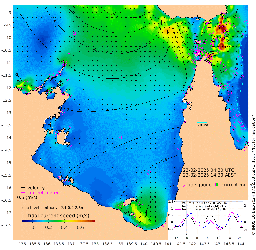23cm/s -76T +3cm/s rms + 7cm/s -42T. ARA-GOC87 57m 15cm/s -121T +3cm/s rms + 2cm/s -2T. ARA-GOC87 60m 21cm/s -72T +2cm/s rms + 3cm/s 61T. ARA-GOC87 47m -43cm Daru -49cm Bobo Island -37cm Meer Island Barge -56cm Bramble Cay -61cm Unnamed Cay -52cm Pearce Cay -54cm Stephens Island -76cm Merrie England Shoals -65cm Mutacomal Reef -48cm Darnley Island Barge -42cm East Cay -44cm Yorke Island Barge -49cm Rennel Island -43cm Aureed Island -27cm Dungeness Reef 2cm Zagai Island 0cm Yam Island 67cm Dauan Island 52cm Saibai Island 67cm Phipi Reef 20cm Warrior Reef - West 26cm Mabuiag Island Barge -54cm Half Way Island -45cm Coconut Island -47cm Dugong Islet -27cm Poll Island -28cm Kirkcaldie Reef -1cm Suarji Island -21cm Sue Islet 15cm Hawkesbury Island -13cm Alert Patches -18cm Twin Island 25cm Badu Island -2cm St Pauls (Moa Island) 13cm Kubin (Moa Island) -1cm Ince Point 0cm Thursday Island 2cm Nardana Patches 13cm Turtle Head 16cm Round Island 14cm Goods Island 9cm Booby Island -2cm White Rocks Area -21cm Carpentaria -6cm Papou Point 2cm Bampfield Head 9cm Crab Island 0cm Red Wallis Island 2cm Packe Island -57cm Harrington Reef 30cm Herald Camp 2cm Sharp Point 13cm Red Island Point 2cm Possession Island -33cm Alpha Rock -34cm Frederick Point -63cm Wyborn Reef Light -57cm Tetley Island -33cm Triangle Reef -62cm Turtle Head Island -34cm Maclennan Cay -28cm Raine Island -55cm Mcsweeny Reef -53cm Collette Reef -37cm Shadwell Reef -63cm Hannibal Island -62cm Round Point -8cm Vrilya Point -57cm Cape Grenville -40cm Hicks Island -36cm Sir Charles Hardy Island -14cm Harvey Island -56cm Kay Reef -33cm Rocky Island -36cm Chapman Island -32cm Ham Reef -34cm Jubilee Reef -34cm Night Island -38cm Unnamed Reef No. 3 -39cm Morris Island -28cm 1st 3 Mile Opening -34cm Creech Reef -38cm Fife Island -43cm Eden Reef -45cm Stanley Island -51cm Normanby River -8cm Yabooma Island -1cm Hutchison River -5cm Elcho Island 1cm North West Crocodile Island -40cm Cape Wessel -35cm Stevens Island -27cm Guluwuru Island -24cm Hopeful Bay -29cm Auster Point -24cm Two Island Bay -12cm Cadell Strait -126cm Mallison Island -20cm Melville Bay (Gove Harbour) -29cm Truant Island -14cm Cape Arnhem 1cm Cape Grey 7cm Hawk Island 5cm Milner Bay (Groote Eylandt) 16cm Cape Beatrice 19cm West Island 18cm Centre Island 70cm Mornington Island 61cm West Wellesley Islands 104cm Bountiful Island 119cm Albert River Mouth 112cm Sweers Island 128cm Karumba 65cm Nassau River Offshore 52cm Christmas Creek 27cm Archer River 20cm Boyd Point 31cm Weipa (Humbug Point) -5cm Pennefather River 8cm Cullen Point