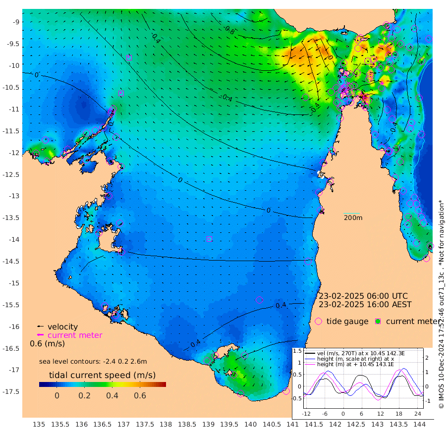 15cm/s -47T +3cm/s rms + 7cm/s -42T. ARA-GOC87 57m 13cm/s -89T +3cm/s rms + 2cm/s -2T. ARA-GOC87 60m 15cm/s -31T +2cm/s rms + 3cm/s 61T. ARA-GOC87 47m -56cm Daru -58cm Bobo Island -19cm Meer Island Barge -39cm Bramble Cay -55cm Unnamed Cay -61cm Pearce Cay -49cm Stephens Island -62cm Merrie England Shoals -71cm Mutacomal Reef -37cm Darnley Island Barge -26cm East Cay -46cm Yorke Island Barge -60cm Rennel Island -56cm Aureed Island -55cm Dungeness Reef -45cm Zagai Island -48cm Yam Island -10cm Dauan Island -12cm Saibai Island -4cm Phipi Reef -36cm Warrior Reef - West -42cm Mabuiag Island Barge -61cm Half Way Island -70cm Coconut Island -64cm Dugong Islet -67cm Poll Island -60cm Kirkcaldie Reef -68cm Suarji Island -55cm Sue Islet -62cm Hawkesbury Island -74cm Alert Patches -77cm Twin Island -55cm Badu Island -71cm St Pauls (Moa Island) -62cm Kubin (Moa Island) -69cm Ince Point -71cm Thursday Island -68cm Nardana Patches -61cm Turtle Head -57cm Round Island -61cm Goods Island -67cm Booby Island -78cm White Rocks Area -77cm Carpentaria -62cm Papou Point -76cm Bampfield Head -51cm Crab Island -75cm Red Wallis Island -74cm Packe Island -81cm Harrington Reef -48cm Herald Camp -15cm Sharp Point -49cm Red Island Point -62cm Possession Island -76cm Alpha Rock -78cm Frederick Point -78cm Wyborn Reef Light -80cm Tetley Island -31cm Triangle Reef -80cm Turtle Head Island -25cm Maclennan Cay -12cm Raine Island -55cm Mcsweeny Reef -45cm Collette Reef -22cm Shadwell Reef -49cm Hannibal Island -48cm Round Point -57cm Vrilya Point -39cm Cape Grenville -27cm Hicks Island -23cm Sir Charles Hardy Island -10cm Harvey Island -31cm Kay Reef -15cm Rocky Island -18cm Chapman Island -13cm Ham Reef -14cm Jubilee Reef -20cm Night Island -20cm Unnamed Reef No. 3 -18cm Morris Island -12cm 1st 3 Mile Opening -16cm Creech Reef -23cm Fife Island -13cm Eden Reef -19cm Stanley Island -23cm Normanby River 4cm Yabooma Island 12cm Hutchison River 10cm Elcho Island 14cm North West Crocodile Island -19cm Cape Wessel -10cm Stevens Island 8cm Guluwuru Island 0cm Hopeful Bay -11cm Auster Point -4cm Two Island Bay 15cm Cadell Strait -10cm Mallison Island 3cm Melville Bay (Gove Harbour) -6cm Truant Island 2cm Cape Arnhem 19cm Cape Grey 21cm Hawk Island 24cm Milner Bay (Groote Eylandt) 31cm Cape Beatrice 33cm West Island 33cm Centre Island 84cm Mornington Island 76cm West Wellesley Islands 118cm Bountiful Island 147cm Albert River Mouth 144cm Sweers Island 146cm Karumba 64cm Nassau River Offshore 39cm Christmas Creek 5cm Archer River -13cm Boyd Point -5cm Weipa (Humbug Point) -33cm Pennefather River -41cm Cullen Point