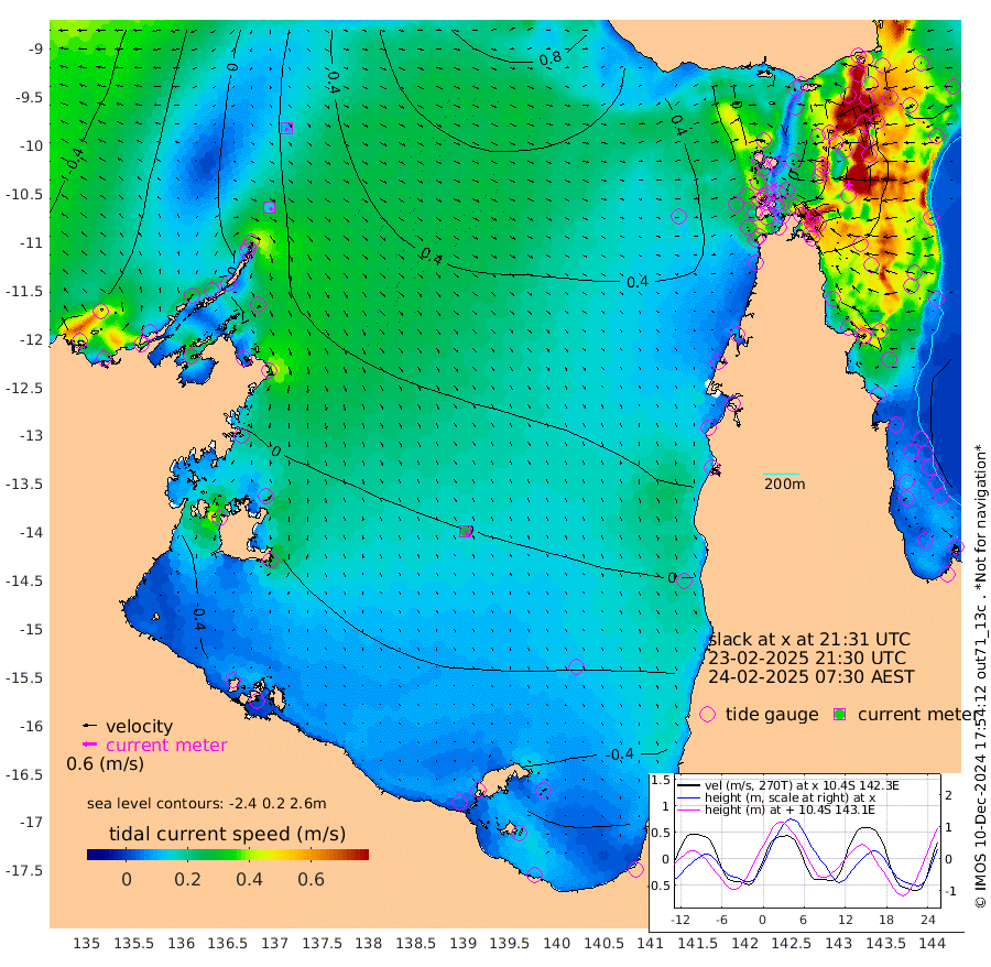15cm/s 135T +3cm/s rms + 7cm/s -42T. ARA-GOC87 57m 28cm/s 161T +3cm/s rms + 2cm/s -2T. ARA-GOC87 60m 10cm/s 168T +2cm/s rms + 3cm/s 61T. ARA-GOC87 47m 98cm Daru 97cm Bobo Island 104cm Meer Island Barge 122cm Bramble Cay 127cm Unnamed Cay 108cm Pearce Cay 118cm Stephens Island 138cm Merrie England Shoals 119cm Mutacomal Reef 115cm Darnley Island Barge 109cm East Cay 104cm Yorke Island Barge 107cm Rennel Island 93cm Aureed Island 83cm Dungeness Reef 33cm Zagai Island 40cm Yam Island -9cm Dauan Island -6cm Saibai Island -3cm Phipi Reef 29cm Warrior Reef - West 10cm Mabuiag Island Barge 108cm Half Way Island 88cm Coconut Island 102cm Dugong Islet 66cm Poll Island 75cm Kirkcaldie Reef 36cm Suarji Island 65cm Sue Islet 62cm Hawkesbury Island 58cm Alert Patches 55cm Twin Island 38cm Badu Island 38cm St Pauls (Moa Island) 50cm Kubin (Moa Island) 45cm Ince Point 46cm Thursday Island 43cm Nardana Patches 51cm Turtle Head 50cm Round Island 61cm Goods Island 62cm Booby Island 61cm White Rocks Area 63cm Carpentaria 33cm Papou Point 78cm Bampfield Head 43cm Crab Island 60cm Red Wallis Island 64cm Packe Island 102cm Harrington Reef 58cm Herald Camp 1cm Sharp Point 34cm Red Island Point 45cm Possession Island 65cm Alpha Rock 74cm Frederick Point 110cm Wyborn Reef Light 101cm Tetley Island 90cm Triangle Reef 116cm Turtle Head Island 98cm Maclennan Cay 91cm Raine Island 114cm Mcsweeny Reef 116cm Collette Reef 104cm Shadwell Reef 130cm Hannibal Island 128cm Round Point 52cm Vrilya Point 123cm Cape Grenville 108cm Hicks Island 116cm Sir Charles Hardy Island 35cm Harvey Island 125cm Kay Reef 102cm Rocky Island 102cm Chapman Island 98cm Ham Reef 101cm Jubilee Reef 94cm Night Island 101cm Unnamed Reef No. 3 108cm Morris Island 101cm 1st 3 Mile Opening 104cm Creech Reef 100cm Fife Island 124cm Eden Reef 118cm Stanley Island 121cm Normanby River -13cm Yabooma Island -11cm Hutchison River -19cm Elcho Island -29cm North West Crocodile Island 12cm Cape Wessel 4cm Stevens Island 34cm Guluwuru Island 4cm Hopeful Bay 6cm Auster Point 4cm Two Island Bay 0cm Cadell Strait 166cm Mallison Island 20cm Melville Bay (Gove Harbour) 26cm Truant Island 13cm Cape Arnhem -12cm Cape Grey -18cm Hawk Island -52cm Milner Bay (Groote Eylandt) -50cm Cape Beatrice -71cm West Island -72cm Centre Island -76cm Mornington Island -68cm West Wellesley Islands -99cm Bountiful Island -145cm Albert River Mouth -154cm Sweers Island -142cm Karumba -35cm Nassau River Offshore 6cm Christmas Creek 35cm Archer River 44cm Boyd Point 42cm Weipa (Humbug Point) 46cm Pennefather River 45cm Cullen Point