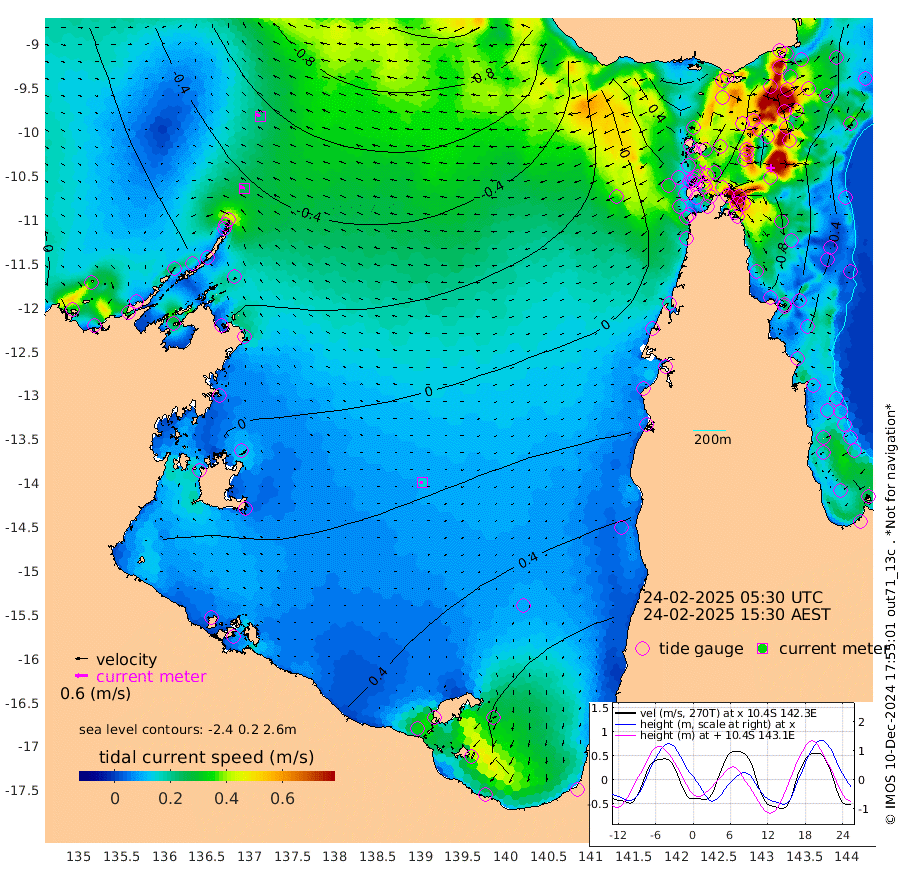 26cm/s -73T +3cm/s rms + 7cm/s -42T. ARA-GOC87 57m 15cm/s -109T +3cm/s rms + 2cm/s -2T. ARA-GOC87 60m 23cm/s -70T +2cm/s rms + 3cm/s 61T. ARA-GOC87 47m -79cm Daru -82cm Bobo Island -42cm Meer Island Barge -70cm Bramble Cay -87cm Unnamed Cay -82cm Pearce Cay -76cm Stephens Island -98cm Merrie England Shoals -99cm Mutacomal Reef -65cm Darnley Island Barge -49cm East Cay -70cm Yorke Island Barge -80cm Rennel Island -73cm Aureed Island -64cm Dungeness Reef -42cm Zagai Island -44cm Yam Island 22cm Dauan Island 10cm Saibai Island 24cm Phipi Reef -27cm Warrior Reef - West -15cm Mabuiag Island Barge -83cm Half Way Island -83cm Coconut Island -82cm Dugong Islet -69cm Poll Island -67cm Kirkcaldie Reef -50cm Suarji Island -61cm Sue Islet -14cm Hawkesbury Island -57cm Alert Patches -64cm Twin Island -10cm Badu Island -52cm St Pauls (Moa Island) -21cm Kubin (Moa Island) -43cm Ince Point -38cm Thursday Island -37cm Nardana Patches -20cm Turtle Head -12cm Round Island -11cm Goods Island -9cm Booby Island -26cm White Rocks Area -30cm Carpentaria -48cm Papou Point -17cm Bampfield Head -3cm Crab Island -19cm Red Wallis Island -26cm Packe Island -97cm Harrington Reef 10cm Herald Camp -11cm Sharp Point -16cm Red Island Point -34cm Possession Island -74cm Alpha Rock -77cm Frederick Point -101cm Wyborn Reef Light -98cm Tetley Island -44cm Triangle Reef -101cm Turtle Head Island -42cm Maclennan Cay -27cm Raine Island -80cm Mcsweeny Reef -72cm Collette Reef -44cm Shadwell Reef -81cm Hannibal Island -77cm Round Point -14cm Vrilya Point -66cm Cape Grenville -49cm Hicks Island -45cm Sir Charles Hardy Island -17cm Harvey Island -59cm Kay Reef -34cm Rocky Island -35cm Chapman Island -30cm Ham Reef -35cm Jubilee Reef -35cm Night Island -36cm Unnamed Reef No. 3 -39cm Morris Island -29cm 1st 3 Mile Opening -34cm Creech Reef -41cm Fife Island -38cm Eden Reef -43cm Stanley Island -51cm Normanby River -23cm Yabooma Island -22cm Hutchison River -18cm Elcho Island -13cm North West Crocodile Island -53cm Cape Wessel -50cm Stevens Island -41cm Guluwuru Island -32cm Hopeful Bay -42cm Auster Point -36cm Two Island Bay -30cm Cadell Strait -120cm Mallison Island -34cm Melville Bay (Gove Harbour) -45cm Truant Island -24cm Cape Arnhem -5cm Cape Grey 6cm Hawk Island 11cm Milner Bay (Groote Eylandt) 22cm Cape Beatrice 30cm West Island 33cm Centre Island 86cm Mornington Island 75cm West Wellesley Islands 118cm Bountiful Island 141cm Albert River Mouth 137cm Sweers Island 149cm Karumba 76cm Nassau River Offshore 59cm Christmas Creek 31cm Archer River 17cm Boyd Point 30cm Weipa (Humbug Point) -5cm Pennefather River 4cm Cullen Point