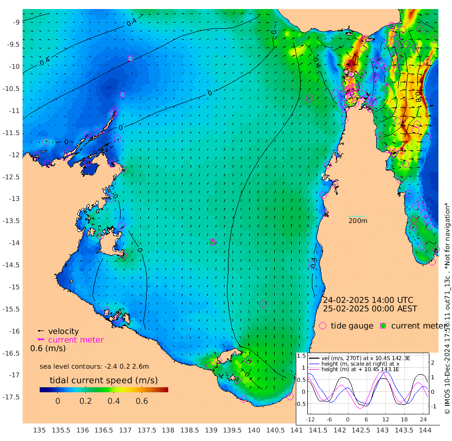 12cm/s 71T +3cm/s rms + 7cm/s -42T. ARA-GOC87 57m 32cm/s 11T +3cm/s rms + 2cm/s -2T. ARA-GOC87 60m 17cm/s 85T +2cm/s rms + 3cm/s 61T. ARA-GOC87 47m -33cm Daru -29cm Bobo Island -79cm Meer Island Barge -73cm Bramble Cay -59cm Unnamed Cay -44cm Pearce Cay -61cm Stephens Island -62cm Merrie England Shoals -36cm Mutacomal Reef -67cm Darnley Island Barge -79cm East Cay -48cm Yorke Island Barge -43cm Rennel Island -33cm Aureed Island -29cm Dungeness Reef 12cm Zagai Island 5cm Yam Island 2cm Dauan Island 12cm Saibai Island -10cm Phipi Reef 2cm Warrior Reef - West 17cm Mabuiag Island Barge -42cm Half Way Island -14cm Coconut Island -35cm Dugong Islet -2cm Poll Island -15cm Kirkcaldie Reef 17cm Suarji Island -6cm Sue Islet -44cm Hawkesbury Island 1cm Alert Patches 10cm Twin Island -20cm Badu Island 19cm St Pauls (Moa Island) -24cm Kubin (Moa Island) 2cm Ince Point -2cm Thursday Island -1cm Nardana Patches -26cm Turtle Head -32cm Round Island -46cm Goods Island -47cm Booby Island -33cm White Rocks Area -24cm Carpentaria 17cm Papou Point -52cm Bampfield Head -35cm Crab Island -36cm Red Wallis Island -35cm Packe Island -19cm Harrington Reef -61cm Herald Camp 13cm Sharp Point -14cm Red Island Point -7cm Possession Island 8cm Alpha Rock -1cm Frederick Point -22cm Wyborn Reef Light -13cm Tetley Island -59cm Triangle Reef -31cm Turtle Head Island -72cm Maclennan Cay -79cm Raine Island -51cm Mcsweeny Reef -60cm Collette Reef -75cm Shadwell Reef -69cm Hannibal Island -73cm Round Point -33cm Vrilya Point -77cm Cape Grenville -77cm Hicks Island -89cm Sir Charles Hardy Island -24cm Harvey Island -86cm Kay Reef -84cm Rocky Island -82cm Chapman Island -82cm Ham Reef -82cm Jubilee Reef -74cm Night Island -80cm Unnamed Reef No. 3 -87cm Morris Island -88cm 1st 3 Mile Opening -86cm Creech Reef -77cm Fife Island -107cm Eden Reef -94cm Stanley Island -93cm Normanby River 13cm Yabooma Island 8cm Hutchison River 15cm Elcho Island 20cm North West Crocodile Island 28cm Cape Wessel 26cm Stevens Island -6cm Guluwuru Island 10cm Hopeful Bay 21cm Auster Point 15cm Two Island Bay 8cm Cadell Strait -57cm Mallison Island 4cm Melville Bay (Gove Harbour) 8cm Truant Island 6cm Cape Arnhem 13cm Cape Grey 11cm Hawk Island 41cm Milner Bay (Groote Eylandt) 28cm Cape Beatrice 44cm West Island 43cm Centre Island -9cm Mornington Island -9cm West Wellesley Islands -19cm Bountiful Island 0cm Albert River Mouth 17cm Sweers Island -10cm Karumba -44cm Nassau River Offshore -66cm Christmas Creek -65cm Archer River -58cm Boyd Point -70cm Weipa (Humbug Point) -39cm Pennefather River -43cm Cullen Point