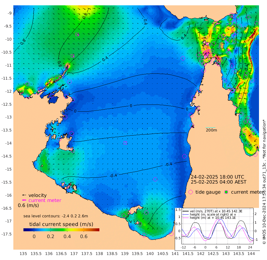 29cm/s 120T +3cm/s rms + 7cm/s -42T. ARA-GOC87 57m 10cm/s 48T +3cm/s rms + 2cm/s -2T. ARA-GOC87 60m 31cm/s 119T +2cm/s rms + 3cm/s 61T. ARA-GOC87 47m -115cm Daru -106cm Bobo Island -33cm Meer Island Barge -70cm Bramble Cay -101cm Unnamed Cay -97cm Pearce Cay -85cm Stephens Island -106cm Merrie England Shoals -126cm Mutacomal Reef -71cm Darnley Island Barge -48cm East Cay -89cm Yorke Island Barge -106cm Rennel Island -98cm Aureed Island -106cm Dungeness Reef -96cm Zagai Island -101cm Yam Island -69cm Dauan Island -68cm Saibai Island -97cm Phipi Reef -107cm Warrior Reef - West -54cm Mabuiag Island Barge -96cm Half Way Island -111cm Coconut Island -106cm Dugong Islet -107cm Poll Island -108cm Kirkcaldie Reef -112cm Suarji Island -102cm Sue Islet 0cm Hawkesbury Island -98cm Alert Patches -96cm Twin Island -5cm Badu Island -93cm St Pauls (Moa Island) -20cm Kubin (Moa Island) -68cm Ince Point -49cm Thursday Island -55cm Nardana Patches -32cm Turtle Head -19cm Round Island 12cm Goods Island 42cm Booby Island 22cm White Rocks Area 63cm Carpentaria -75cm Papou Point 32cm Bampfield Head 36cm Crab Island 27cm Red Wallis Island -15cm Packe Island -121cm Harrington Reef 4cm Herald Camp -36cm Sharp Point -34cm Red Island Point -64cm Possession Island -98cm Alpha Rock -108cm Frederick Point -118cm Wyborn Reef Light -118cm Tetley Island -44cm Triangle Reef -101cm Turtle Head Island -39cm Maclennan Cay -15cm Raine Island -91cm Mcsweeny Reef -84cm Collette Reef -44cm Shadwell Reef -89cm Hannibal Island -76cm Round Point 46cm Vrilya Point -65cm Cape Grenville -51cm Hicks Island -46cm Sir Charles Hardy Island -19cm Harvey Island -49cm Kay Reef -30cm Rocky Island -25cm Chapman Island -19cm Ham Reef -22cm Jubilee Reef -28cm Night Island -24cm Unnamed Reef No. 3 -29cm Morris Island -13cm 1st 3 Mile Opening -23cm Creech Reef -35cm Fife Island -19cm Eden Reef -30cm Stanley Island -37cm Normanby River 96cm Yabooma Island 106cm Hutchison River 99cm Elcho Island 89cm North West Crocodile Island 73cm Cape Wessel 80cm Stevens Island 64cm Guluwuru Island 72cm Hopeful Bay 75cm Auster Point 88cm Two Island Bay 99cm Cadell Strait 24cm Mallison Island 51cm Melville Bay (Gove Harbour) 60cm Truant Island 34cm Cape Arnhem 9cm Cape Grey -14cm Hawk Island -19cm Milner Bay (Groote Eylandt) -35cm Cape Beatrice -59cm West Island -58cm Centre Island -102cm Mornington Island -103cm West Wellesley Islands -114cm Bountiful Island -111cm Albert River Mouth -119cm Sweers Island -125cm Karumba -88cm Nassau River Offshore -62cm Christmas Creek -16cm Archer River 6cm Boyd Point 8cm Weipa (Humbug Point) 19cm Pennefather River 33cm Cullen Point
