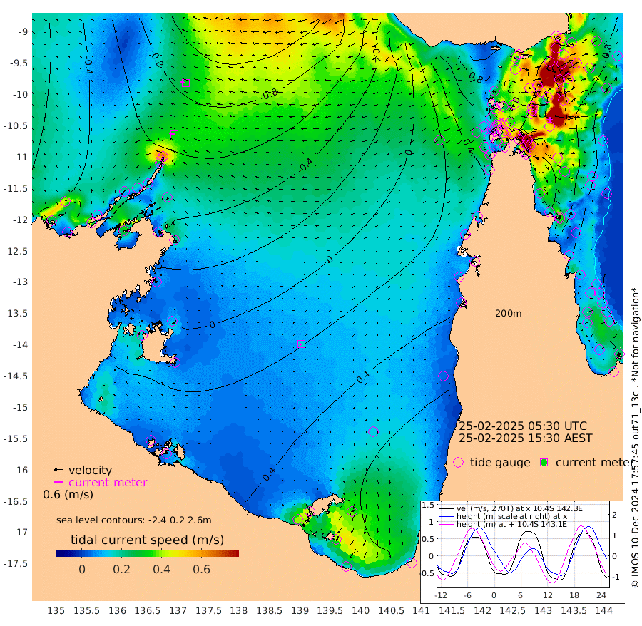 35cm/s -80T +3cm/s rms + 7cm/s -42T. ARA-GOC87 57m 16cm/s -122T +3cm/s rms + 2cm/s -2T. ARA-GOC87 60m 32cm/s -82T +2cm/s rms + 3cm/s 61T. ARA-GOC87 47m -96cm Daru -100cm Bobo Island -60cm Meer Island Barge -91cm Bramble Cay -108cm Unnamed Cay -100cm Pearce Cay -97cm Stephens Island -120cm Merrie England Shoals -116cm Mutacomal Reef -86cm Darnley Island Barge -67cm East Cay -89cm Yorke Island Barge -97cm Rennel Island -87cm Aureed Island -75cm Dungeness Reef -43cm Zagai Island -45cm Yam Island 35cm Dauan Island 21cm Saibai Island 33cm Phipi Reef -26cm Warrior Reef - West 1cm Mabuiag Island Barge -100cm Half Way Island -93cm Coconut Island -96cm Dugong Islet -73cm Poll Island -75cm Kirkcaldie Reef -43cm Suarji Island -68cm Sue Islet 13cm Hawkesbury Island -49cm Alert Patches -57cm Twin Island 15cm Badu Island -43cm St Pauls (Moa Island) 1cm Kubin (Moa Island) -28cm Ince Point -19cm Thursday Island -19cm Nardana Patches 3cm Turtle Head 14cm Round Island 18cm Goods Island 28cm Booby Island 8cm White Rocks Area 8cm Carpentaria -42cm Papou Point 19cm Bampfield Head 29cm Crab Island 19cm Red Wallis Island 6cm Packe Island -111cm Harrington Reef 44cm Herald Camp -8cm Sharp Point 1cm Red Island Point -20cm Possession Island -70cm Alpha Rock -79cm Frederick Point -115cm Wyborn Reef Light -109cm Tetley Island -54cm Triangle Reef -120cm Turtle Head Island -56cm Maclennan Cay -40cm Raine Island -98cm Mcsweeny Reef -90cm Collette Reef -59cm Shadwell Reef -102cm Hannibal Island -96cm Round Point 18cm Vrilya Point -83cm Cape Grenville -68cm Hicks Island -61cm Sir Charles Hardy Island -23cm Harvey Island -77cm Kay Reef -50cm Rocky Island -47cm Chapman Island -43cm Ham Reef -50cm Jubilee Reef -47cm Night Island -48cm Unnamed Reef No. 3 -56cm Morris Island -43cm 1st 3 Mile Opening -49cm Creech Reef -55cm Fife Island -58cm Eden Reef -60cm Stanley Island -71cm Normanby River -64cm Yabooma Island -72cm Hutchison River -58cm Elcho Island -51cm North West Crocodile Island -85cm Cape Wessel -91cm Stevens Island -84cm Guluwuru Island -67cm Hopeful Bay -77cm Auster Point -72cm Two Island Bay -83cm Cadell Strait -170cm Mallison Island -70cm Melville Bay (Gove Harbour) -81cm Truant Island -48cm Cape Arnhem -28cm Cape Grey -8cm Hawk Island 0cm Milner Bay (Groote Eylandt) 14cm Cape Beatrice 31cm West Island 37cm Centre Island 85cm Mornington Island 73cm West Wellesley Islands 107cm Bountiful Island 128cm Albert River Mouth 120cm Sweers Island 140cm Karumba 83cm Nassau River Offshore 71cm Christmas Creek 49cm Archer River 38cm Boyd Point 53cm Weipa (Humbug Point) 18cm Pennefather River 37cm Cullen Point