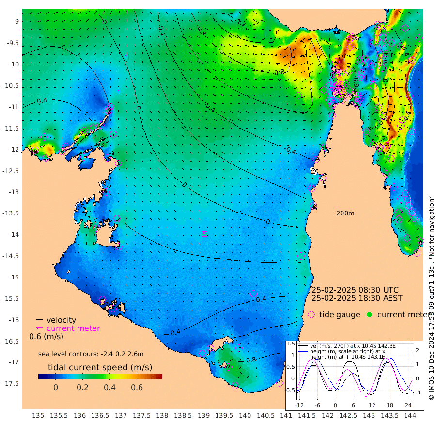 12cm/s -16T +3cm/s rms + 7cm/s -42T. ARA-GOC87 57m 18cm/s -52T +3cm/s rms + 2cm/s -2T. ARA-GOC87 60m 15cm/s 11T +2cm/s rms + 3cm/s 61T. ARA-GOC87 47m -39cm Daru -31cm Bobo Island 27cm Meer Island Barge 17cm Bramble Cay -9cm Unnamed Cay -21cm Pearce Cay -1cm Stephens Island -1cm Merrie England Shoals -37cm Mutacomal Reef 6cm Darnley Island Barge 28cm East Cay -18cm Yorke Island Barge -28cm Rennel Island -32cm Aureed Island -49cm Dungeness Reef -90cm Zagai Island -90cm Yam Island -112cm Dauan Island -108cm Saibai Island -81cm Phipi Reef -93cm Warrior Reef - West -117cm Mabuiag Island Barge -27cm Half Way Island -60cm Coconut Island -43cm Dugong Islet -80cm Poll Island -66cm Kirkcaldie Reef -108cm Suarji Island -74cm Sue Islet -111cm Hawkesbury Island -108cm Alert Patches -109cm Twin Island -120cm Badu Island -122cm St Pauls (Moa Island) -114cm Kubin (Moa Island) -116cm Ince Point -118cm Thursday Island -118cm Nardana Patches -109cm Turtle Head -100cm Round Island -106cm Goods Island -112cm Booby Island -114cm White Rocks Area -117cm Carpentaria -103cm Papou Point -115cm Bampfield Head -88cm Crab Island -118cm Red Wallis Island -114cm Packe Island -57cm Harrington Reef -96cm Herald Camp -34cm Sharp Point -88cm Red Island Point -94cm Possession Island -98cm Alpha Rock -89cm Frederick Point -56cm Wyborn Reef Light -68cm Tetley Island 0cm Triangle Reef -49cm Turtle Head Island 15cm Maclennan Cay 32cm Raine Island -15cm Mcsweeny Reef 0cm Collette Reef 21cm Shadwell Reef 7cm Hannibal Island 14cm Round Point -85cm Vrilya Point 19cm Cape Grenville 24cm Hicks Island 19cm Sir Charles Hardy Island 7cm Harvey Island 33cm Kay Reef 34cm Rocky Island 32cm Chapman Island 32cm Ham Reef 32cm Jubilee Reef 26cm Night Island 29cm Unnamed Reef No. 3 36cm Morris Island 33cm 1st 3 Mile Opening 33cm Creech Reef 28cm Fife Island 53cm Eden Reef 42cm Stanley Island 47cm Normanby River 41cm Yabooma Island 45cm Hutchison River 43cm Elcho Island 44cm North West Crocodile Island 1cm Cape Wessel 29cm Stevens Island 16cm Guluwuru Island 42cm Hopeful Bay 18cm Auster Point 21cm Two Island Bay 39cm Cadell Strait 23cm Mallison Island 15cm Melville Bay (Gove Harbour) 5cm Truant Island 6cm Cape Arnhem 26cm Cape Grey 34cm Hawk Island 43cm Milner Bay (Groote Eylandt) 47cm Cape Beatrice 49cm West Island 54cm Centre Island 100cm Mornington Island 96cm West Wellesley Islands 133cm Bountiful Island 168cm Albert River Mouth 181cm Sweers Island 168cm Karumba 73cm Nassau River Offshore 35cm Christmas Creek -2cm Archer River -37cm Boyd Point -27cm Weipa (Humbug Point) -43cm Pennefather River -73cm Cullen Point