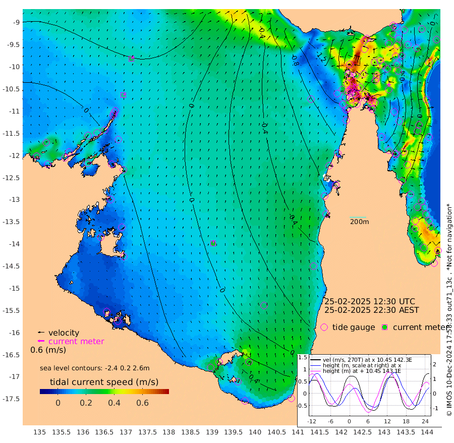 19cm/s 46T +3cm/s rms + 7cm/s -42T. ARA-GOC87 57m 30cm/s 3T +3cm/s rms + 2cm/s -2T. ARA-GOC87 60m 24cm/s 52T +2cm/s rms + 3cm/s 61T. ARA-GOC87 47m 60cm Daru 62cm Bobo Island -7cm Meer Island Barge 25cm Bramble Cay 50cm Unnamed Cay 47cm Pearce Cay 36cm Stephens Island 56cm Merrie England Shoals 70cm Mutacomal Reef 25cm Darnley Island Barge 2cm East Cay 41cm Yorke Island Barge 49cm Rennel Island 48cm Aureed Island 43cm Dungeness Reef 43cm Zagai Island 38cm Yam Island -22cm Dauan Island -5cm Saibai Island -2cm Phipi Reef 32cm Warrior Reef - West -10cm Mabuiag Island Barge 47cm Half Way Island 60cm Coconut Island 48cm Dugong Islet 49cm Poll Island 47cm Kirkcaldie Reef 42cm Suarji Island 48cm Sue Islet -101cm Hawkesbury Island 23cm Alert Patches 31cm Twin Island -80cm Badu Island 28cm St Pauls (Moa Island) -68cm Kubin (Moa Island) -6cm Ince Point -26cm Thursday Island -22cm Nardana Patches -62cm Turtle Head -73cm Round Island -110cm Goods Island -135cm Booby Island -109cm White Rocks Area -117cm Carpentaria 24cm Papou Point -126cm Bampfield Head -111cm Crab Island -120cm Red Wallis Island -87cm Packe Island 68cm Harrington Reef -123cm Herald Camp 19cm Sharp Point -41cm Red Island Point -7cm Possession Island 43cm Alpha Rock 48cm Frederick Point 70cm Wyborn Reef Light 69cm Tetley Island -2cm Triangle Reef 59cm Turtle Head Island -9cm Maclennan Cay -25cm Raine Island 42cm Mcsweeny Reef 35cm Collette Reef -1cm Shadwell Reef 39cm Hannibal Island 27cm Round Point -107cm Vrilya Point 15cm Cape Grenville 4cm Hicks Island -13cm Sir Charles Hardy Island 3cm Harvey Island 3cm Kay Reef -16cm Rocky Island -21cm Chapman Island -24cm Ham Reef -19cm Jubilee Reef -14cm Night Island -21cm Unnamed Reef No. 3 -16cm Morris Island -30cm 1st 3 Mile Opening -23cm Creech Reef -10cm Fife Island -28cm Eden Reef -17cm Stanley Island -7cm Normanby River 4cm Yabooma Island 4cm Hutchison River 5cm Elcho Island 9cm North West Crocodile Island 27cm Cape Wessel 35cm Stevens Island 22cm Guluwuru Island 21cm Hopeful Bay 24cm Auster Point 13cm Two Island Bay 17cm Cadell Strait 64cm Mallison Island 26cm Melville Bay (Gove Harbour) 26cm Truant Island 21cm Cape Arnhem 39cm Cape Grey 41cm Hawk Island 65cm Milner Bay (Groote Eylandt) 55cm Cape Beatrice 71cm West Island 70cm Centre Island 51cm Mornington Island 53cm West Wellesley Islands 55cm Bountiful Island 72cm Albert River Mouth 104cm Sweers Island 67cm Karumba 0cm Nassau River Offshore -43cm Christmas Creek -73cm Archer River -88cm Boyd Point -103cm Weipa (Humbug Point) -74cm Pennefather River -110cm Cullen Point