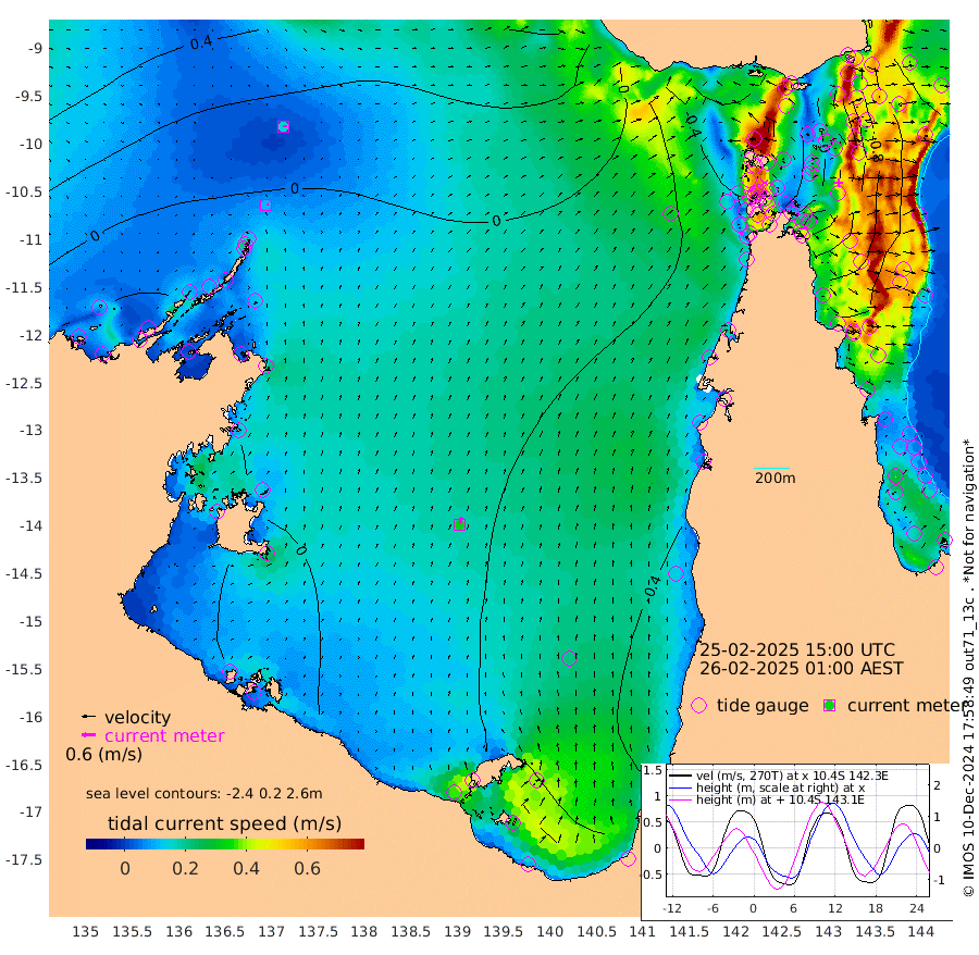 11cm/s 66T +3cm/s rms + 7cm/s -42T. ARA-GOC87 57m 32cm/s 14T +3cm/s rms + 2cm/s -2T. ARA-GOC87 60m 15cm/s 85T +2cm/s rms + 3cm/s 61T. ARA-GOC87 47m -60cm Daru -58cm Bobo Island -100cm Meer Island Barge -103cm Bramble Cay -91cm Unnamed Cay -77cm Pearce Cay -93cm Stephens Island -98cm Merrie England Shoals -68cm Mutacomal Reef -93cm Darnley Island Barge -105cm East Cay -73cm Yorke Island Barge -75cm Rennel Island -59cm Aureed Island -53cm Dungeness Reef 6cm Zagai Island -5cm Yam Island 13cm Dauan Island 28cm Saibai Island -6cm Phipi Reef -4cm Warrior Reef - West 25cm Mabuiag Island Barge -73cm Half Way Island -39cm Coconut Island -65cm Dugong Islet -22cm Poll Island -37cm Kirkcaldie Reef 7cm Suarji Island -18cm Sue Islet -45cm Hawkesbury Island -9cm Alert Patches -3cm Twin Island -17cm Badu Island 12cm St Pauls (Moa Island) -28cm Kubin (Moa Island) -4cm Ince Point -7cm Thursday Island -5cm Nardana Patches -31cm Turtle Head -32cm Round Island -48cm Goods Island -44cm Booby Island -38cm White Rocks Area -11cm Carpentaria 10cm Papou Point -46cm Bampfield Head -33cm Crab Island -37cm Red Wallis Island -43cm Packe Island -50cm Harrington Reef -58cm Herald Camp 13cm Sharp Point -18cm Red Island Point -12cm Possession Island -4cm Alpha Rock -21cm Frederick Point -50cm Wyborn Reef Light -38cm Tetley Island -77cm Triangle Reef -62cm Turtle Head Island -94cm Maclennan Cay -98cm Raine Island -80cm Mcsweeny Reef -88cm Collette Reef -95cm Shadwell Reef -100cm Hannibal Island -106cm Round Point -29cm Vrilya Point -105cm Cape Grenville -103cm Hicks Island -111cm Sir Charles Hardy Island -32cm Harvey Island -112cm Kay Reef -105cm Rocky Island -103cm Chapman Island -100cm Ham Reef -102cm Jubilee Reef -94cm Night Island -100cm Unnamed Reef No. 3 -110cm Morris Island -106cm 1st 3 Mile Opening -107cm Creech Reef -102cm Fife Island -132cm Eden Reef -118cm Stanley Island -123cm Normanby River -15cm Yabooma Island -21cm Hutchison River -8cm Elcho Island -4cm North West Crocodile Island 16cm Cape Wessel 3cm Stevens Island -11cm Guluwuru Island -9cm Hopeful Bay 6cm Auster Point 0cm Two Island Bay -14cm Cadell Strait -53cm Mallison Island -3cm Melville Bay (Gove Harbour) 1cm Truant Island 4cm Cape Arnhem 13cm Cape Grey 9cm Hawk Island 41cm Milner Bay (Groote Eylandt) 25cm Cape Beatrice 44cm West Island 45cm Centre Island -15cm Mornington Island -17cm West Wellesley Islands -24cm Bountiful Island -11cm Albert River Mouth 10cm Sweers Island -20cm Karumba -54cm Nassau River Offshore -73cm Christmas Creek -68cm Archer River -55cm Boyd Point -69cm Weipa (Humbug Point) -38cm Pennefather River -37cm Cullen Point