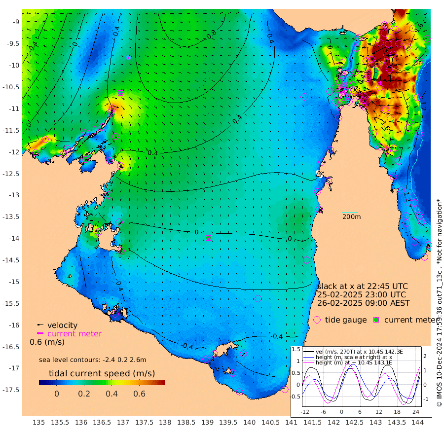 21cm/s 127T +3cm/s rms + 7cm/s -42T. ARA-GOC87 57m 31cm/s 166T +3cm/s rms + 2cm/s -2T. ARA-GOC87 60m 12cm/s 144T +2cm/s rms + 3cm/s 61T. ARA-GOC87 47m 162cm Daru 158cm Bobo Island 131cm Meer Island Barge 164cm Bramble Cay 181cm Unnamed Cay 170cm Pearce Cay 172cm Stephens Island 191cm Merrie England Shoals 181cm Mutacomal Reef 158cm Darnley Island Barge 142cm East Cay 156cm Yorke Island Barge 169cm Rennel Island 149cm Aureed Island 145cm Dungeness Reef 86cm Zagai Island 99cm Yam Island 35cm Dauan Island 27cm Saibai Island 40cm Phipi Reef 88cm Warrior Reef - West 44cm Mabuiag Island Barge 169cm Half Way Island 148cm Coconut Island 167cm Dugong Islet 128cm Poll Island 137cm Kirkcaldie Reef 93cm Suarji Island 117cm Sue Islet 89cm Hawkesbury Island 109cm Alert Patches 111cm Twin Island 67cm Badu Island 94cm St Pauls (Moa Island) 87cm Kubin (Moa Island) 90cm Ince Point 85cm Thursday Island 84cm Nardana Patches 86cm Turtle Head 72cm Round Island 83cm Goods Island 70cm Booby Island 81cm White Rocks Area 49cm Carpentaria 84cm Papou Point 79cm Bampfield Head 48cm Crab Island 74cm Red Wallis Island 93cm Packe Island 172cm Harrington Reef 70cm Herald Camp 14cm Sharp Point 64cm Red Island Point 80cm Possession Island 115cm Alpha Rock 135cm Frederick Point 173cm Wyborn Reef Light 164cm Tetley Island 118cm Triangle Reef 185cm Turtle Head Island 128cm Maclennan Cay 109cm Raine Island 166cm Mcsweeny Reef 158cm Collette Reef 128cm Shadwell Reef 176cm Hannibal Island 172cm Round Point 46cm Vrilya Point 157cm Cape Grenville 142cm Hicks Island 148cm Sir Charles Hardy Island 46cm Harvey Island 150cm Kay Reef 123cm Rocky Island 117cm Chapman Island 112cm Ham Reef 121cm Jubilee Reef 114cm Night Island 117cm Unnamed Reef No. 3 131cm Morris Island 119cm 1st 3 Mile Opening 124cm Creech Reef 127cm Fife Island 144cm Eden Reef 138cm Stanley Island 150cm Normanby River 47cm Yabooma Island 61cm Hutchison River 36cm Elcho Island 28cm North West Crocodile Island 50cm Cape Wessel 55cm Stevens Island 73cm Guluwuru Island 41cm Hopeful Bay 47cm Auster Point 48cm Two Island Bay 66cm Cadell Strait 165cm Mallison Island 55cm Melville Bay (Gove Harbour) 63cm Truant Island 34cm Cape Arnhem 1cm Cape Grey -15cm Hawk Island -60cm Milner Bay (Groote Eylandt) -56cm Cape Beatrice -89cm West Island -98cm Centre Island -89cm Mornington Island -78cm West Wellesley Islands -108cm Bountiful Island -152cm Albert River Mouth -175cm Sweers Island -151cm Karumba -38cm Nassau River Offshore 5cm Christmas Creek 28cm Archer River 40cm Boyd Point 38cm Weipa (Humbug Point) 38cm Pennefather River 37cm Cullen Point