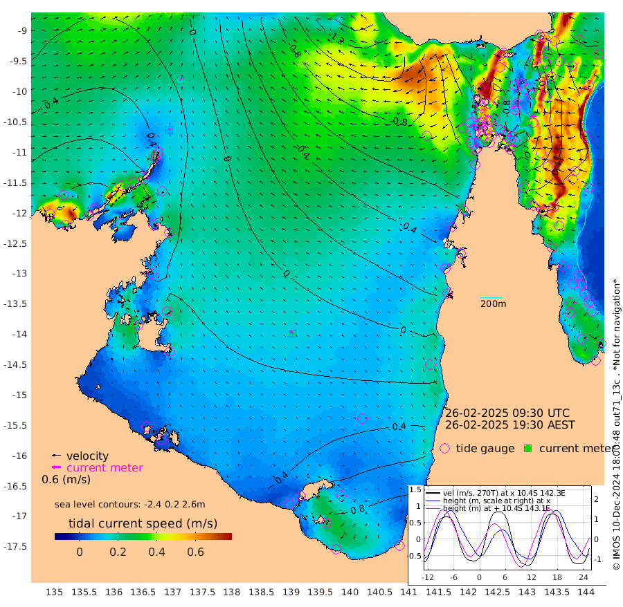 10cm/s 15T +3cm/s rms + 7cm/s -42T. ARA-GOC87 57m 20cm/s -47T +3cm/s rms + 2cm/s -2T. ARA-GOC87 60m 17cm/s 34T +2cm/s rms + 3cm/s 61T. ARA-GOC87 47m -7cm Daru 2cm Bobo Island 50cm Meer Island Barge 49cm Bramble Cay 26cm Unnamed Cay 16cm Pearce Cay 33cm Stephens Island 36cm Merrie England Shoals -2cm Mutacomal Reef 34cm Darnley Island Barge 55cm East Cay 11cm Yorke Island Barge 6cm Rennel Island -1cm Aureed Island -21cm Dungeness Reef -78cm Zagai Island -77cm Yam Island -120cm Dauan Island -121cm Saibai Island -79cm Phipi Reef -83cm Warrior Reef - West -120cm Mabuiag Island Barge 6cm Half Way Island -30cm Coconut Island -12cm Dugong Islet -56cm Poll Island -42cm Kirkcaldie Reef -90cm Suarji Island -58cm Sue Islet -110cm Hawkesbury Island -91cm Alert Patches -91cm Twin Island -120cm Badu Island -108cm St Pauls (Moa Island) -108cm Kubin (Moa Island) -105cm Ince Point -110cm Thursday Island -110cm Nardana Patches -103cm Turtle Head -95cm Round Island -103cm Goods Island -114cm Booby Island -109cm White Rocks Area -128cm Carpentaria -91cm Papou Point -113cm Bampfield Head -92cm Crab Island -119cm Red Wallis Island -107cm Packe Island -21cm Harrington Reef -99cm Herald Camp -33cm Sharp Point -84cm Red Island Point -81cm Possession Island -81cm Alpha Rock -63cm Frederick Point -22cm Wyborn Reef Light -37cm Tetley Island 20cm Triangle Reef -11cm Turtle Head Island 37cm Maclennan Cay 51cm Raine Island 17cm Mcsweeny Reef 30cm Collette Reef 42cm Shadwell Reef 41cm Hannibal Island 49cm Round Point -91cm Vrilya Point 49cm Cape Grenville 51cm Hicks Island 41cm Sir Charles Hardy Island 15cm Harvey Island 59cm Kay Reef 55cm Rocky Island 53cm Chapman Island 49cm Ham Reef 51cm Jubilee Reef 46cm Night Island 48cm Unnamed Reef No. 3 59cm Morris Island 52cm 1st 3 Mile Opening 53cm Creech Reef 53cm Fife Island 78cm Eden Reef 66cm Stanley Island 75cm Normanby River 75cm Yabooma Island 84cm Hutchison River 74cm Elcho Island 73cm North West Crocodile Island 22cm Cape Wessel 62cm Stevens Island 31cm Guluwuru Island 71cm Hopeful Bay 44cm Auster Point 45cm Two Island Bay 70cm Cadell Strait 29cm Mallison Island 32cm Melville Bay (Gove Harbour) 24cm Truant Island 17cm Cape Arnhem 32cm Cape Grey 41cm Hawk Island 46cm Milner Bay (Groote Eylandt) 49cm Cape Beatrice 45cm West Island 50cm Centre Island 98cm Mornington Island 95cm West Wellesley Islands 130cm Bountiful Island 165cm Albert River Mouth 184cm Sweers Island 166cm Karumba 72cm Nassau River Offshore 32cm Christmas Creek -5cm Archer River -43cm Boyd Point -31cm Weipa (Humbug Point) -44cm Pennefather River -81cm Cullen Point
