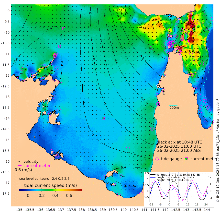 20cm/s 51T +3cm/s rms + 7cm/s -42T. ARA-GOC87 57m 23cm/s -22T +3cm/s rms + 2cm/s -2T. ARA-GOC87 60m 28cm/s 50T +2cm/s rms + 3cm/s 61T. ARA-GOC87 47m 70cm Daru 77cm Bobo Island 62cm Meer Island Barge 86cm Bramble Cay 89cm Unnamed Cay 79cm Pearce Cay 85cm Stephens Island 101cm Merrie England Shoals 80cm Mutacomal Reef 77cm Darnley Island Barge 72cm East Cay 70cm Yorke Island Barge 72cm Rennel Island 64cm Aureed Island 47cm Dungeness Reef -5cm Zagai Island -7cm Yam Island -83cm Dauan Island -77cm Saibai Island -38cm Phipi Reef -14cm Warrior Reef - West -81cm Mabuiag Island Barge 71cm Half Way Island 49cm Coconut Island 58cm Dugong Islet 20cm Poll Island 30cm Kirkcaldie Reef -15cm Suarji Island 16cm Sue Islet -126cm Hawkesbury Island -26cm Alert Patches -21cm Twin Island -122cm Badu Island -37cm St Pauls (Moa Island) -101cm Kubin (Moa Island) -59cm Ince Point -77cm Thursday Island -74cm Nardana Patches -94cm Turtle Head -97cm Round Island -127cm Goods Island -156cm Booby Island -136cm White Rocks Area -162cm Carpentaria -31cm Papou Point -144cm Bampfield Head -129cm Crab Island -151cm Red Wallis Island -114cm Packe Island 65cm Harrington Reef -133cm Herald Camp -9cm Sharp Point -74cm Red Island Point -43cm Possession Island -7cm Alpha Rock 14cm Frederick Point 66cm Wyborn Reef Light 52cm Tetley Island 40cm Triangle Reef 71cm Turtle Head Island 50cm Maclennan Cay 45cm Raine Island 75cm Mcsweeny Reef 78cm Collette Reef 58cm Shadwell Reef 92cm Hannibal Island 89cm Round Point -128cm Vrilya Point 78cm Cape Grenville 71cm Hicks Island 54cm Sir Charles Hardy Island 23cm Harvey Island 75cm Kay Reef 57cm Rocky Island 49cm Chapman Island 44cm Ham Reef 51cm Jubilee Reef 49cm Night Island 45cm Unnamed Reef No. 3 61cm Morris Island 46cm 1st 3 Mile Opening 51cm Creech Reef 60cm Fife Island 70cm Eden Reef 66cm Stanley Island 80cm Normanby River 70cm Yabooma Island 82cm Hutchison River 68cm Elcho Island 67cm North West Crocodile Island 45cm Cape Wessel 81cm Stevens Island 59cm Guluwuru Island 76cm Hopeful Bay 61cm Auster Point 55cm Two Island Bay 83cm Cadell Strait 101cm Mallison Island 58cm Melville Bay (Gove Harbour) 54cm Truant Island 38cm Cape Arnhem 53cm Cape Grey 57cm Hawk Island 63cm Milner Bay (Groote Eylandt) 58cm Cape Beatrice 56cm West Island 57cm Centre Island 88cm Mornington Island 87cm West Wellesley Islands 112cm Bountiful Island 139cm Albert River Mouth 170cm Sweers Island 137cm Karumba 47cm Nassau River Offshore 0cm Christmas Creek -44cm Archer River -78cm Boyd Point -79cm Weipa (Humbug Point) -73cm Pennefather River -122cm Cullen Point