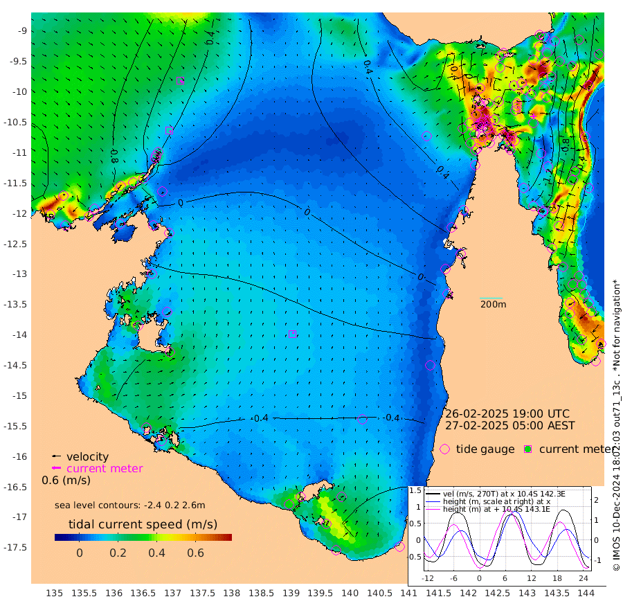 16cm/s 135T +3cm/s rms + 7cm/s -42T. ARA-GOC87 57m 13cm/s 31T +3cm/s rms + 2cm/s -2T. ARA-GOC87 60m 22cm/s 134T +2cm/s rms + 3cm/s 61T. ARA-GOC87 47m -156cm Daru -141cm Bobo Island -47cm Meer Island Barge -90cm Bramble Cay -131cm Unnamed Cay -127cm Pearce Cay -113cm Stephens Island -133cm Merrie England Shoals -160cm Mutacomal Reef -97cm Darnley Island Barge -60cm East Cay -120cm Yorke Island Barge -137cm Rennel Island -129cm Aureed Island -143cm Dungeness Reef -136cm Zagai Island -137cm Yam Island -108cm Dauan Island -96cm Saibai Island -138cm Phipi Reef -150cm Warrior Reef - West -70cm Mabuiag Island Barge -128cm Half Way Island -146cm Coconut Island -139cm Dugong Islet -142cm Poll Island -144cm Kirkcaldie Reef -141cm Suarji Island -133cm Sue Islet 8cm Hawkesbury Island -123cm Alert Patches -125cm Twin Island -8cm Badu Island -126cm St Pauls (Moa Island) -30cm Kubin (Moa Island) -89cm Ince Point -64cm Thursday Island -71cm Nardana Patches -41cm Turtle Head -22cm Round Island 18cm Goods Island 59cm Booby Island 40cm White Rocks Area 87cm Carpentaria -100cm Papou Point 48cm Bampfield Head 46cm Crab Island 42cm Red Wallis Island -19cm Packe Island -156cm Harrington Reef 12cm Herald Camp -46cm Sharp Point -33cm Red Island Point -80cm Possession Island -124cm Alpha Rock -140cm Frederick Point -155cm Wyborn Reef Light -155cm Tetley Island -57cm Triangle Reef -140cm Turtle Head Island -50cm Maclennan Cay -21cm Raine Island -119cm Mcsweeny Reef -107cm Collette Reef -58cm Shadwell Reef -114cm Hannibal Island -95cm Round Point 59cm Vrilya Point -79cm Cape Grenville -66cm Hicks Island -56cm Sir Charles Hardy Island -24cm Harvey Island -55cm Kay Reef -36cm Rocky Island -25cm Chapman Island -20cm Ham Reef -29cm Jubilee Reef -37cm Night Island -24cm Unnamed Reef No. 3 -36cm Morris Island -21cm 1st 3 Mile Opening -29cm Creech Reef -46cm Fife Island -24cm Eden Reef -35cm Stanley Island -41cm Normanby River 87cm Yabooma Island 84cm Hutchison River 86cm Elcho Island 80cm North West Crocodile Island 57cm Cape Wessel 58cm Stevens Island 25cm Guluwuru Island 60cm Hopeful Bay 58cm Auster Point 66cm Two Island Bay 59cm Cadell Strait -52cm Mallison Island 19cm Melville Bay (Gove Harbour) 25cm Truant Island 8cm Cape Arnhem -4cm Cape Grey -24cm Hawk Island -17cm Milner Bay (Groote Eylandt) -30cm Cape Beatrice -41cm West Island -40cm Centre Island -99cm Mornington Island -95cm West Wellesley Islands -99cm Bountiful Island -106cm Albert River Mouth -110cm Sweers Island -120cm Karumba -87cm Nassau River Offshore -63cm Christmas Creek -8cm Archer River 13cm Boyd Point 17cm Weipa (Humbug Point) 22cm Pennefather River 46cm Cullen Point