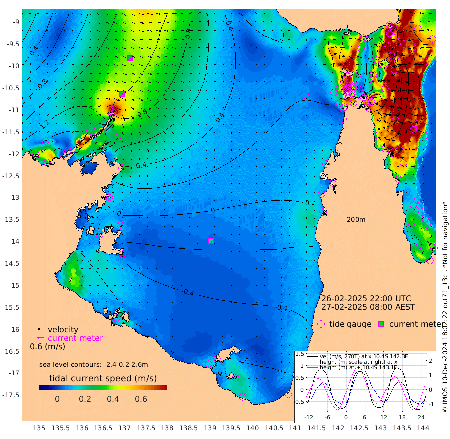 32cm/s 122T +3cm/s rms + 7cm/s -42T. ARA-GOC87 57m 19cm/s 163T +3cm/s rms + 2cm/s -2T. ARA-GOC87 60m 27cm/s 121T +2cm/s rms + 3cm/s 61T. ARA-GOC87 47m 64cm Daru 74cm Bobo Island 115cm Meer Island Barge 122cm Bramble Cay 106cm Unnamed Cay 100cm Pearce Cay 112cm Stephens Island 116cm Merrie England Shoals 79cm Mutacomal Reef 108cm Darnley Island Barge 121cm East Cay 85cm Yorke Island Barge 87cm Rennel Island 71cm Aureed Island 53cm Dungeness Reef -18cm Zagai Island -6cm Yam Island -62cm Dauan Island -67cm Saibai Island -63cm Phipi Reef -25cm Warrior Reef - West -36cm Mabuiag Island Barge 92cm Half Way Island 49cm Coconut Island 79cm Dugong Islet 25cm Poll Island 37cm Kirkcaldie Reef -19cm Suarji Island 17cm Sue Islet 58cm Hawkesbury Island 4cm Alert Patches 6cm Twin Island 25cm Badu Island -15cm St Pauls (Moa Island) 35cm Kubin (Moa Island) 3cm Ince Point 10cm Thursday Island 6cm Nardana Patches 27cm Turtle Head 25cm Round Island 60cm Goods Island 65cm Booby Island 67cm White Rocks Area 48cm Carpentaria -3cm Papou Point 63cm Bampfield Head 42cm Crab Island 57cm Red Wallis Island 45cm Packe Island 70cm Harrington Reef 41cm Herald Camp -25cm Sharp Point 19cm Red Island Point 4cm Possession Island 10cm Alpha Rock 30cm Frederick Point 69cm Wyborn Reef Light 55cm Tetley Island 87cm Triangle Reef 96cm Turtle Head Island 108cm Maclennan Cay 110cm Raine Island 97cm Mcsweeny Reef 98cm Collette Reef 102cm Shadwell Reef 114cm Hannibal Island 126cm Round Point 44cm Vrilya Point 119cm Cape Grenville 116cm Hicks Island 123cm Sir Charles Hardy Island 35cm Harvey Island 129cm Kay Reef 115cm Rocky Island 114cm Chapman Island 112cm Ham Reef 116cm Jubilee Reef 102cm Night Island 113cm Unnamed Reef No. 3 125cm Morris Island 120cm 1st 3 Mile Opening 119cm Creech Reef 115cm Fife Island 150cm Eden Reef 132cm Stanley Island 145cm Normanby River 159cm Yabooma Island 179cm Hutchison River 146cm Elcho Island 134cm North West Crocodile Island 112cm Cape Wessel 138cm Stevens Island 115cm Guluwuru Island 123cm Hopeful Bay 119cm Auster Point 127cm Two Island Bay 161cm Cadell Strait 127cm Mallison Island 93cm Melville Bay (Gove Harbour) 103cm Truant Island 54cm Cape Arnhem 17cm Cape Grey -12cm Hawk Island -54cm Milner Bay (Groote Eylandt) -56cm Cape Beatrice -104cm West Island -113cm Centre Island -118cm Mornington Island -106cm West Wellesley Islands -121cm Bountiful Island -153cm Albert River Mouth -175cm Sweers Island -161cm Karumba -69cm Nassau River Offshore -26cm Christmas Creek 15cm Archer River 28cm Boyd Point 34cm Weipa (Humbug Point) 28cm Pennefather River 31cm Cullen Point