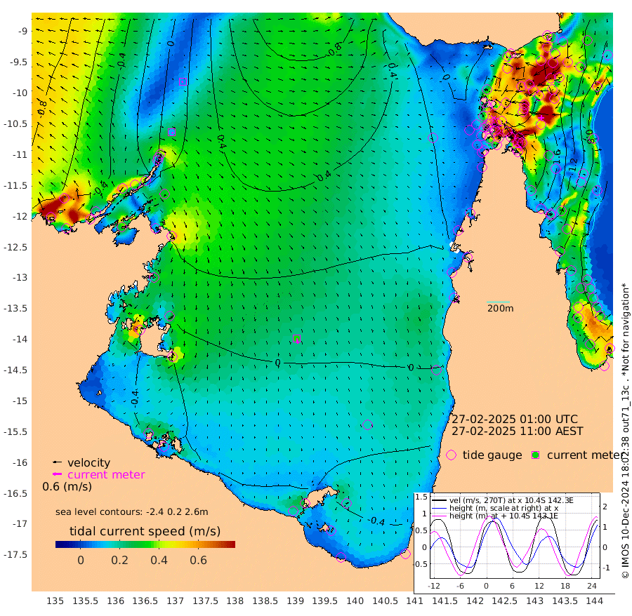 9cm/s 137T +3cm/s rms + 7cm/s -42T. ARA-GOC87 57m 35cm/s 168T +3cm/s rms + 2cm/s -2T. ARA-GOC87 60m 7cm/s -128T +2cm/s rms + 3cm/s 61T. ARA-GOC87 47m 198cm Daru 184cm Bobo Island 94cm Meer Island Barge 138cm Bramble Cay 181cm Unnamed Cay 179cm Pearce Cay 164cm Stephens Island 182cm Merrie England Shoals 208cm Mutacomal Reef 146cm Darnley Island Barge 105cm East Cay 167cm Yorke Island Barge 186cm Rennel Island 172cm Aureed Island 186cm Dungeness Reef 170cm Zagai Island 179cm Yam Island 143cm Dauan Island 129cm Saibai Island 140cm Phipi Reef 182cm Warrior Reef - West 123cm Mabuiag Island Barge 182cm Half Way Island 192cm Coconut Island 195cm Dugong Islet 189cm Poll Island 191cm Kirkcaldie Reef 178cm Suarji Island 178cm Sue Islet 106cm Hawkesbury Island 178cm Alert Patches 182cm Twin Island 104cm Badu Island 181cm St Pauls (Moa Island) 125cm Kubin (Moa Island) 155cm Ince Point 140cm Thursday Island 143cm Nardana Patches 125cm Turtle Head 99cm Round Island 92cm Goods Island 64cm Booby Island 79cm White Rocks Area 37cm Carpentaria 154cm Papou Point 70cm Bampfield Head 46cm Crab Island 77cm Red Wallis Island 119cm Packe Island 209cm Harrington Reef 83cm Herald Camp 49cm Sharp Point 100cm Red Island Point 131cm Possession Island 179cm Alpha Rock 195cm Frederick Point 209cm Wyborn Reef Light 209cm Tetley Island 102cm Triangle Reef 206cm Turtle Head Island 99cm Maclennan Cay 63cm Raine Island 169cm Mcsweeny Reef 150cm Collette Reef 99cm Shadwell Reef 161cm Hannibal Island 145cm Round Point 36cm Vrilya Point 126cm Cape Grenville 111cm Hicks Island 115cm Sir Charles Hardy Island 38cm Harvey Island 104cm Kay Reef 79cm Rocky Island 69cm Chapman Island 65cm Ham Reef 76cm Jubilee Reef 76cm Night Island 71cm Unnamed Reef No. 3 82cm Morris Island 70cm 1st 3 Mile Opening 76cm Creech Reef 88cm Fife Island 77cm Eden Reef 83cm Stanley Island 91cm Normanby River -27cm Yabooma Island -15cm Hutchison River -34cm Elcho Island -35cm North West Crocodile Island 8cm Cape Wessel -4cm Stevens Island 40cm Guluwuru Island -23cm Hopeful Bay -5cm Auster Point -5cm Two Island Bay 10cm Cadell Strait 131cm Mallison Island 26cm Melville Bay (Gove Harbour) 33cm Truant Island 20cm Cape Arnhem -6cm Cape Grey -14cm Hawk Island -56cm Milner Bay (Groote Eylandt) -46cm Cape Beatrice -67cm West Island -79cm Centre Island -57cm Mornington Island -50cm West Wellesley Islands -81cm Bountiful Island -120cm Albert River Mouth -149cm Sweers Island -114cm Karumba -14cm Nassau River Offshore 20cm Christmas Creek 22cm Archer River 37cm Boyd Point 29cm Weipa (Humbug Point) 28cm Pennefather River 32cm Cullen Point