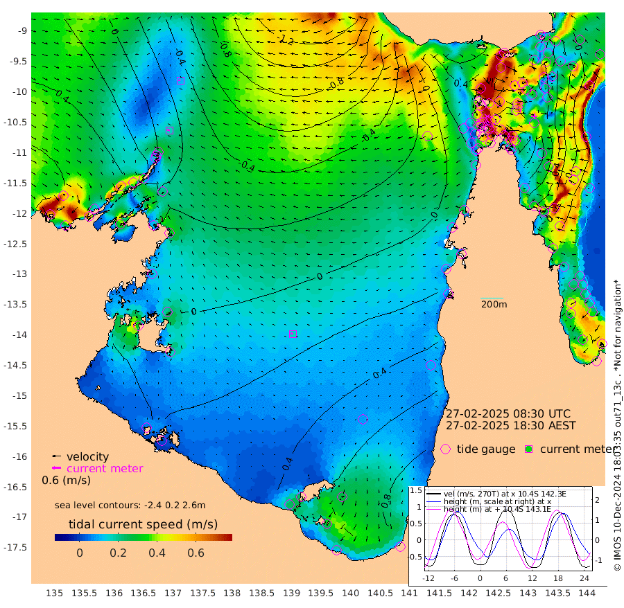 17cm/s -80T +3cm/s rms + 7cm/s -42T. ARA-GOC87 57m 17cm/s -76T +3cm/s rms + 2cm/s -2T. ARA-GOC87 60m 12cm/s -72T +2cm/s rms + 3cm/s 61T. ARA-GOC87 47m -96cm Daru -88cm Bobo Island 0cm Meer Island Barge -26cm Bramble Cay -66cm Unnamed Cay -68cm Pearce Cay -50cm Stephens Island -60cm Merrie England Shoals -98cm Mutacomal Reef -42cm Darnley Island Barge -1cm East Cay -71cm Yorke Island Barge -76cm Rennel Island -78cm Aureed Island -90cm Dungeness Reef -125cm Zagai Island -121cm Yam Island -106cm Dauan Island -116cm Saibai Island -83cm Phipi Reef -121cm Warrior Reef - West -109cm Mabuiag Island Barge -76cm Half Way Island -106cm Coconut Island -92cm Dugong Islet -115cm Poll Island -106cm Kirkcaldie Reef -127cm Suarji Island -118cm Sue Islet -46cm Hawkesbury Island -118cm Alert Patches -125cm Twin Island -63cm Badu Island -135cm St Pauls (Moa Island) -68cm Kubin (Moa Island) -106cm Ince Point -94cm Thursday Island -97cm Nardana Patches -64cm Turtle Head -48cm Round Island -31cm Goods Island -19cm Booby Island -30cm White Rocks Area -40cm Carpentaria -116cm Papou Point -30cm Bampfield Head -8cm Crab Island -29cm Red Wallis Island -48cm Packe Island -110cm Harrington Reef -19cm Herald Camp -43cm Sharp Point -54cm Red Island Point -84cm Possession Island -126cm Alpha Rock -121cm Frederick Point -114cm Wyborn Reef Light -122cm Tetley Island -21cm Triangle Reef -105cm Turtle Head Island -6cm Maclennan Cay 22cm Raine Island -64cm Mcsweeny Reef -47cm Collette Reef -7cm Shadwell Reef -46cm Hannibal Island -27cm Round Point -10cm Vrilya Point -17cm Cape Grenville -7cm Hicks Island -9cm Sir Charles Hardy Island -4cm Harvey Island 1cm Kay Reef 15cm Rocky Island 21cm Chapman Island 19cm Ham Reef 13cm Jubilee Reef 12cm Night Island 18cm Unnamed Reef No. 3 16cm Morris Island 20cm 1st 3 Mile Opening 17cm Creech Reef 11cm Fife Island 34cm Eden Reef 21cm Stanley Island 20cm Normanby River 37cm Yabooma Island 33cm Hutchison River 38cm Elcho Island 39cm North West Crocodile Island -29cm Cape Wessel 2cm Stevens Island -41cm Guluwuru Island 24cm Hopeful Bay -7cm Auster Point -4cm Two Island Bay 3cm Cadell Strait -105cm Mallison Island -28cm Melville Bay (Gove Harbour) -39cm Truant Island -27cm Cape Arnhem -11cm Cape Grey 7cm Hawk Island 17cm Milner Bay (Groote Eylandt) 27cm Cape Beatrice 31cm West Island 40cm Centre Island 90cm Mornington Island 83cm West Wellesley Islands 115cm Bountiful Island 154cm Albert River Mouth 155cm Sweers Island 159cm Karumba 86cm Nassau River Offshore 64cm Christmas Creek 44cm Archer River 13cm Boyd Point 35cm Weipa (Humbug Point) 9cm Pennefather River 1cm Cullen Point