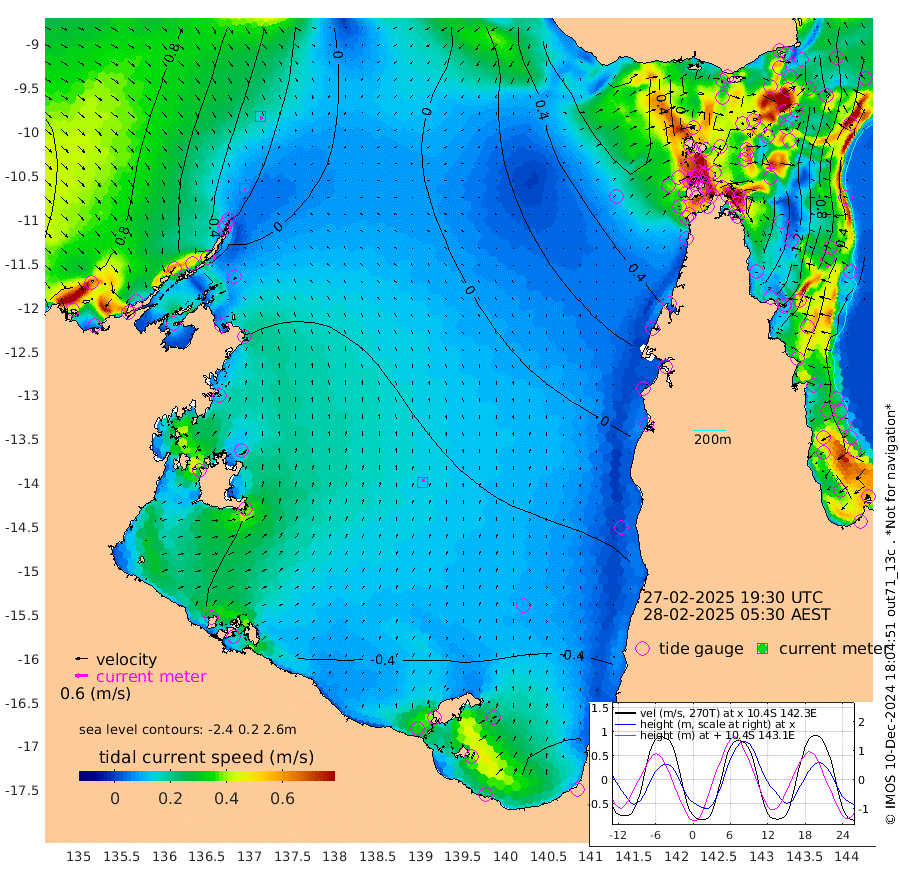9cm/s 167T +3cm/s rms + 7cm/s -42T. ARA-GOC87 57m 14cm/s 23T +3cm/s rms + 2cm/s -2T. ARA-GOC87 60m 16cm/s 153T +2cm/s rms + 3cm/s 61T. ARA-GOC87 47m -164cm Daru -149cm Bobo Island -53cm Meer Island Barge -94cm Bramble Cay -135cm Unnamed Cay -134cm Pearce Cay -120cm Stephens Island -136cm Merrie England Shoals -163cm Mutacomal Reef -104cm Darnley Island Barge -63cm East Cay -127cm Yorke Island Barge -142cm Rennel Island -135cm Aureed Island -149cm Dungeness Reef -144cm Zagai Island -143cm Yam Island -116cm Dauan Island -101cm Saibai Island -143cm Phipi Reef -159cm Warrior Reef - West -70cm Mabuiag Island Barge -135cm Half Way Island -152cm Coconut Island -145cm Dugong Islet -148cm Poll Island -150cm Kirkcaldie Reef -141cm Suarji Island -138cm Sue Islet 15cm Hawkesbury Island -123cm Alert Patches -127cm Twin Island -6cm Badu Island -130cm St Pauls (Moa Island) -30cm Kubin (Moa Island) -89cm Ince Point -63cm Thursday Island -71cm Nardana Patches -39cm Turtle Head -16cm Round Island 23cm Goods Island 66cm Booby Island 50cm White Rocks Area 94cm Carpentaria -104cm Papou Point 59cm Bampfield Head 49cm Crab Island 49cm Red Wallis Island -16cm Packe Island -161cm Harrington Reef 20cm Herald Camp -47cm Sharp Point -29cm Red Island Point -78cm Possession Island -125cm Alpha Rock -143cm Frederick Point -159cm Wyborn Reef Light -160cm Tetley Island -60cm Triangle Reef -148cm Turtle Head Island -53cm Maclennan Cay -24cm Raine Island -124cm Mcsweeny Reef -111cm Collette Reef -61cm Shadwell Reef -119cm Hannibal Island -98cm Round Point 62cm Vrilya Point -81cm Cape Grenville -70cm Hicks Island -59cm Sir Charles Hardy Island -26cm Harvey Island -55cm Kay Reef -37cm Rocky Island -25cm Chapman Island -21cm Ham Reef -32cm Jubilee Reef -41cm Night Island -25cm Unnamed Reef No. 3 -38cm Morris Island -25cm 1st 3 Mile Opening -32cm Creech Reef -50cm Fife Island -28cm Eden Reef -37cm Stanley Island -43cm Normanby River 73cm Yabooma Island 64cm Hutchison River 71cm Elcho Island 67cm North West Crocodile Island 40cm Cape Wessel 41cm Stevens Island -2cm Guluwuru Island 49cm Hopeful Bay 43cm Auster Point 46cm Two Island Bay 29cm Cadell Strait -91cm Mallison Island -2cm Melville Bay (Gove Harbour) 2cm Truant Island -8cm Cape Arnhem -11cm Cape Grey -26cm Hawk Island -12cm Milner Bay (Groote Eylandt) -24cm Cape Beatrice -26cm West Island -24cm Centre Island -87cm Mornington Island -81cm West Wellesley Islands -80cm Bountiful Island -92cm Albert River Mouth -90cm Sweers Island -103cm Karumba -78cm Nassau River Offshore -57cm Christmas Creek -3cm Archer River 16cm Boyd Point 22cm Weipa (Humbug Point) 24cm Pennefather River 51cm Cullen Point