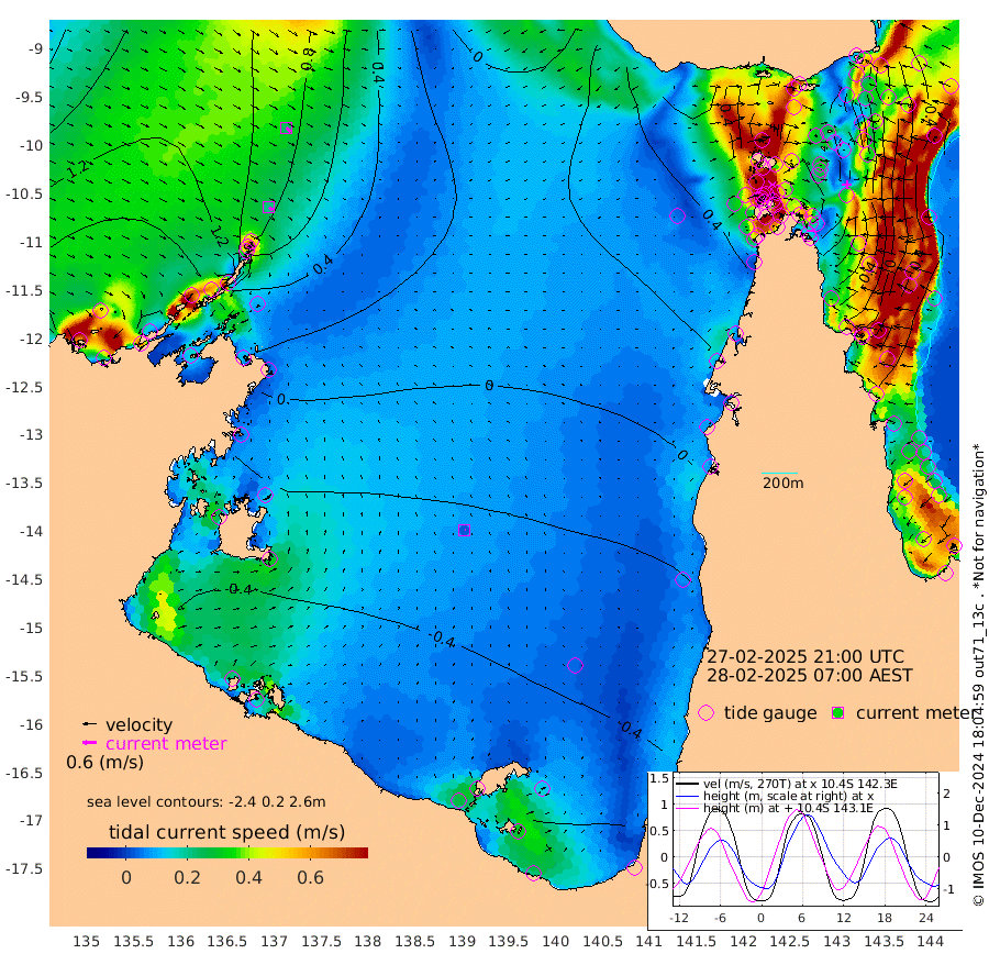 21cm/s 134T +3cm/s rms + 7cm/s -42T. ARA-GOC87 57m 3cm/s 90T +3cm/s rms + 2cm/s -2T. ARA-GOC87 60m 24cm/s 132T +2cm/s rms + 3cm/s 61T. ARA-GOC87 47m -74cm Daru -56cm Bobo Island 37cm Meer Island Barge 13cm Bramble Cay -28cm Unnamed Cay -27cm Pearce Cay -11cm Stephens Island -22cm Merrie England Shoals -65cm Mutacomal Reef -5cm Darnley Island Barge 36cm East Cay -36cm Yorke Island Barge -43cm Rennel Island -49cm Aureed Island -70cm Dungeness Reef -116cm Zagai Island -107cm Yam Island -123cm Dauan Island -119cm Saibai Island -136cm Phipi Reef -128cm Warrior Reef - West -78cm Mabuiag Island Barge -37cm Half Way Island -77cm Coconut Island -53cm Dugong Islet -90cm Poll Island -83cm Kirkcaldie Reef -112cm Suarji Island -91cm Sue Islet 40cm Hawkesbury Island -89cm Alert Patches -90cm Twin Island 4cm Badu Island -106cm St Pauls (Moa Island) -5cm Kubin (Moa Island) -67cm Ince Point -45cm Thursday Island -53cm Nardana Patches -15cm Turtle Head 0cm Round Island 47cm Goods Island 76cm Booby Island 69cm White Rocks Area 75cm Carpentaria -79cm Papou Point 69cm Bampfield Head 52cm Crab Island 60cm Red Wallis Island 11cm Packe Island -69cm Harrington Reef 34cm Herald Camp -51cm Sharp Point -11cm Red Island Point -55cm Possession Island -88cm Alpha Rock -84cm Frederick Point -70cm Wyborn Reef Light -80cm Tetley Island 13cm Triangle Reef -45cm Turtle Head Island 32cm Maclennan Cay 54cm Raine Island -26cm Mcsweeny Reef -16cm Collette Reef 22cm Shadwell Reef -11cm Hannibal Island 14cm Round Point 58cm Vrilya Point 20cm Cape Grenville 27cm Hicks Island 37cm Sir Charles Hardy Island 5cm Harvey Island 44cm Kay Reef 49cm Rocky Island 57cm Chapman Island 57cm Ham Reef 52cm Jubilee Reef 38cm Night Island 55cm Unnamed Reef No. 3 54cm Morris Island 59cm 1st 3 Mile Opening 54cm Creech Reef 41cm Fife Island 78cm Eden Reef 59cm Stanley Island 65cm Normanby River 170cm Yabooma Island 179cm Hutchison River 160cm Elcho Island 151cm North West Crocodile Island 102cm Cape Wessel 128cm Stevens Island 70cm Guluwuru Island 125cm Hopeful Bay 113cm Auster Point 119cm Two Island Bay 135cm Cadell Strait -10cm Mallison Island 60cm Melville Bay (Gove Harbour) 67cm Truant Island 29cm Cape Arnhem 7cm Cape Grey -19cm Hawk Island -35cm Milner Bay (Groote Eylandt) -43cm Cape Beatrice -75cm West Island -78cm Centre Island -112cm Mornington Island -101cm West Wellesley Islands -100cm Bountiful Island -121cm Albert River Mouth -132cm Sweers Island -132cm Karumba -78cm Nassau River Offshore -45cm Christmas Creek 10cm Archer River 24cm Boyd Point 36cm Weipa (Humbug Point) 26cm Pennefather River 45cm Cullen Point